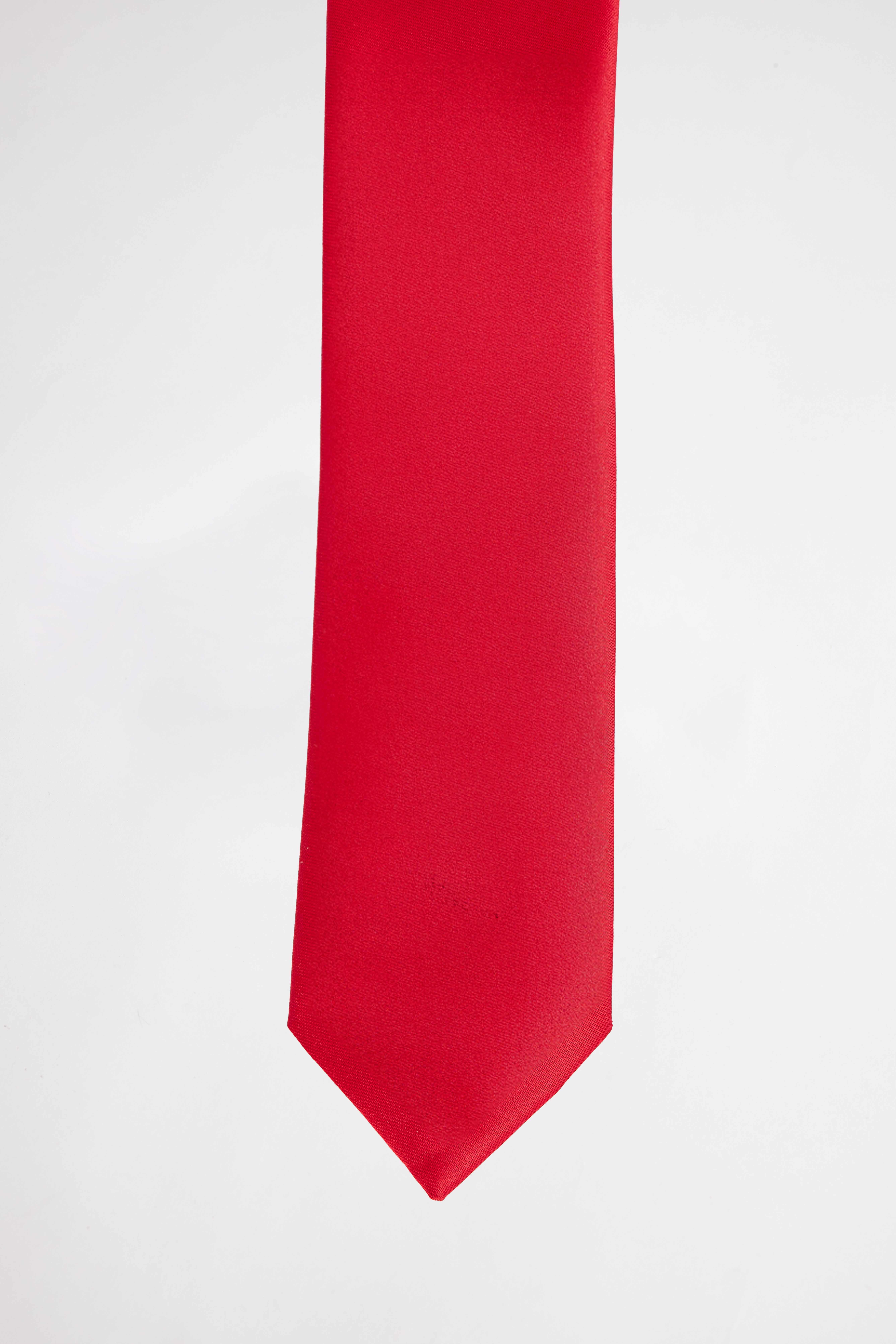 3'lü Paket Düz İnce Kırmızı Erkek Kravat