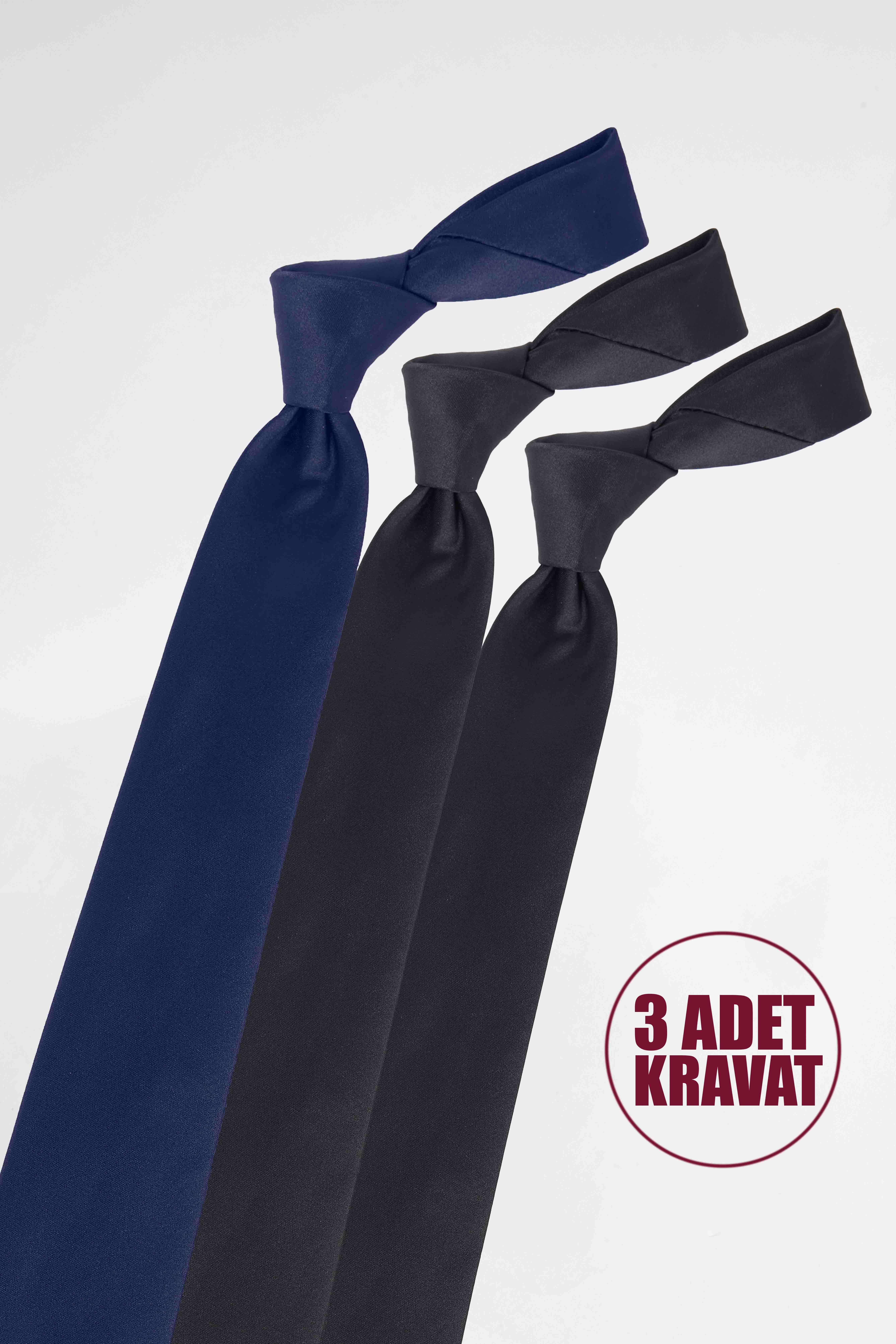 3'lü Paket Düz İnce Lacivert-Siyah Erkek Kravat (KR250004-KR805)