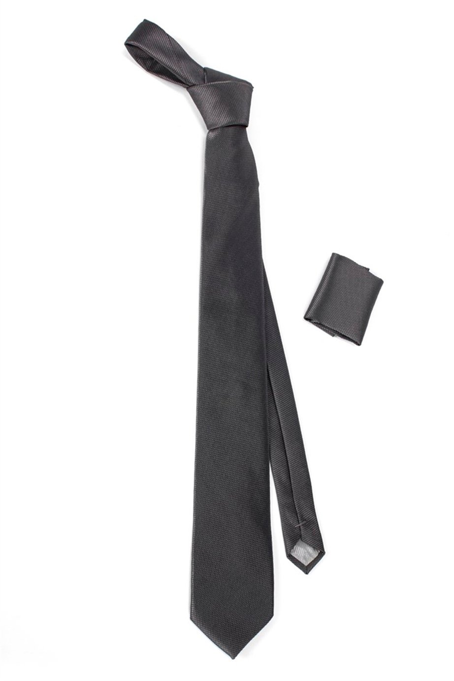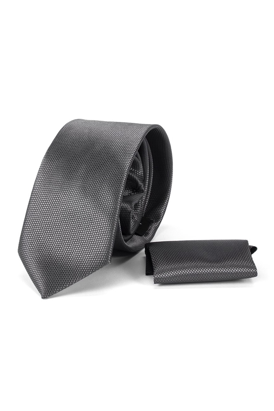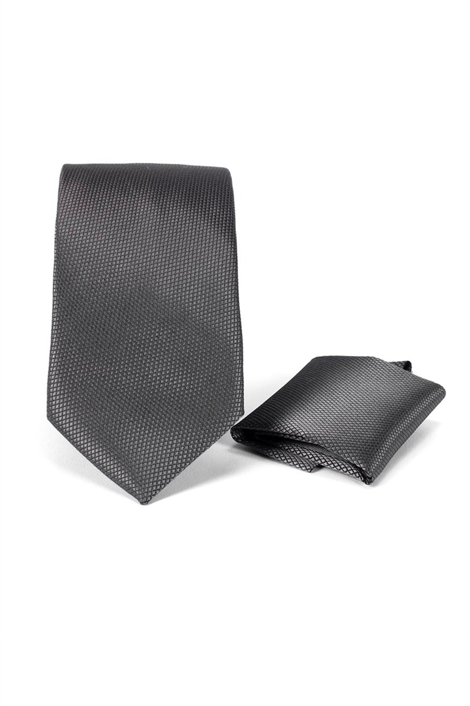 Desenli Klasik Cep Mendilli Gri Erkek Kravat (KR17002-11)