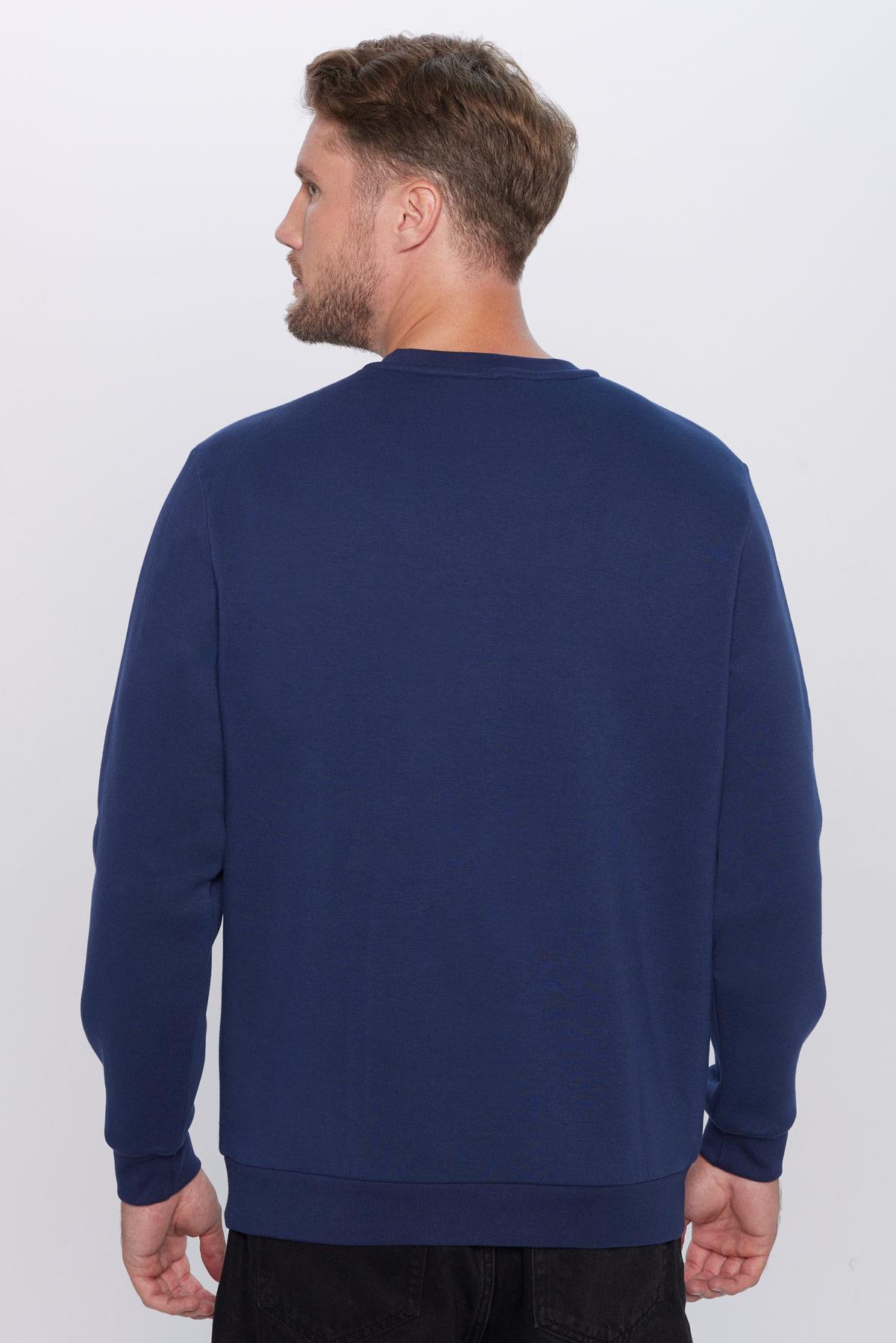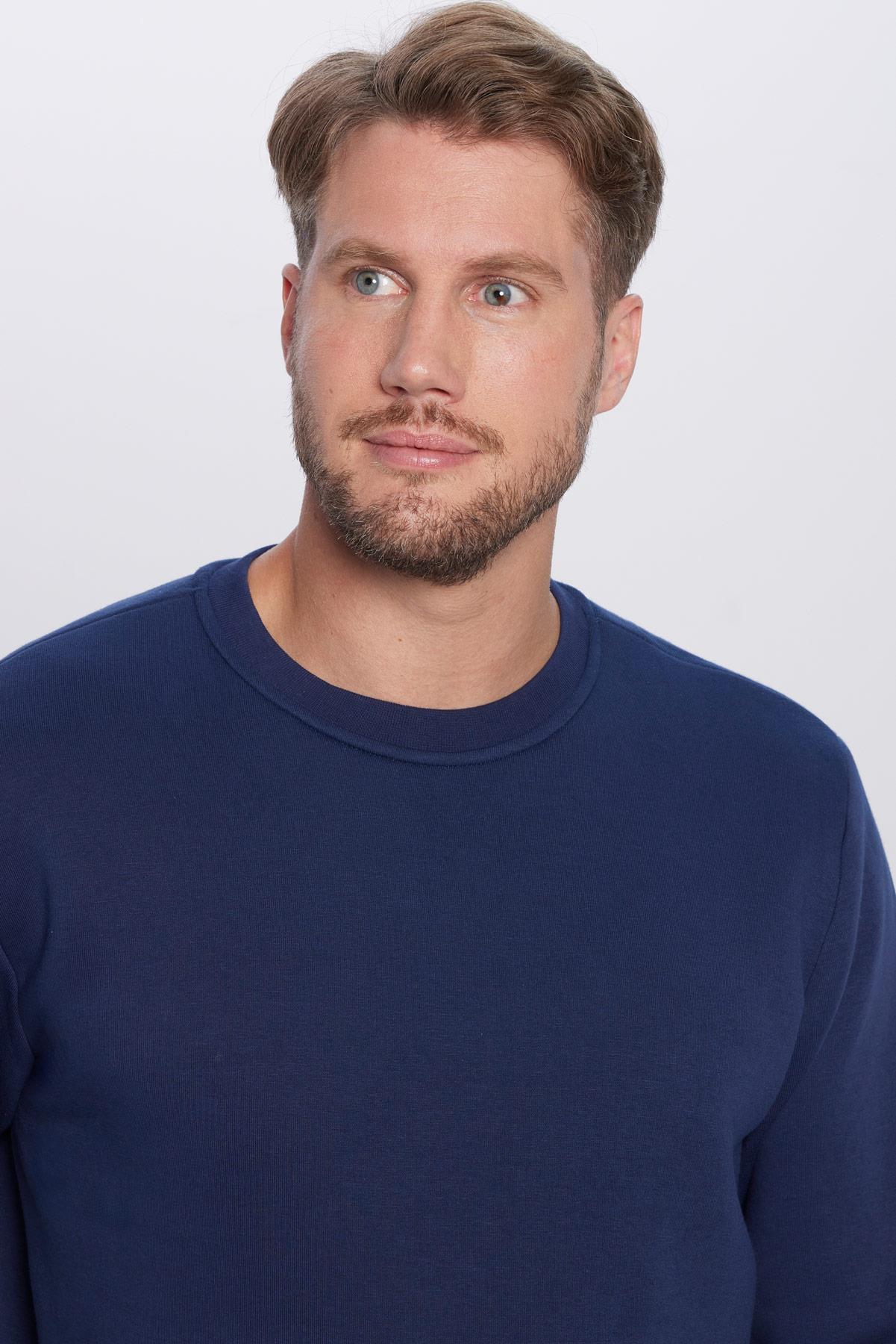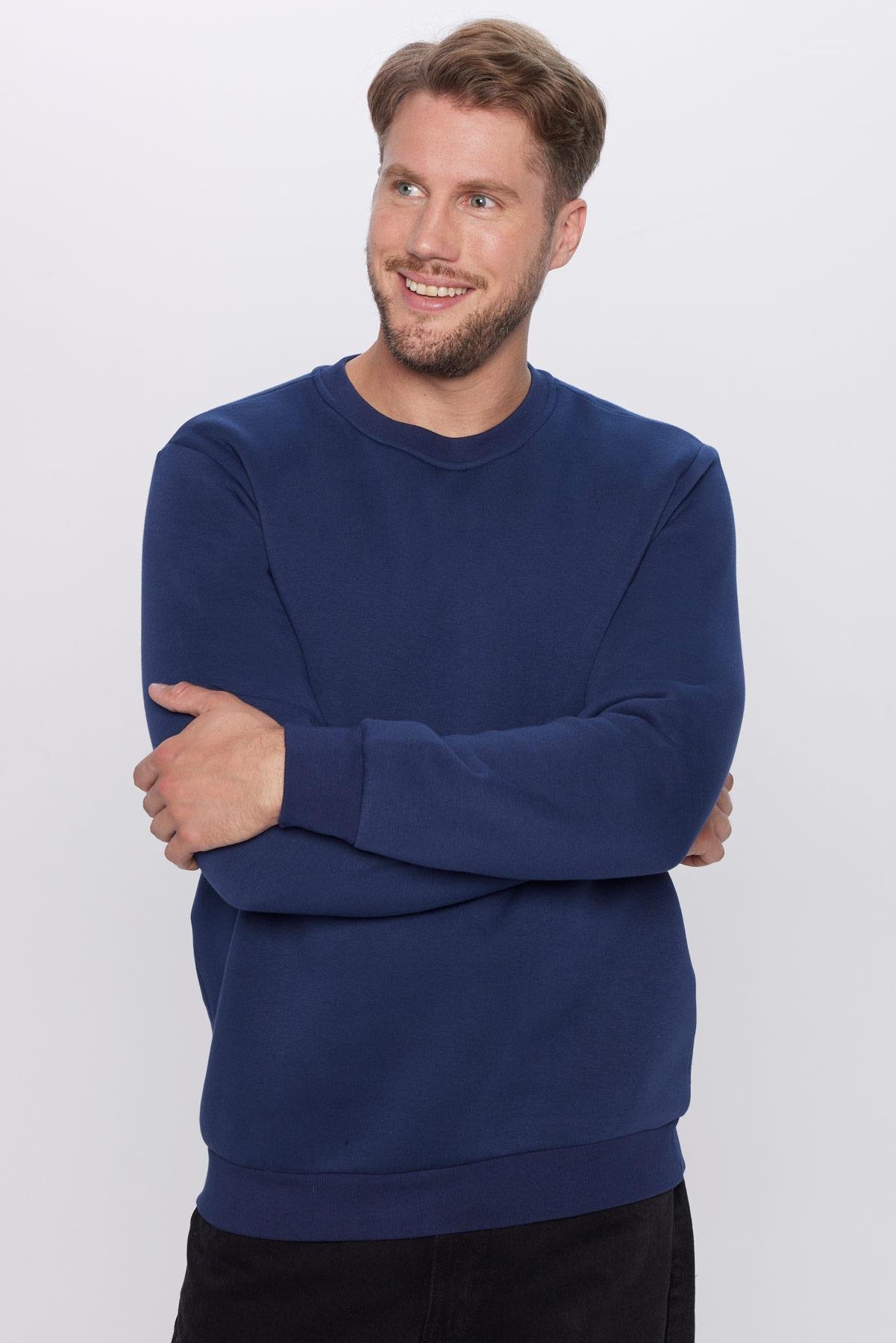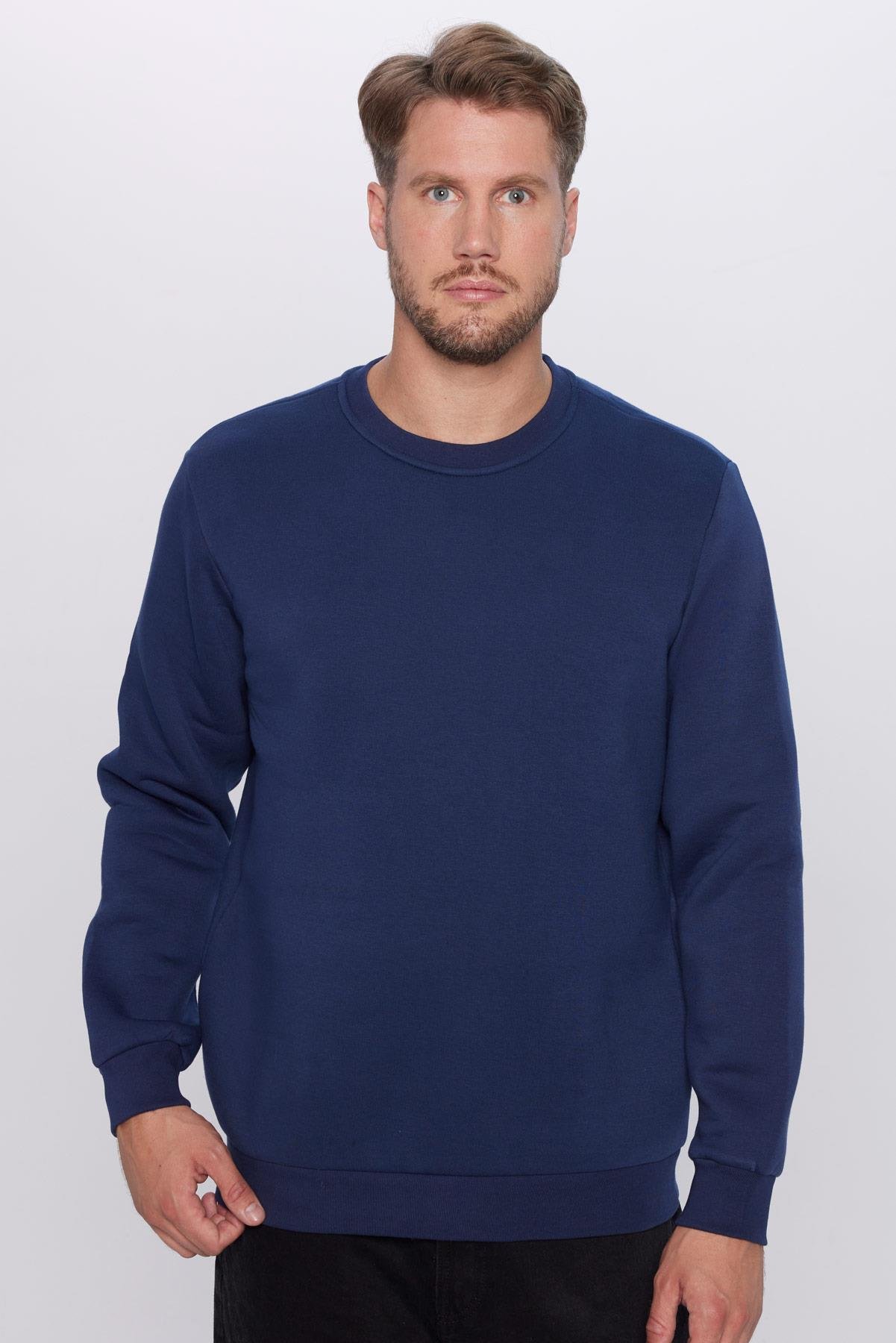 Unisex Relax Fit Rahat Kesim Pamuklu Yumuşak Dokulu Polarlı Basic Lacivert Bisiklet Yaka Sweatshirt (SW220005-47)