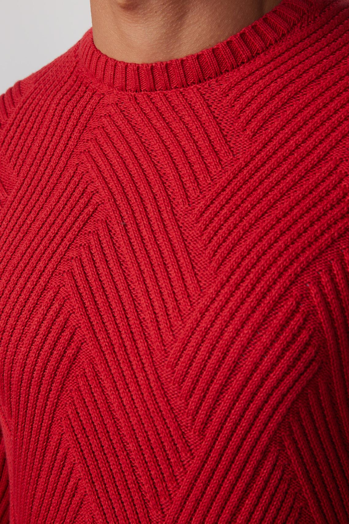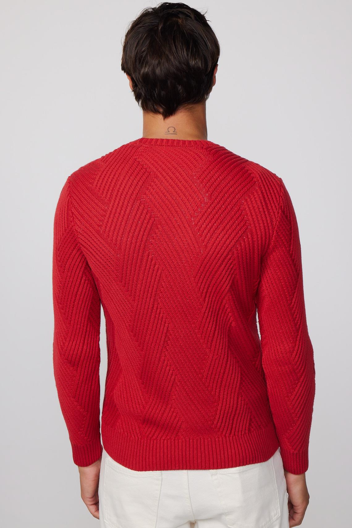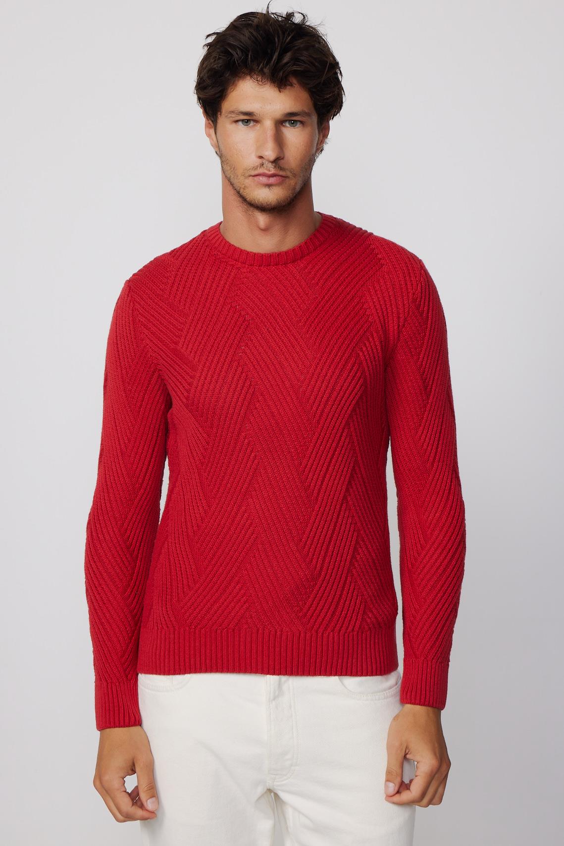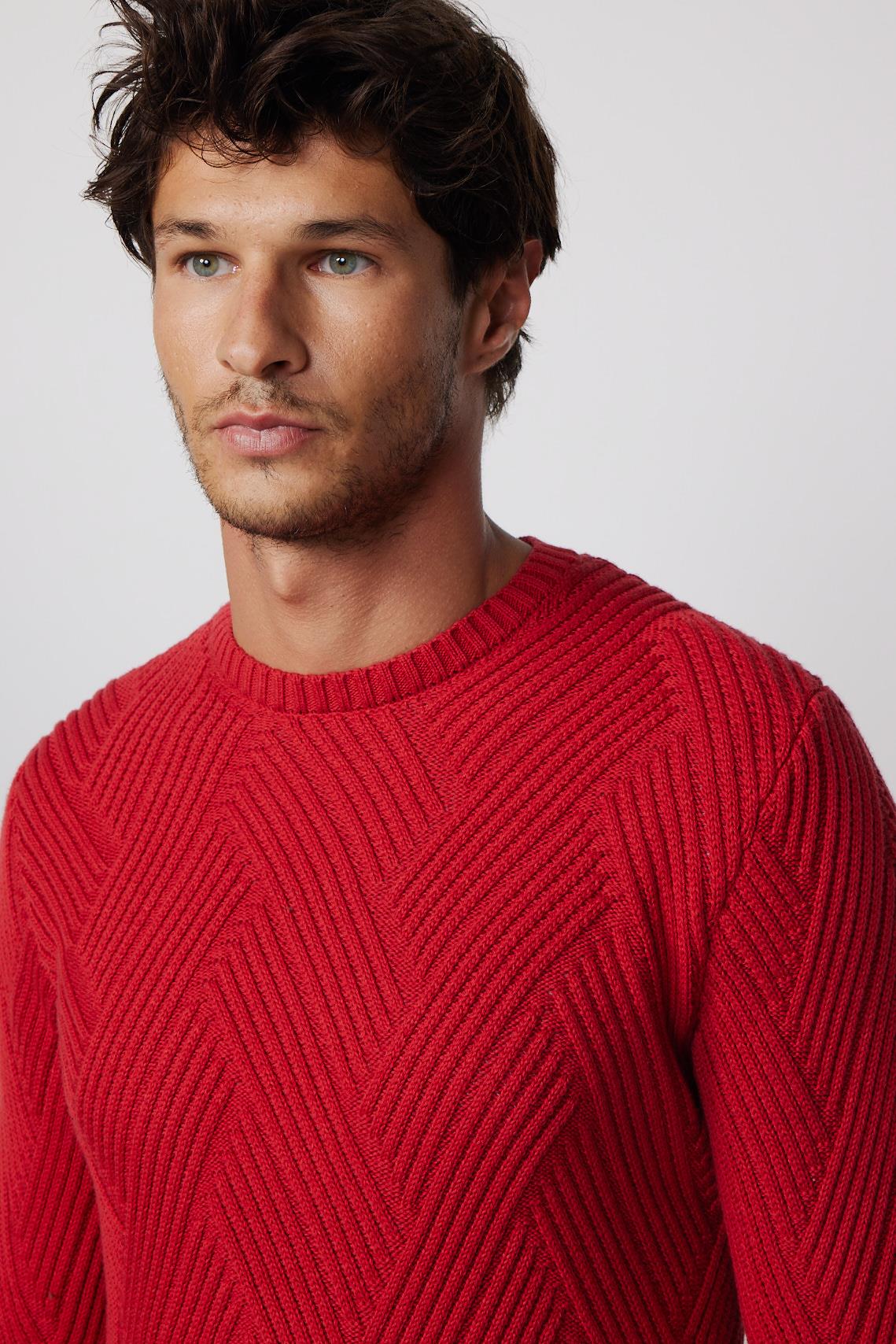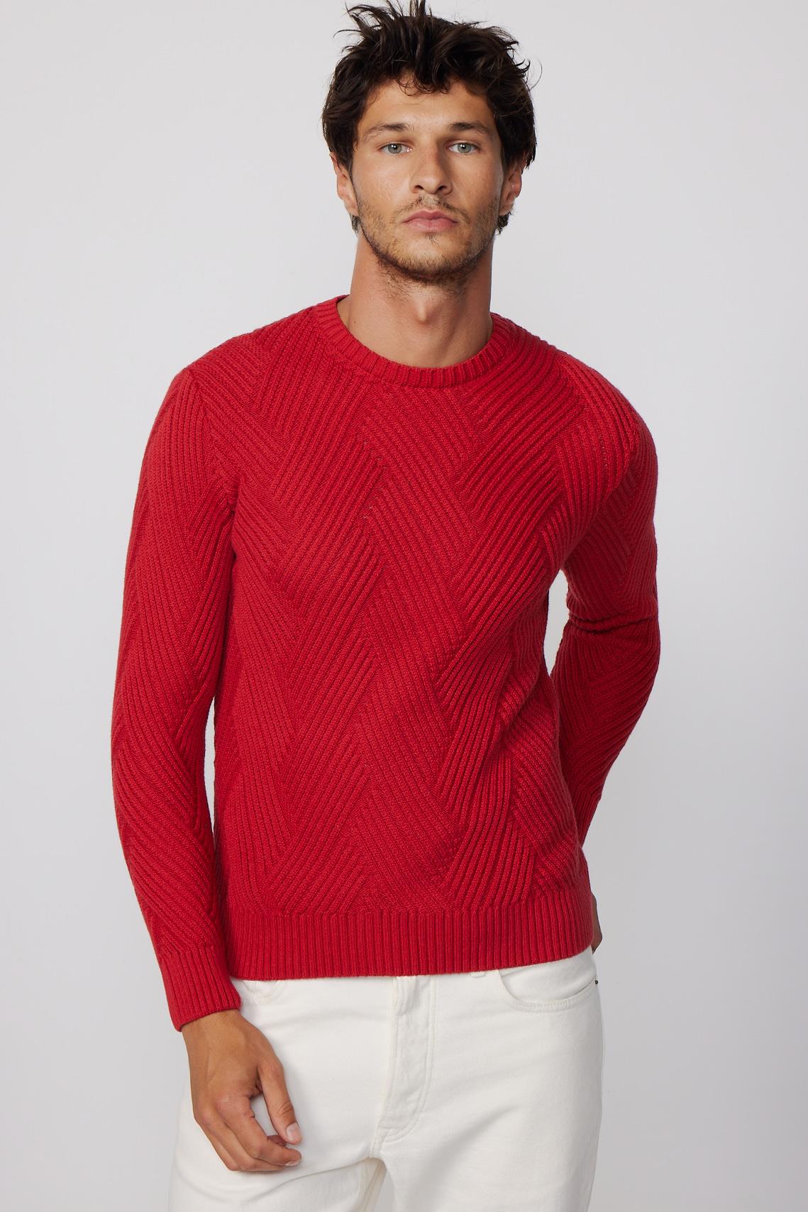 Bisiklet Yaka Desenli Yumuşak Dokulu Erkek Kırmızı Rengi Kazak