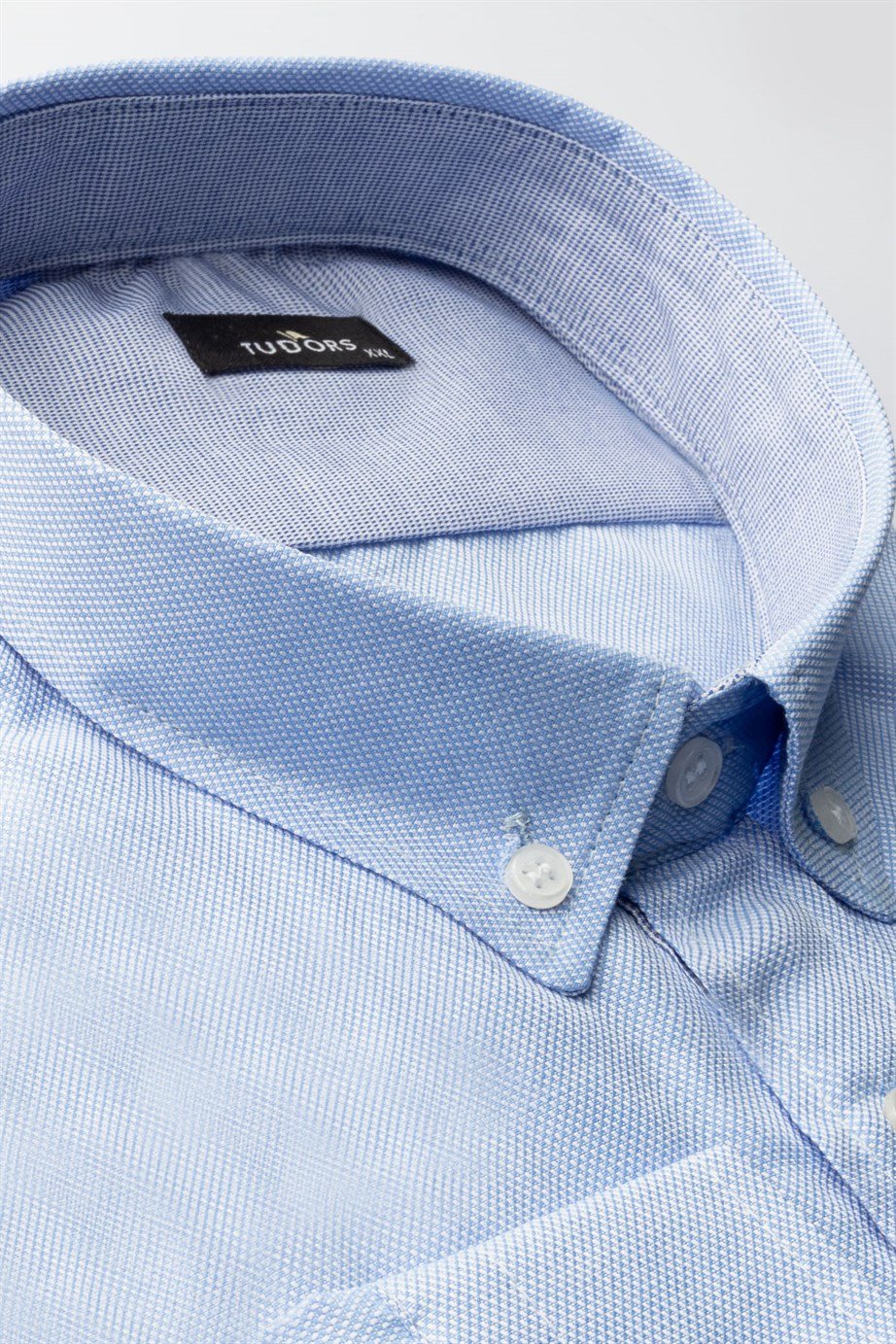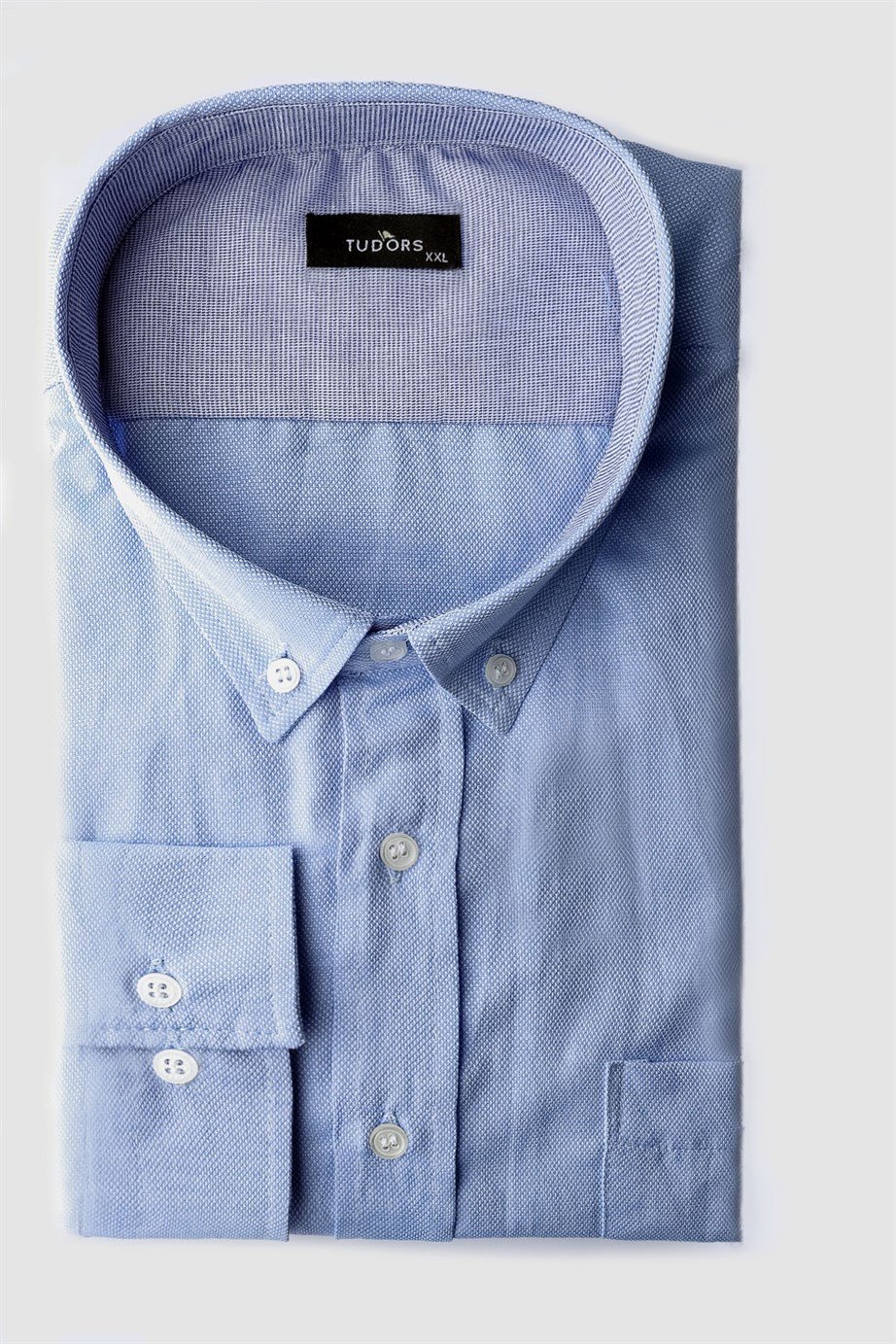 Büyük Beden Uzun Kollu Düğmeli Yaka Armürlü Oxford Mavi Erkek Gömlek (BT190014-501)