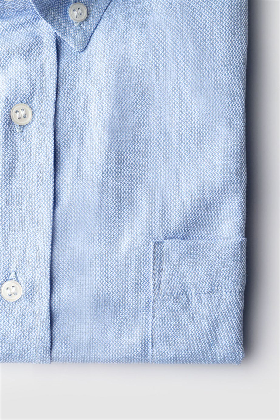 Büyük Beden Uzun Kollu Düğmeli Yaka Armürlü Oxford Mavi Erkek Gömlek