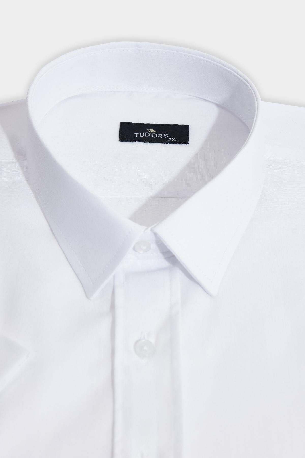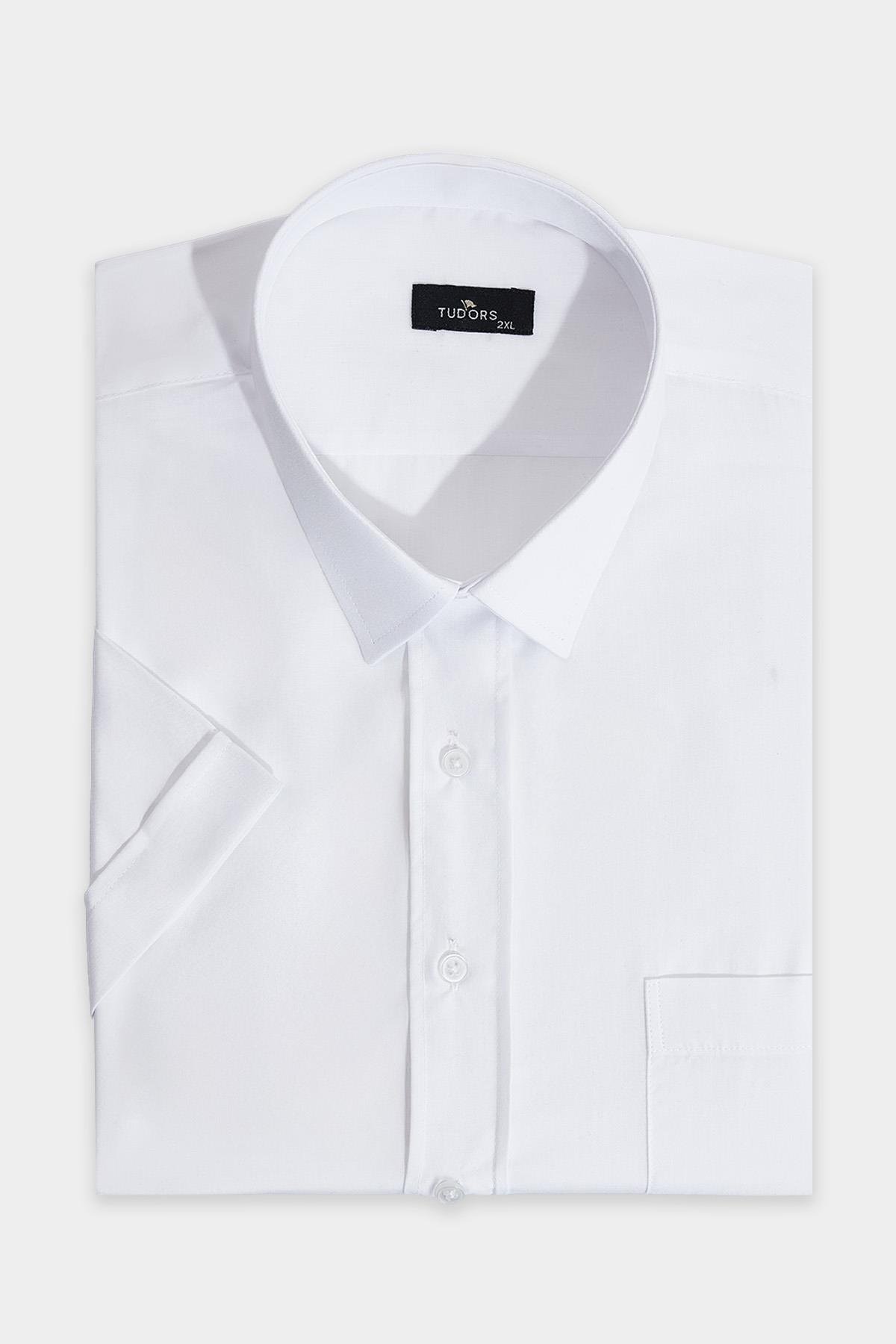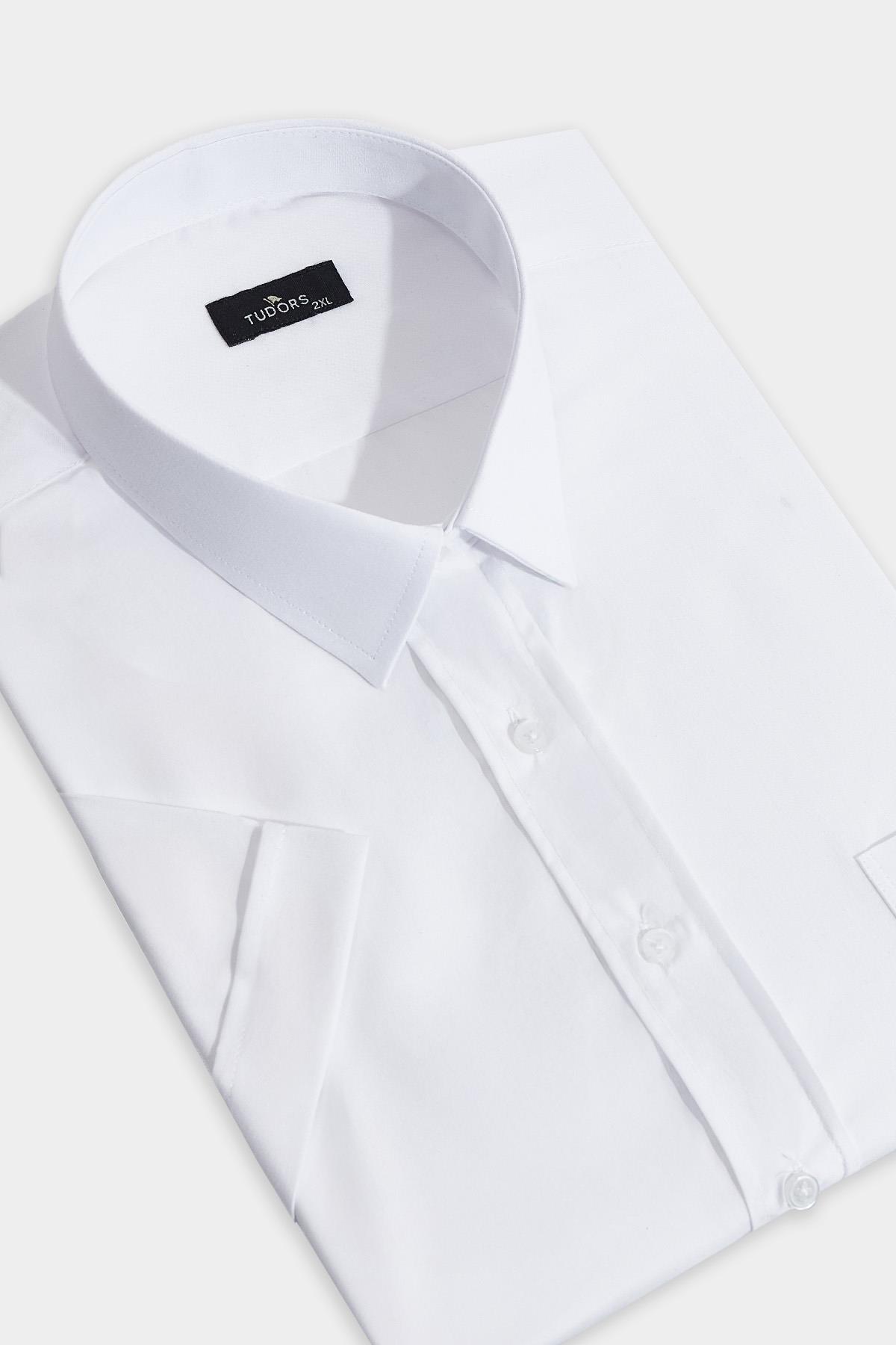 Büyük Beden Kısa Kollu Düz Kravatlık Kolay Ütülenebilir Erkek Beyaz Gömlek