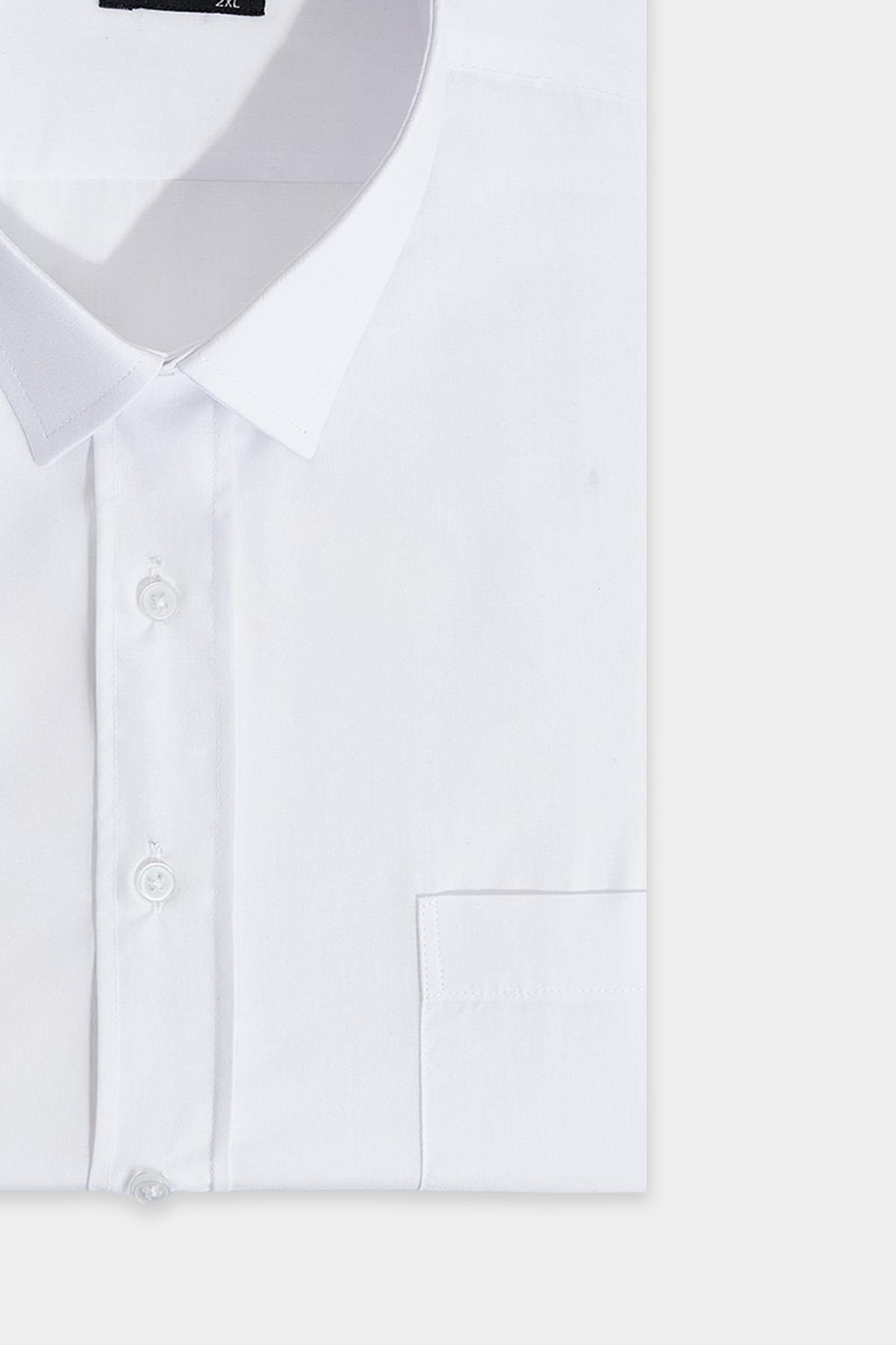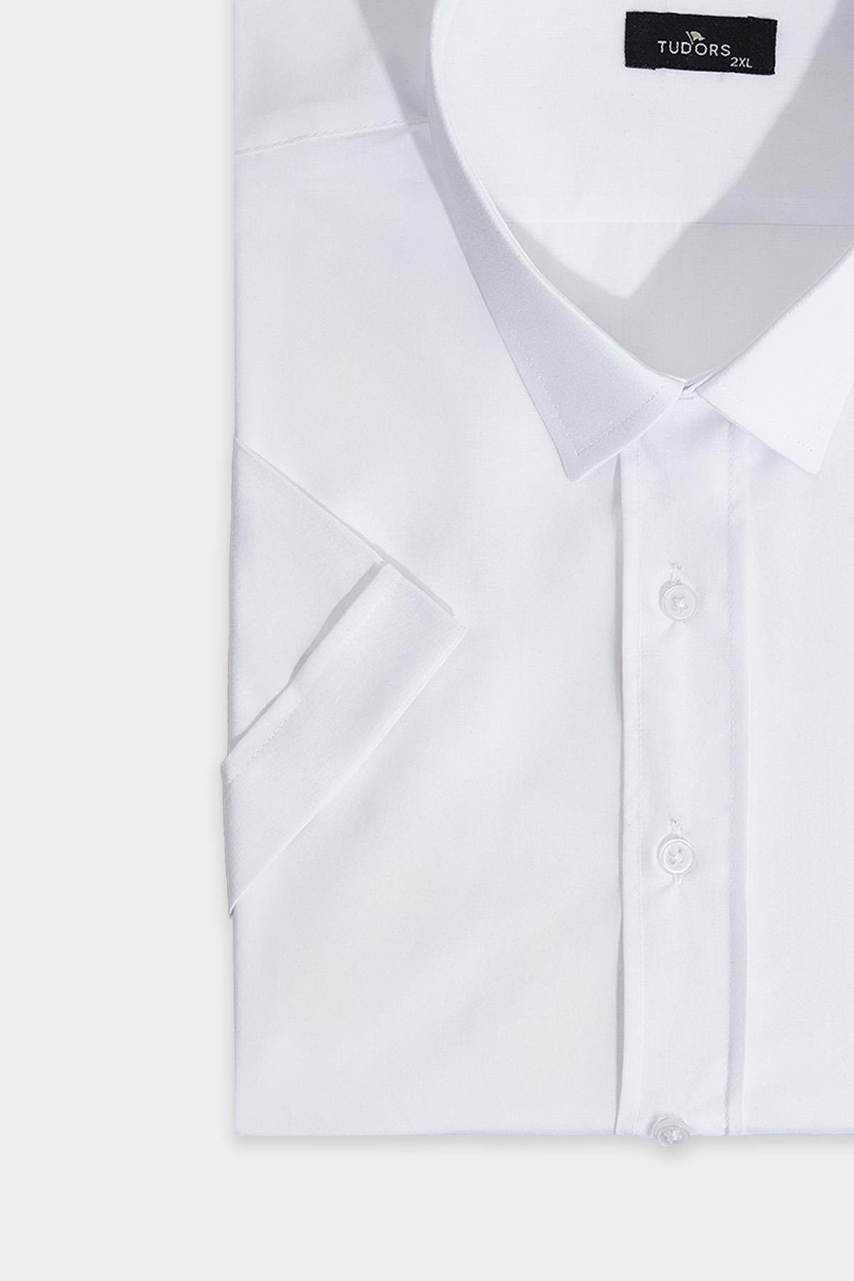 Büyük Beden Kısa Kollu Düz Kravatlık Kolay Ütülenebilir Erkek Beyaz Gömlek (BT230009-01)