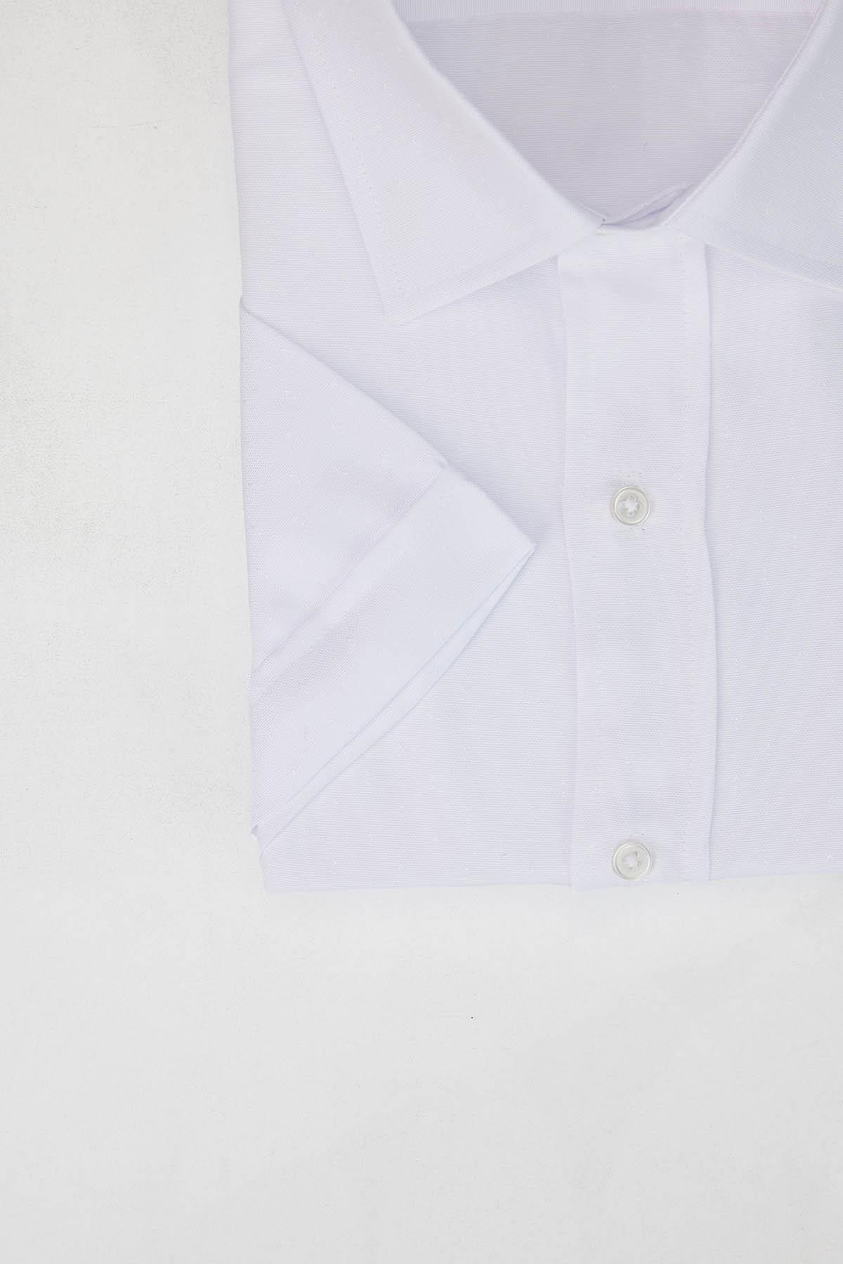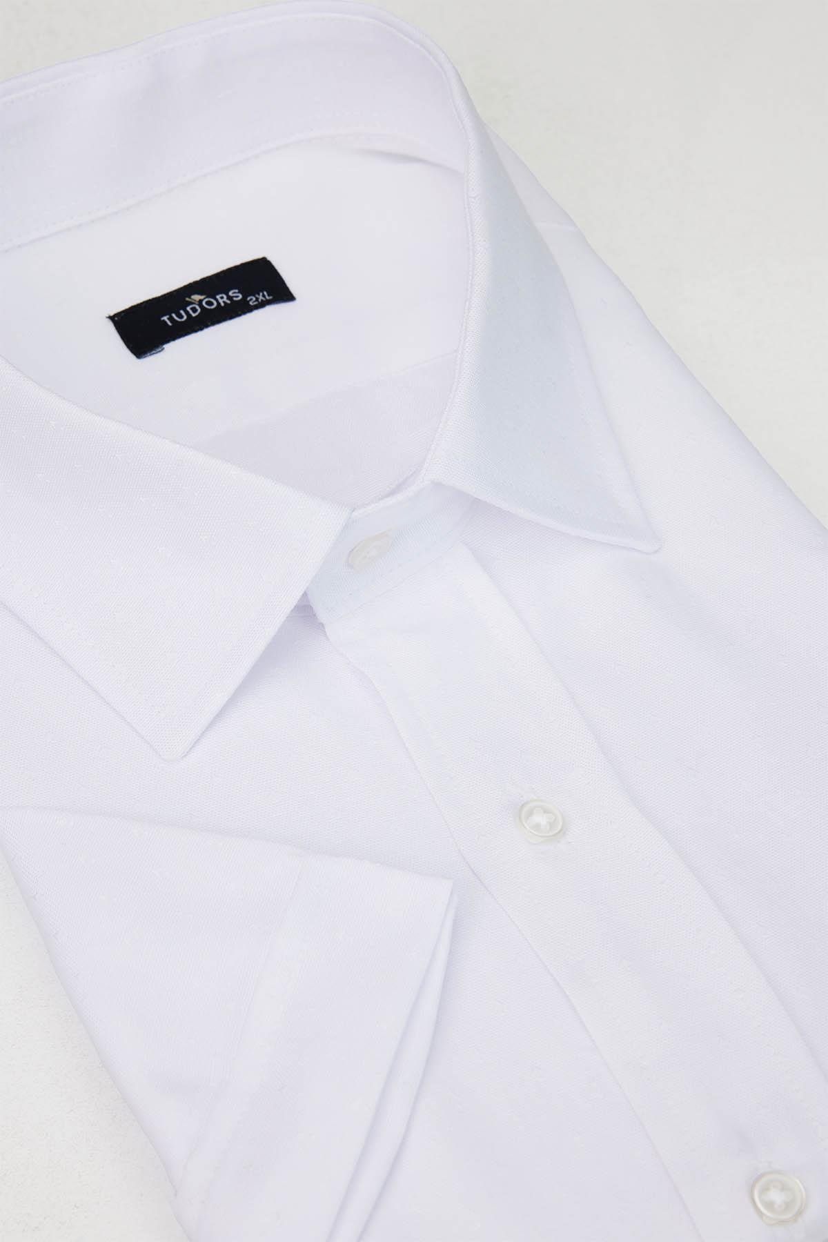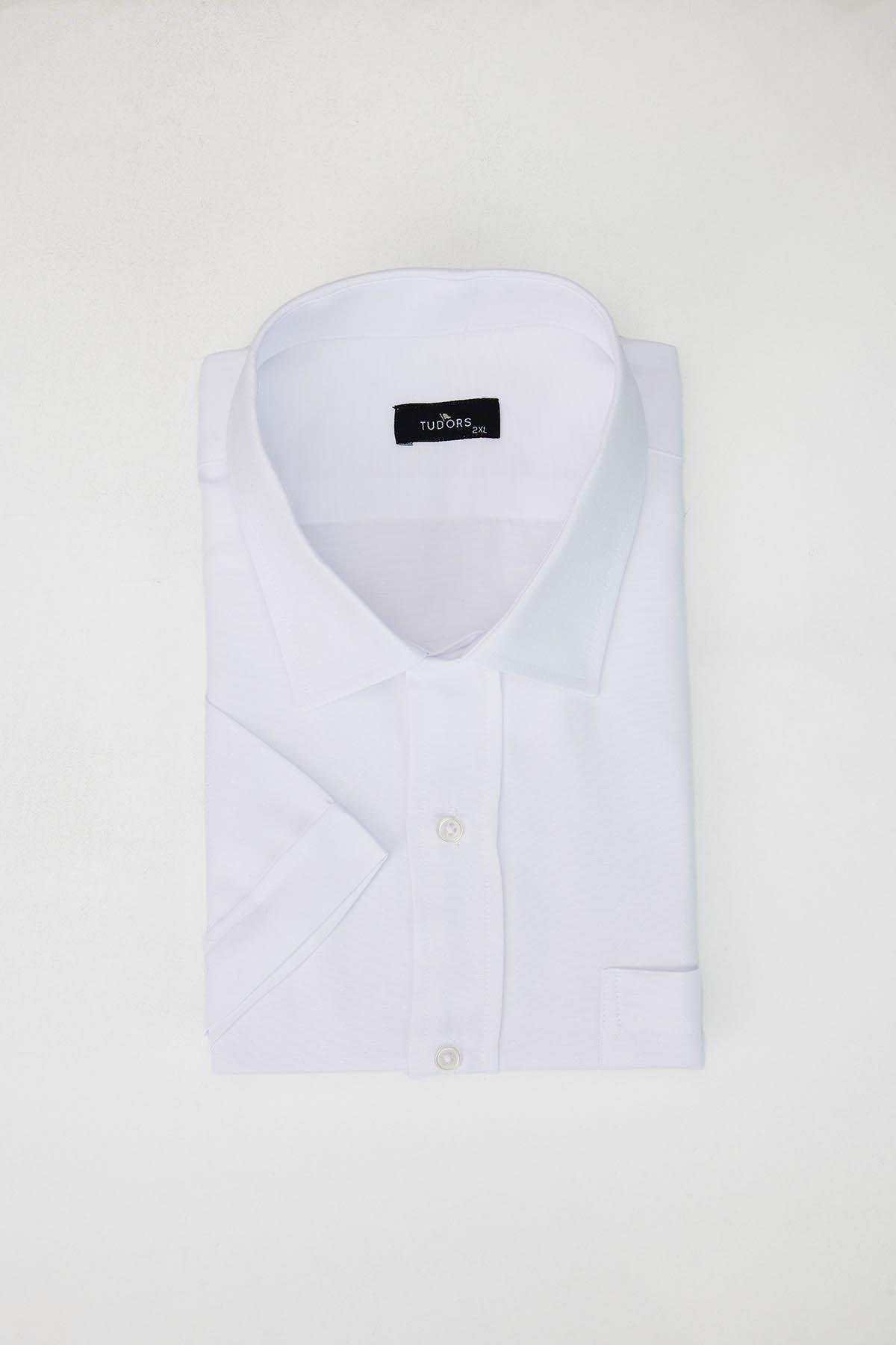 Erkek Big Size Büyük Beden Kısa Kollu Pamuklu Tek Cepli Armürlü Beyaz Gömlek (BT240007-800)
