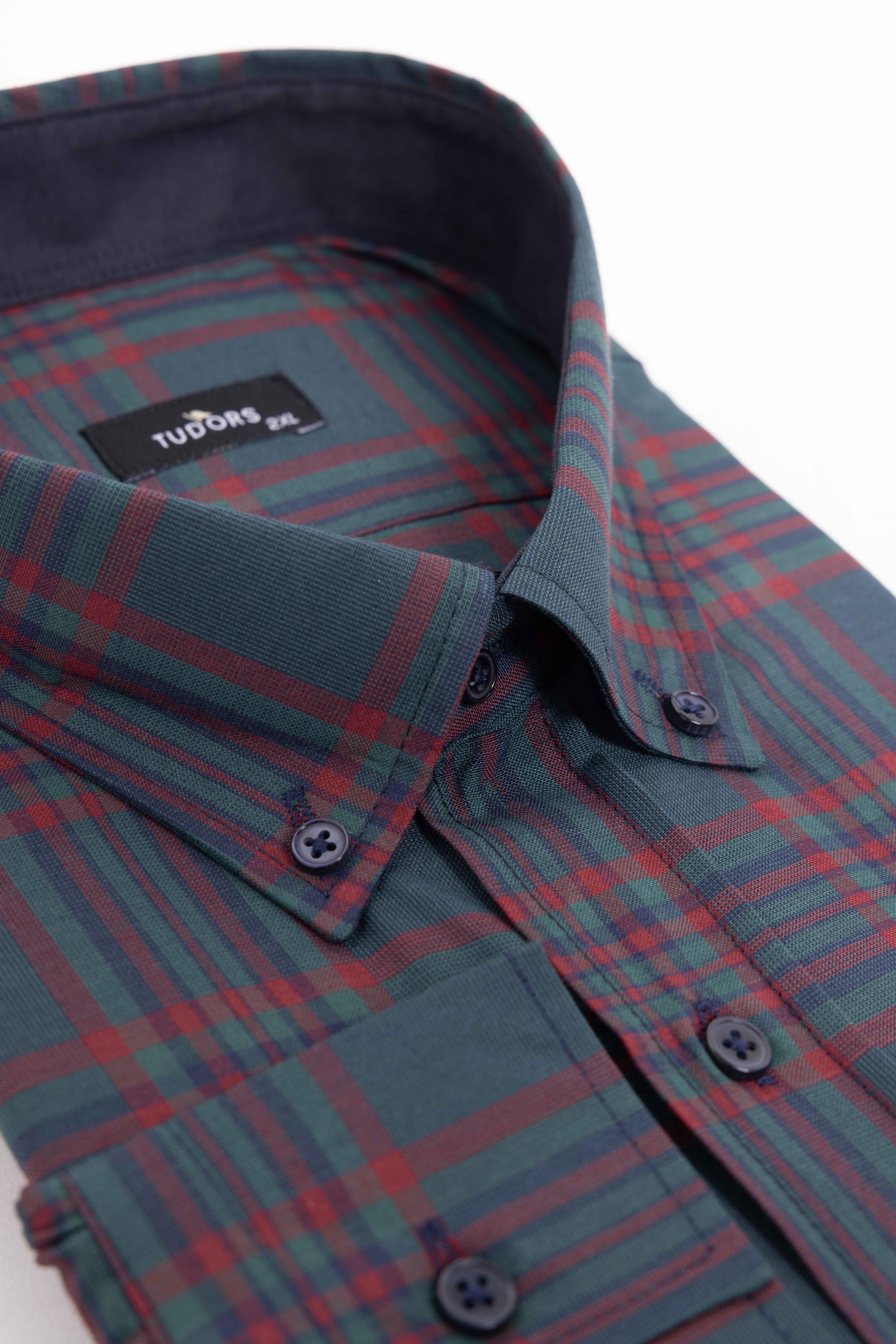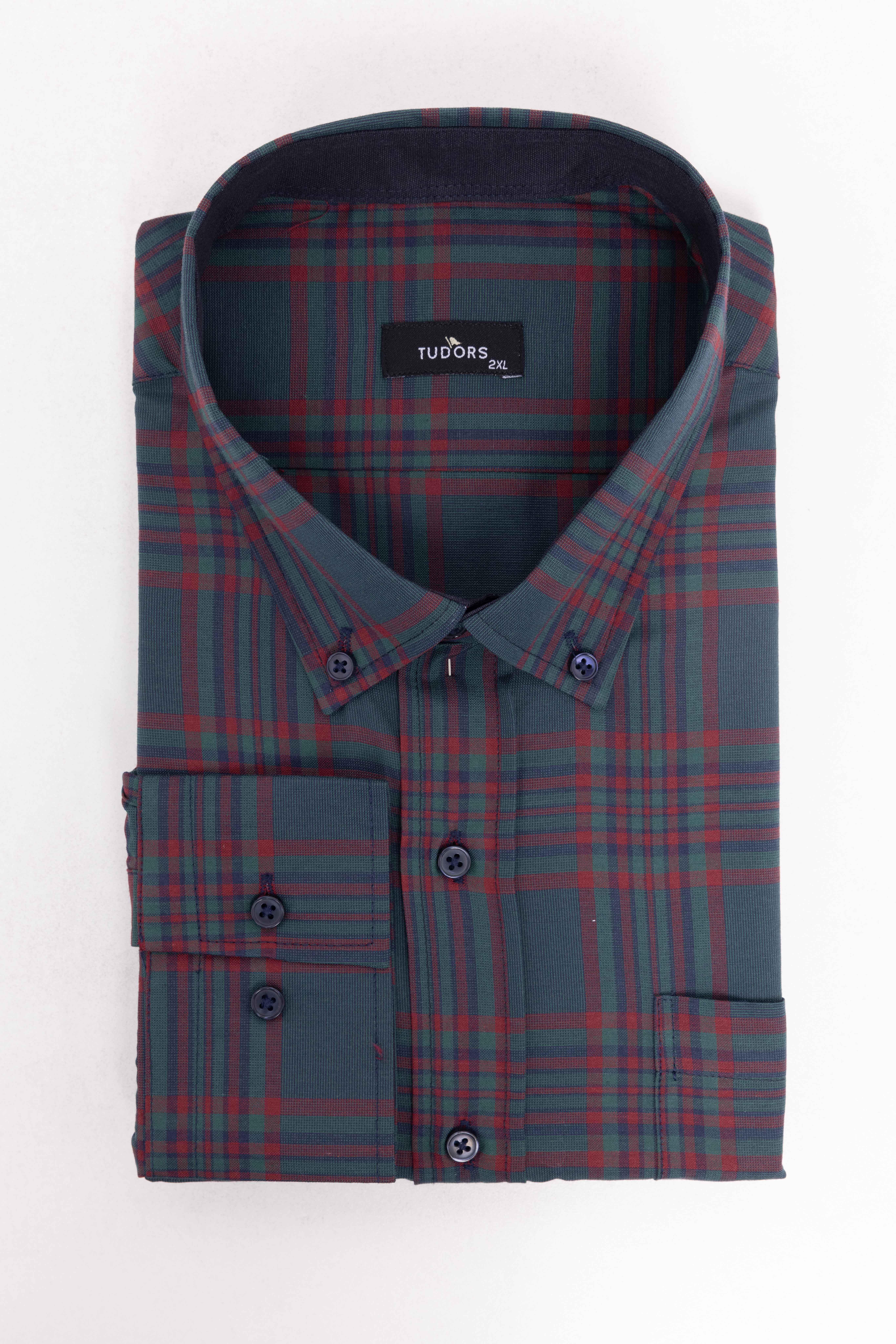 Erkek Big Size Büyük Beden Uzun Kollu Ekoseli Biyeli Yaka Düğmeli Gömlek (BT230017-401)