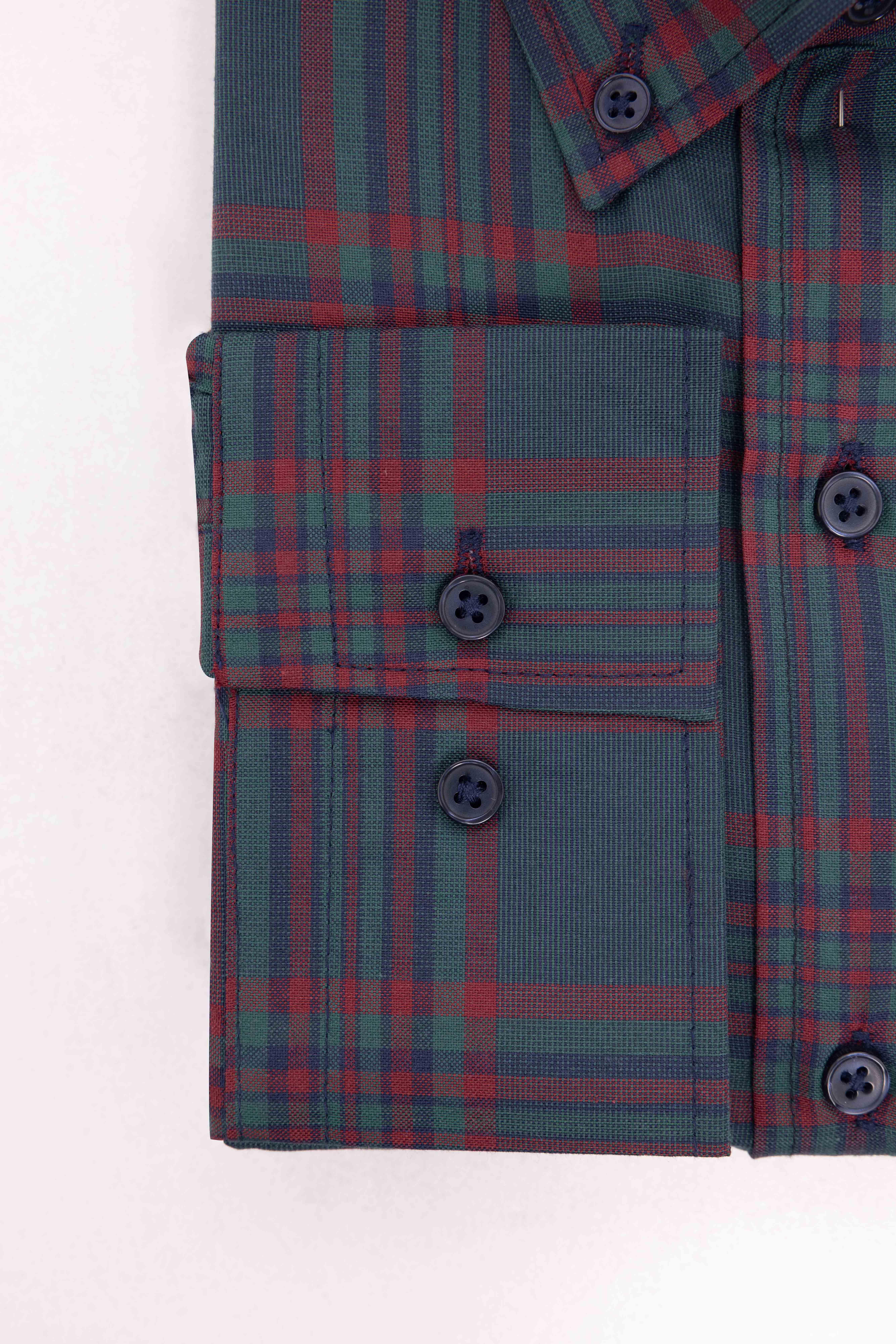 Erkek Big Size Büyük Beden Uzun Kollu Ekoseli Biyeli Yaka Düğmeli Gömlek