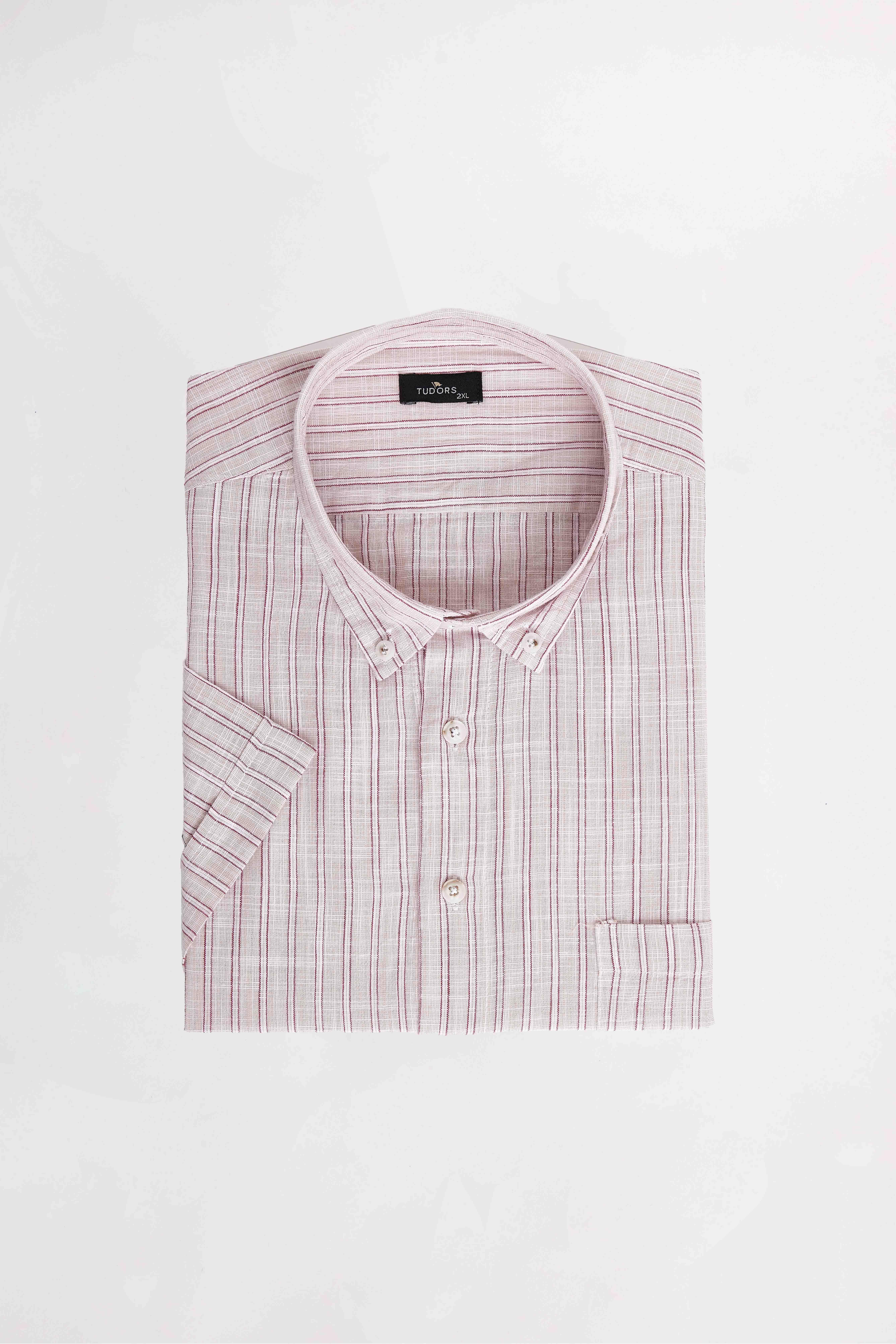 BIG SIZE SHORT SLV STRIPE LINEN 24/25 GÖMLEK