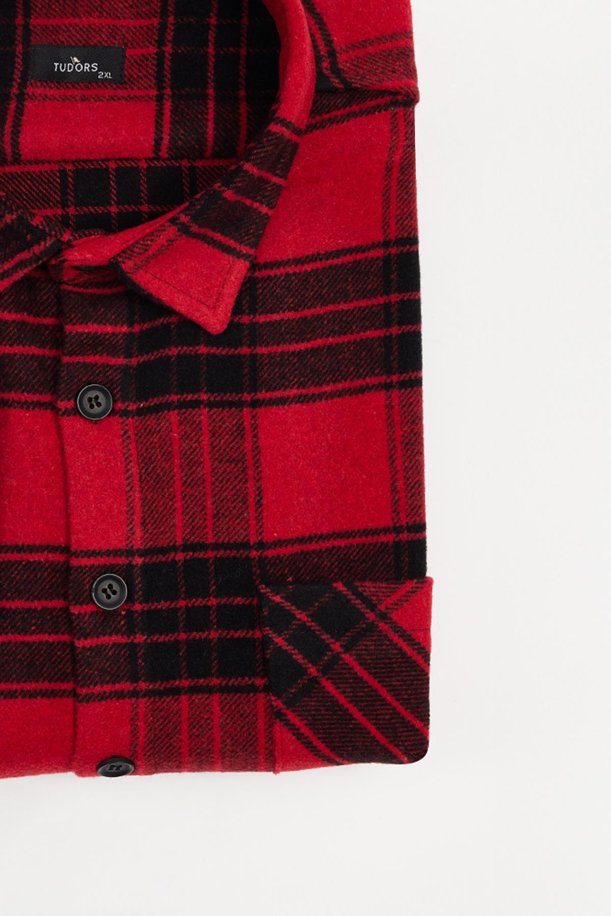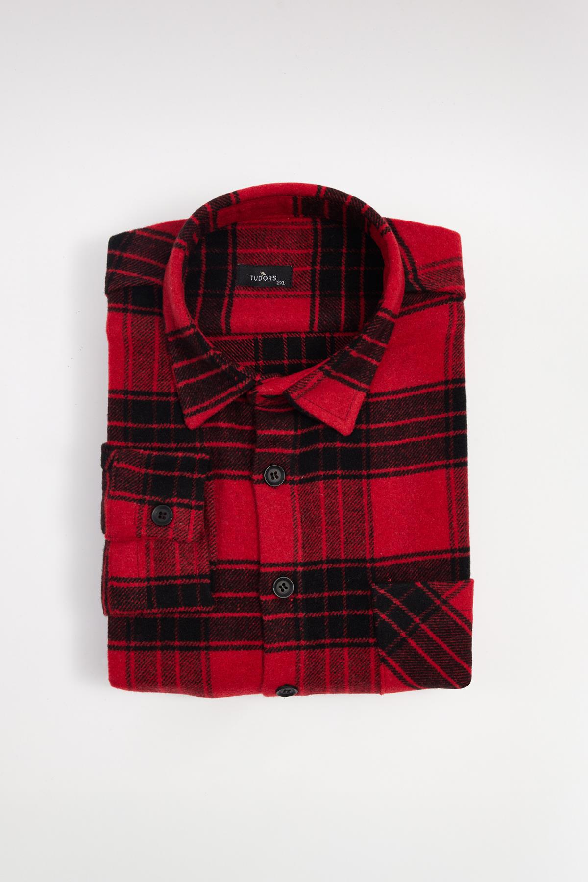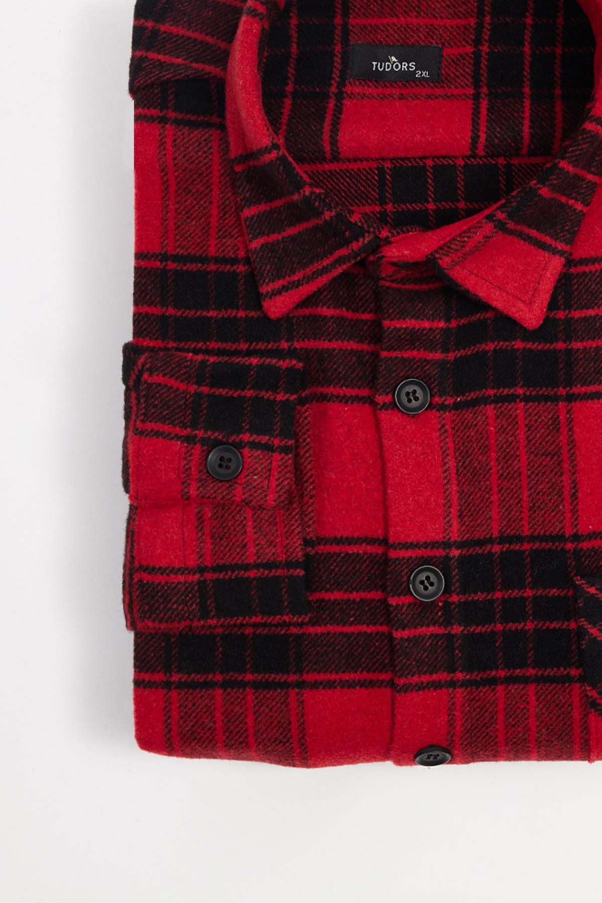 Erkek Big Size Büyük Beden Uzun Kollu Cepli Kareli Kışlık Oduncu Gömlek (BT250009-5668)
