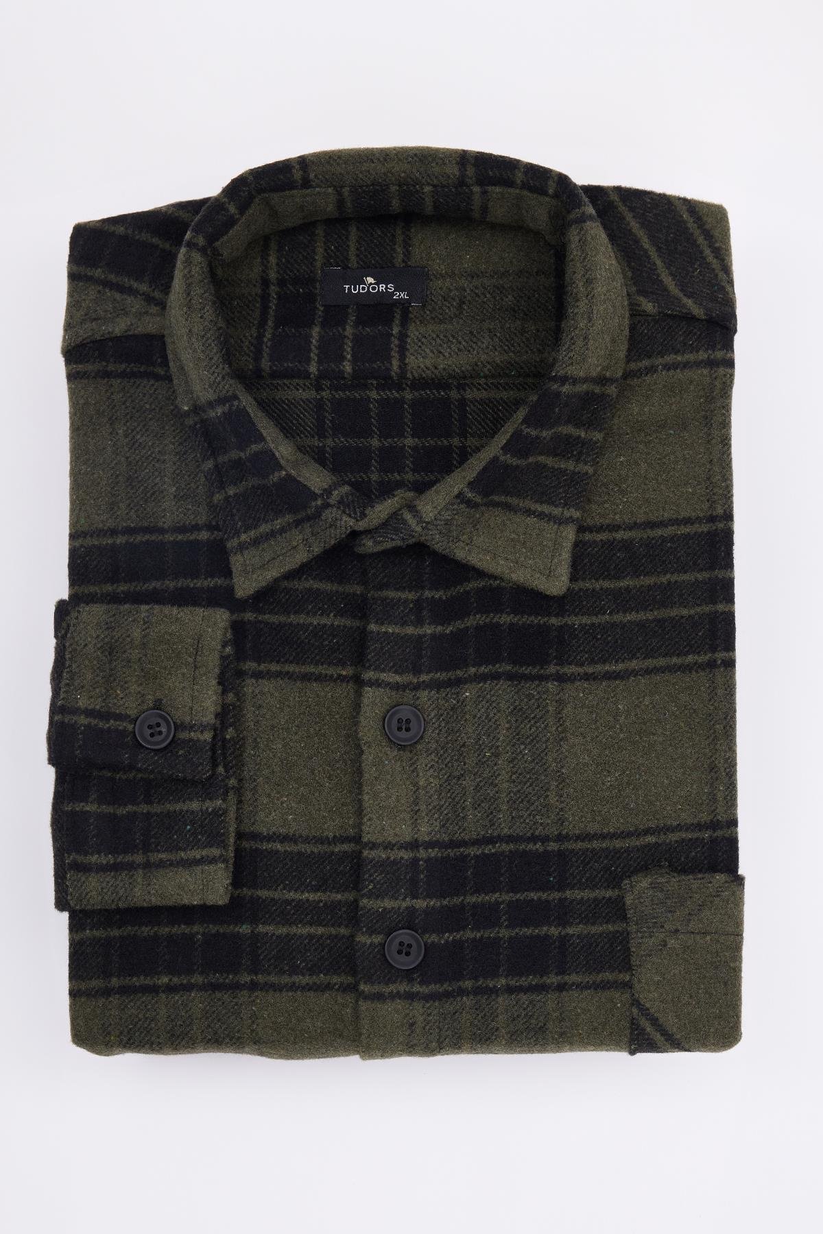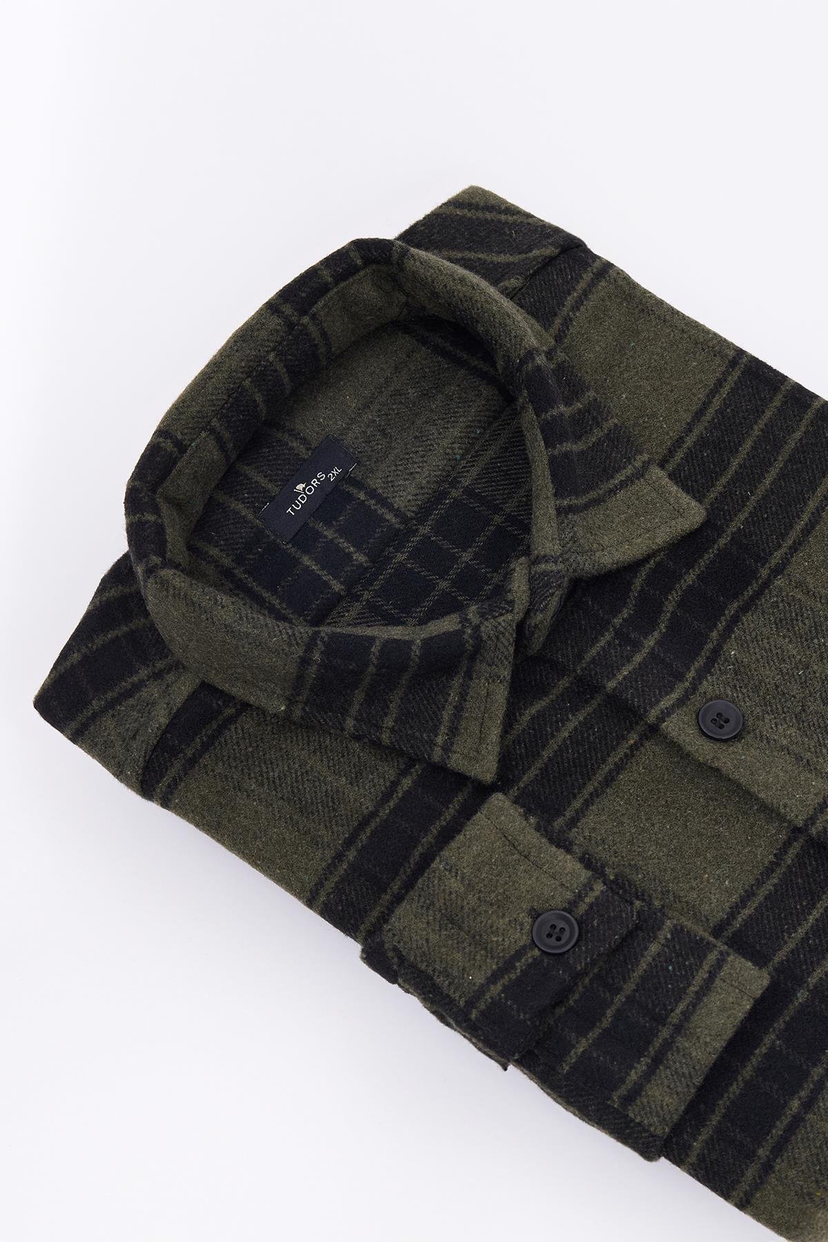 Erkek Big Size Büyük Beden Uzun Kollu Cepli Kareli Kışlık Oduncu Gömlek (BT250009-5665)