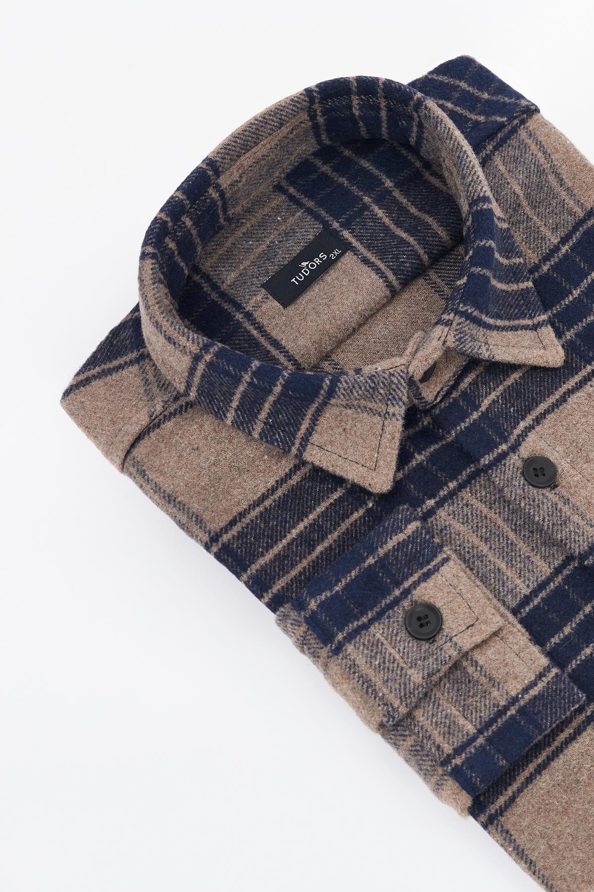 Erkek Big Size Büyük Beden Uzun Kollu Cepli Kareli Kışlık Oduncu Gömlek (BT250009-5669)