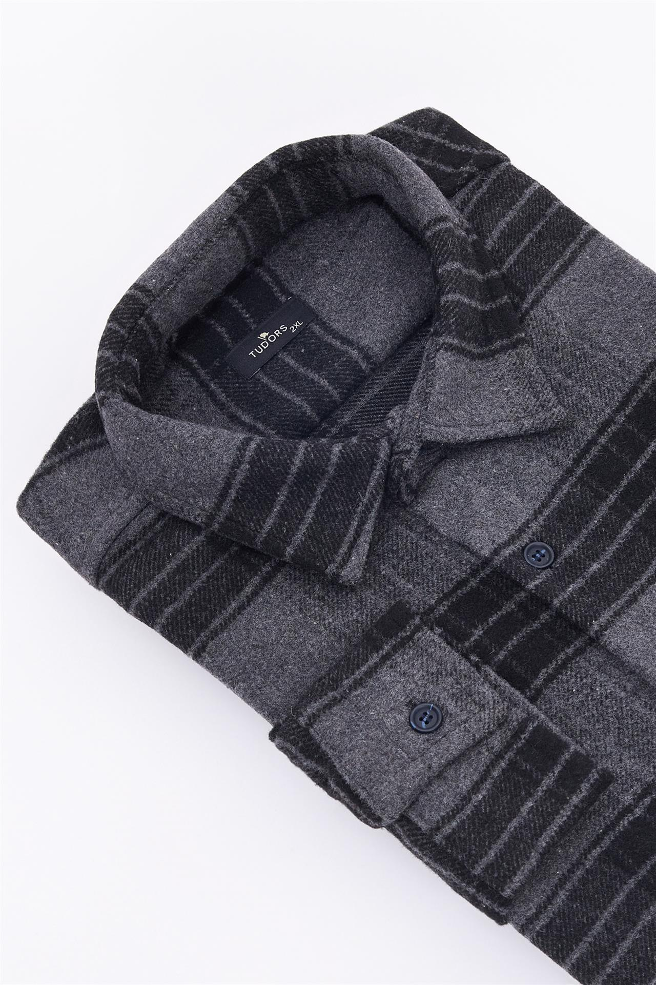 Erkek Big Size Büyük Beden Uzun Kollu Cepli Kareli Kışlık Oduncu Gömlek (BT250009-5670)