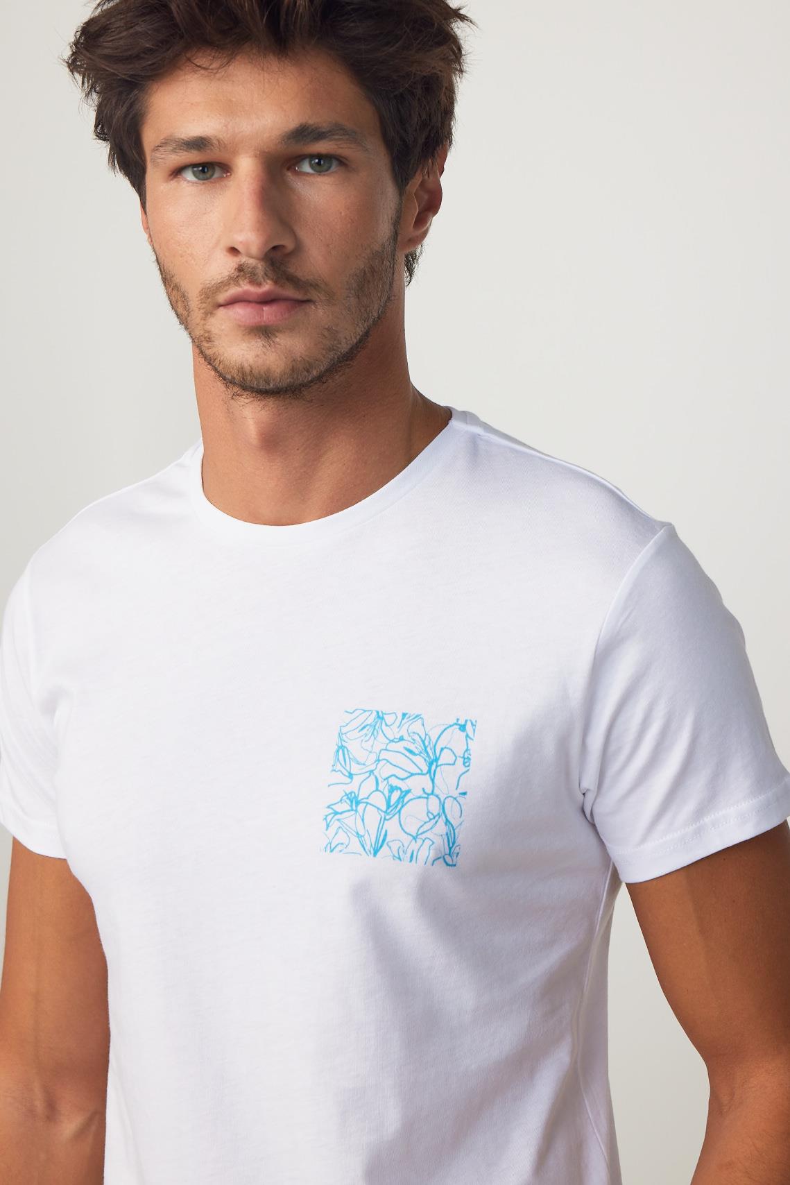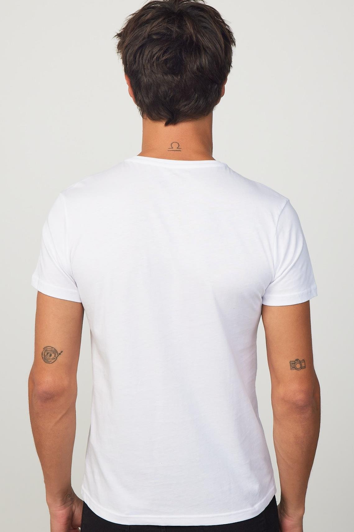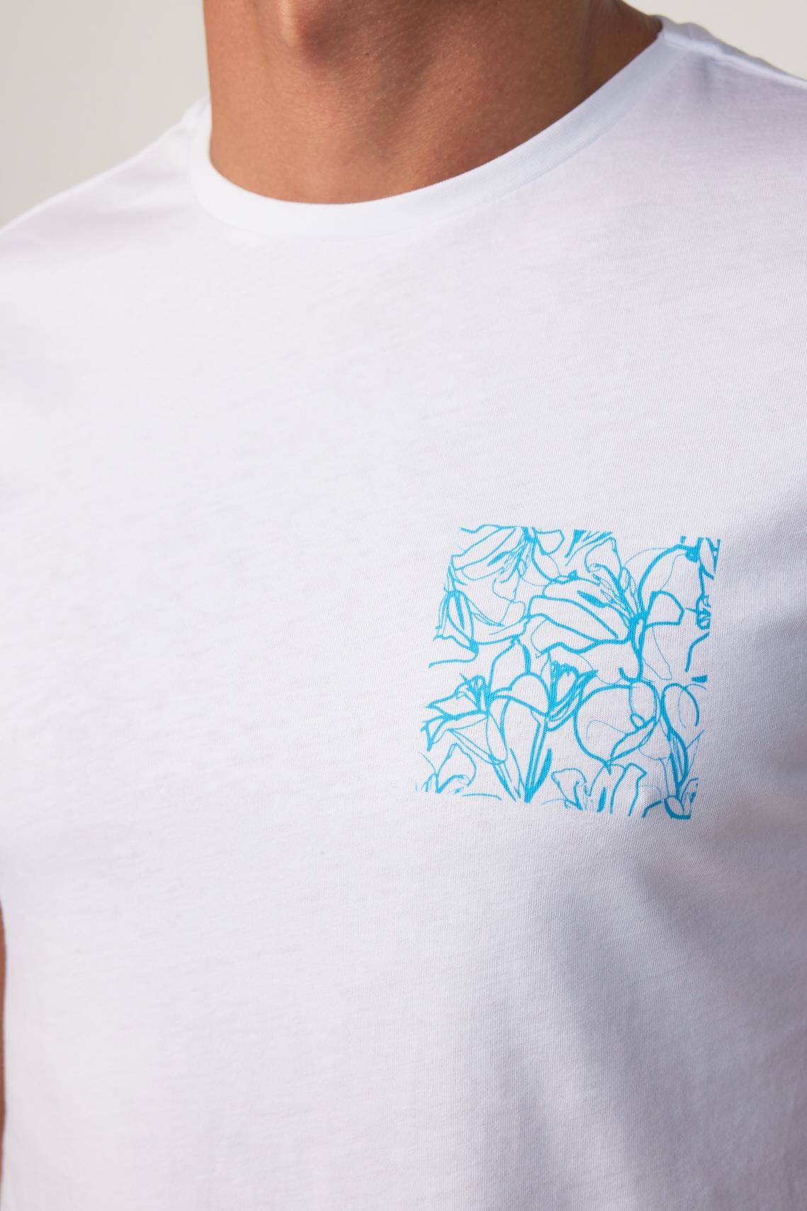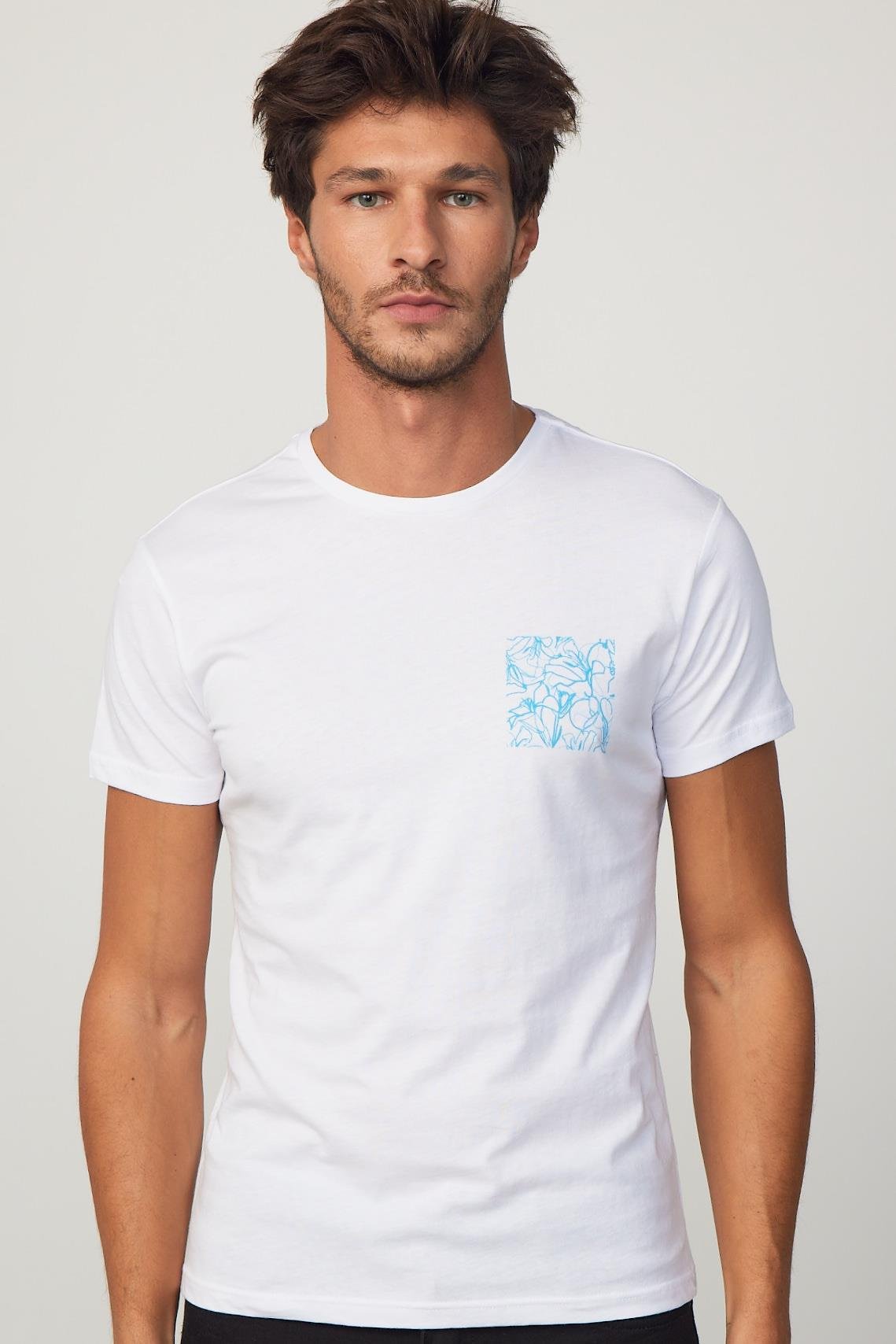 Erkek Slim Fit Dar Kesim %100 Pamuk Yumuşak Dokulu Baskılı Beyaz Bisiklet Yaka Tişört (TS240017-509)
