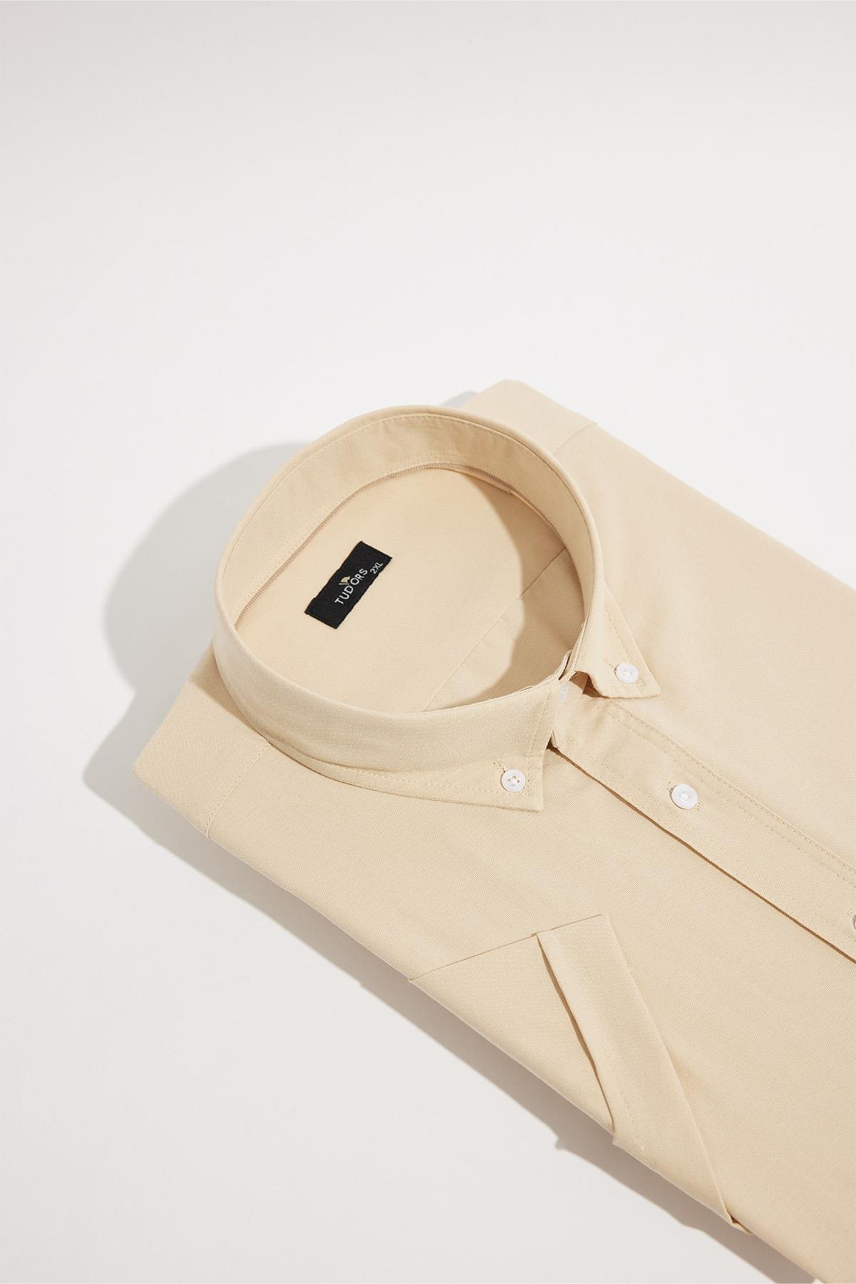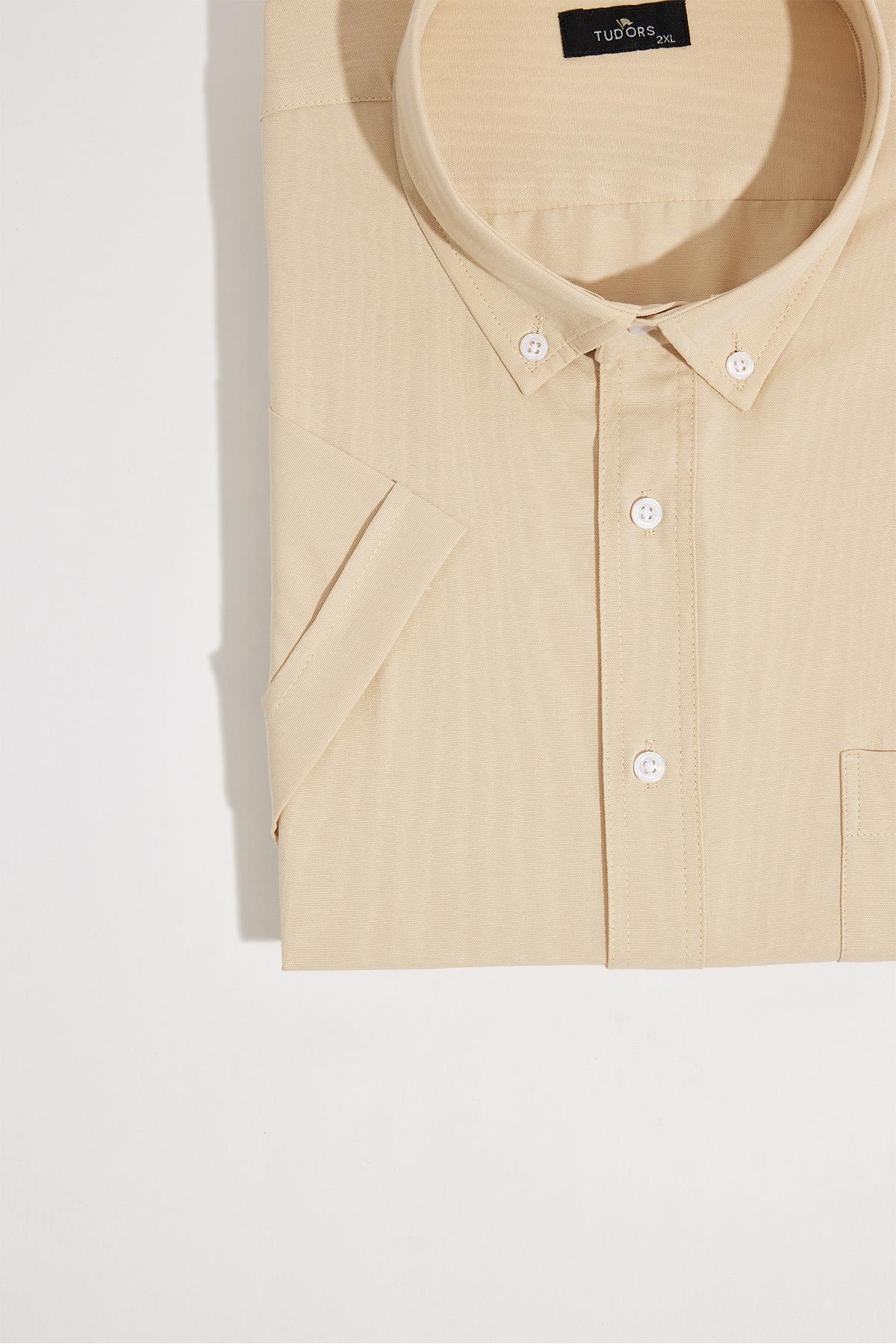 Erkek Büyük Beden Kısa Kol Yaka Düğmeli Pamuklu Cepli Düz Bej Gömlek (BT250007-753)