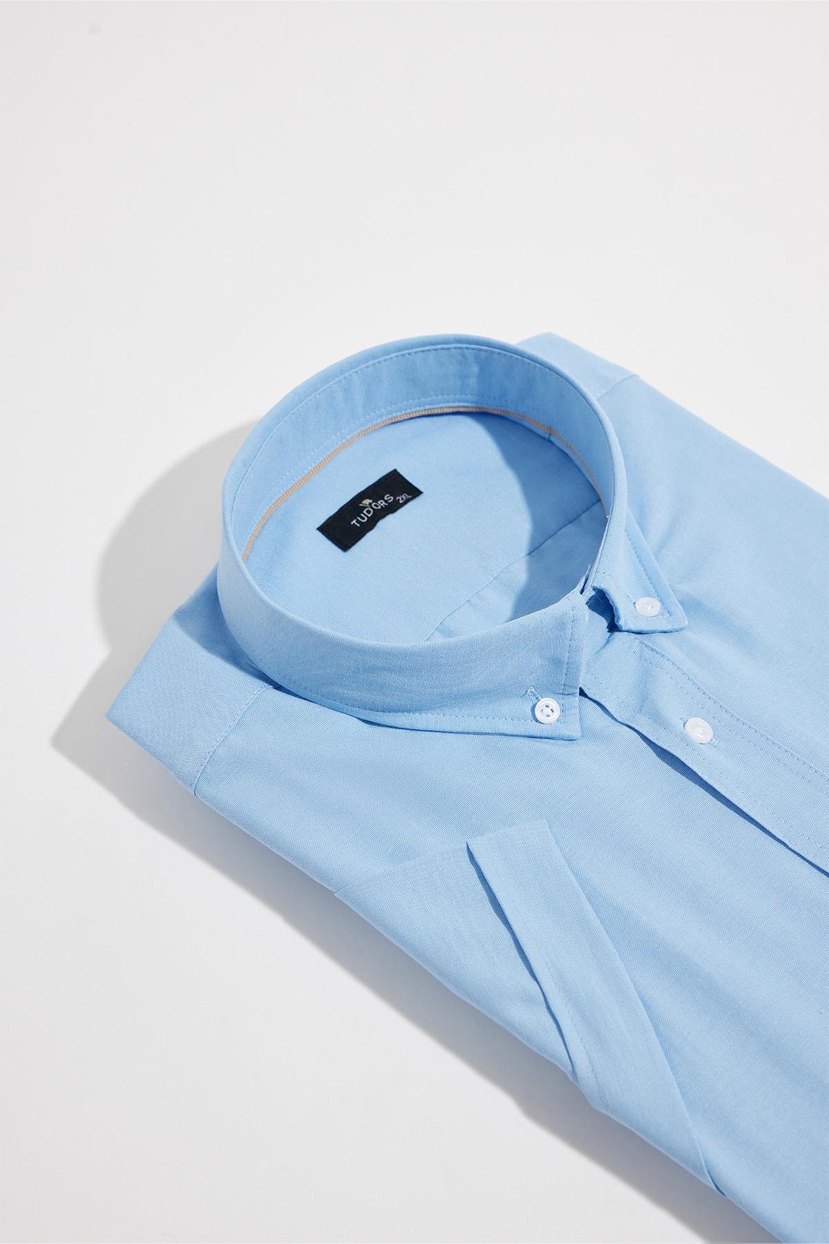 Erkek Büyük Beden Kısa Kol Yaka Düğmeli Pamuklu Cepli Düz Mavi Gömlek (BT250007-751)