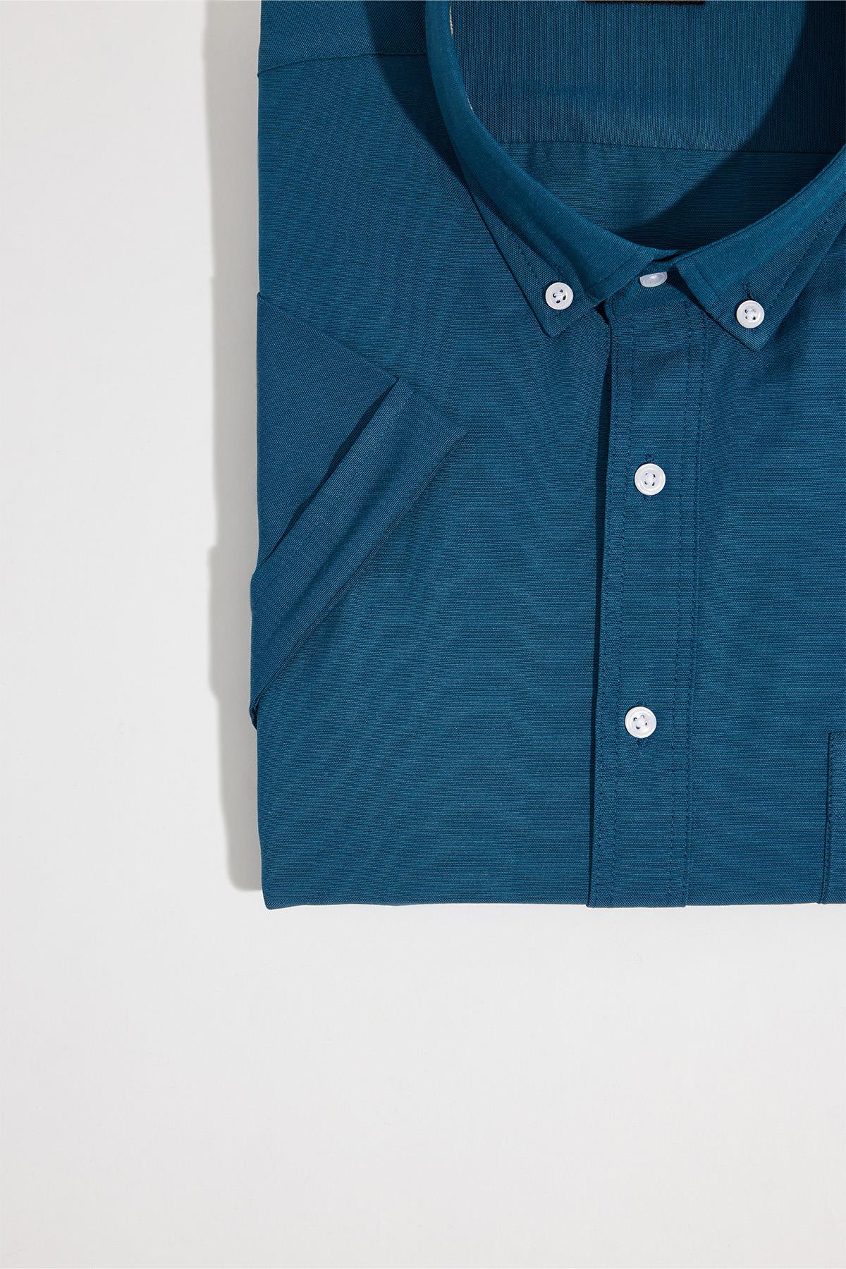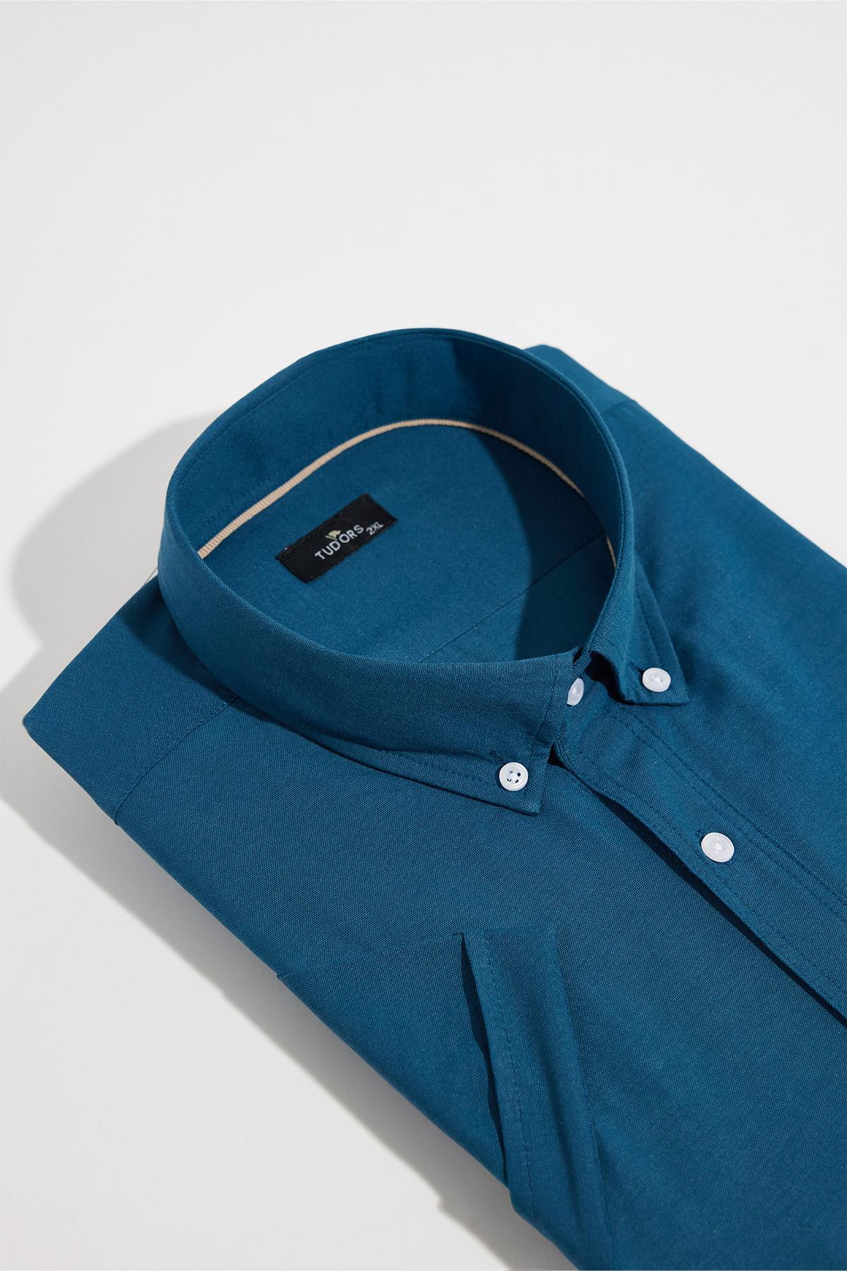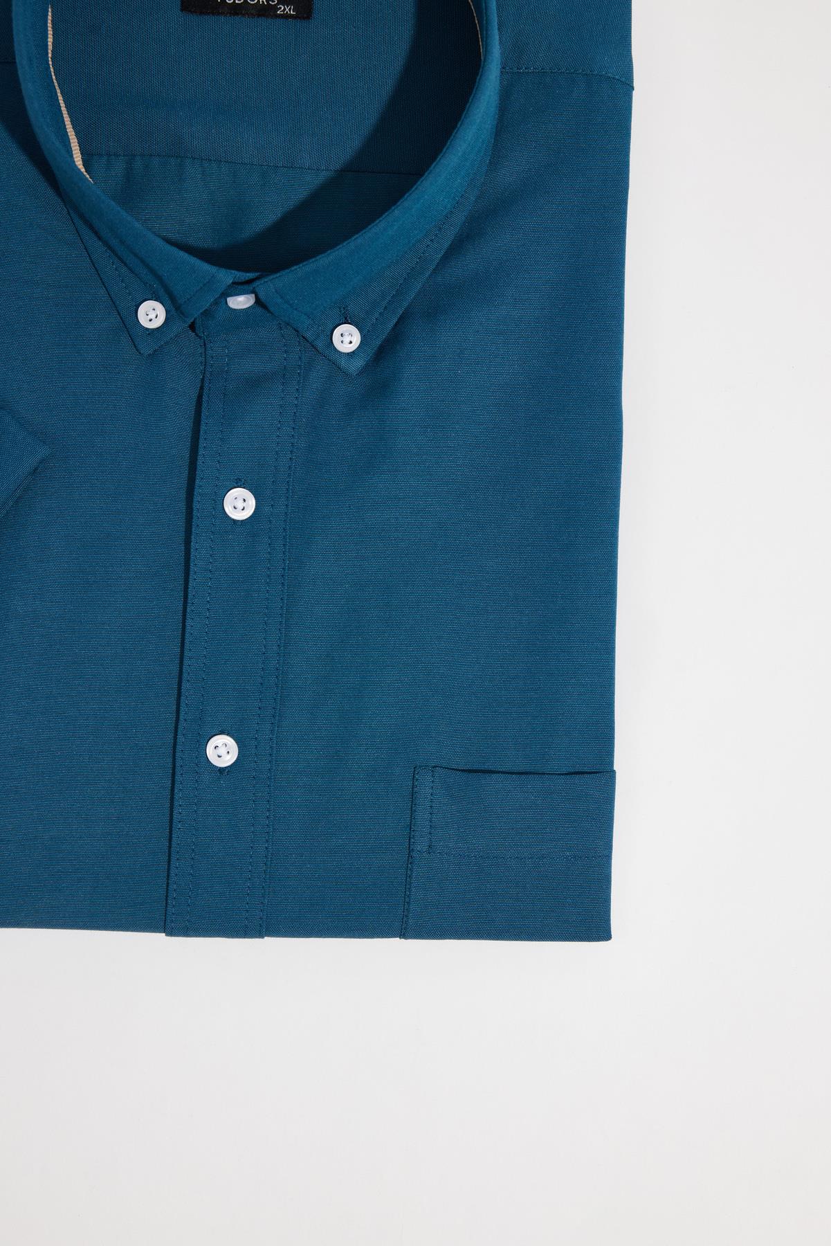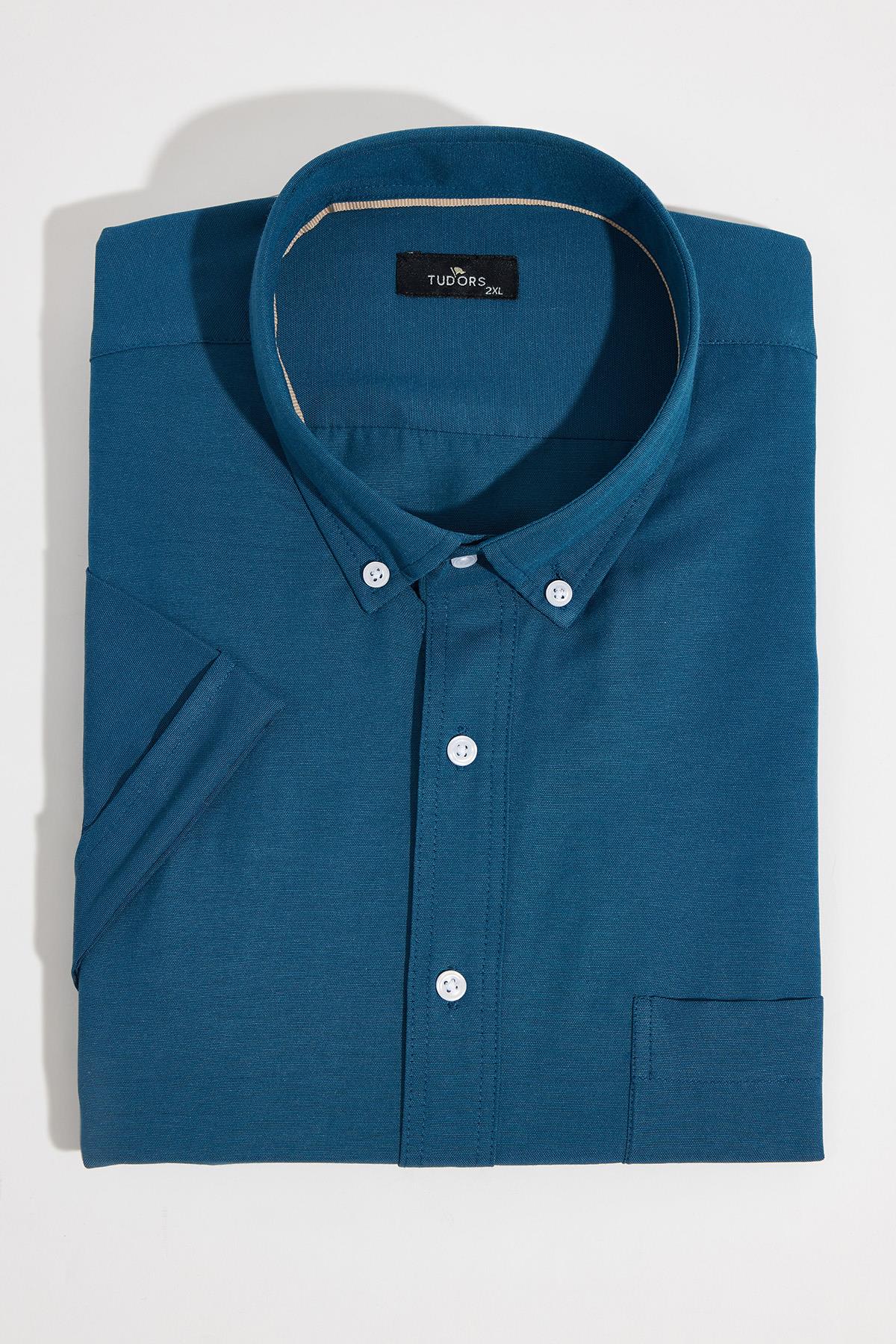 Erkek Büyük Beden Kısa Kol Yaka Düğmeli Pamuklu Cepli Düz Petrol Gömlek (BT250007-754)