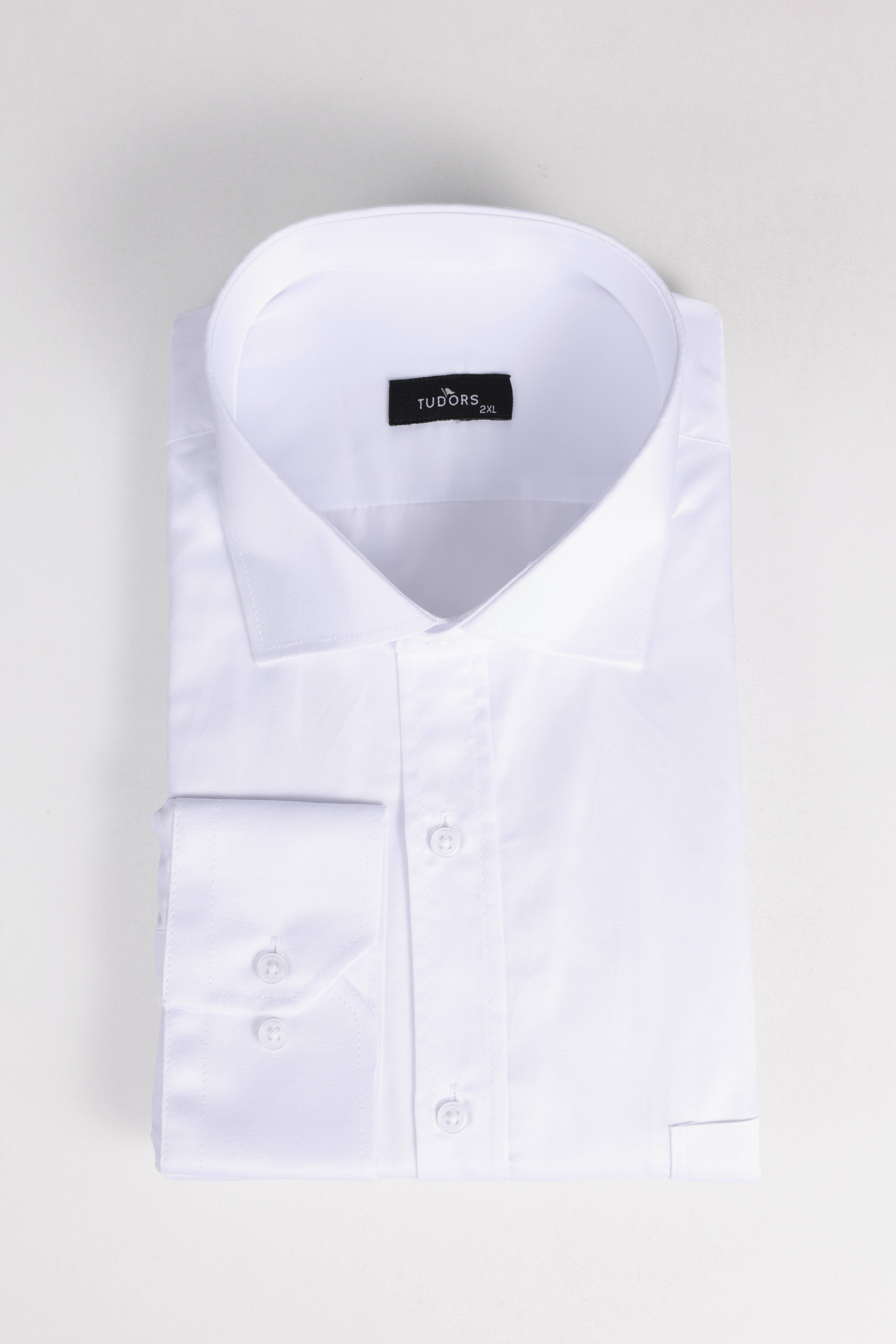 Erkek Büyük Beden Uzun Kollu Pamuklu Tek Cepli Saten Beyaz Gömlek (BT14016-135)