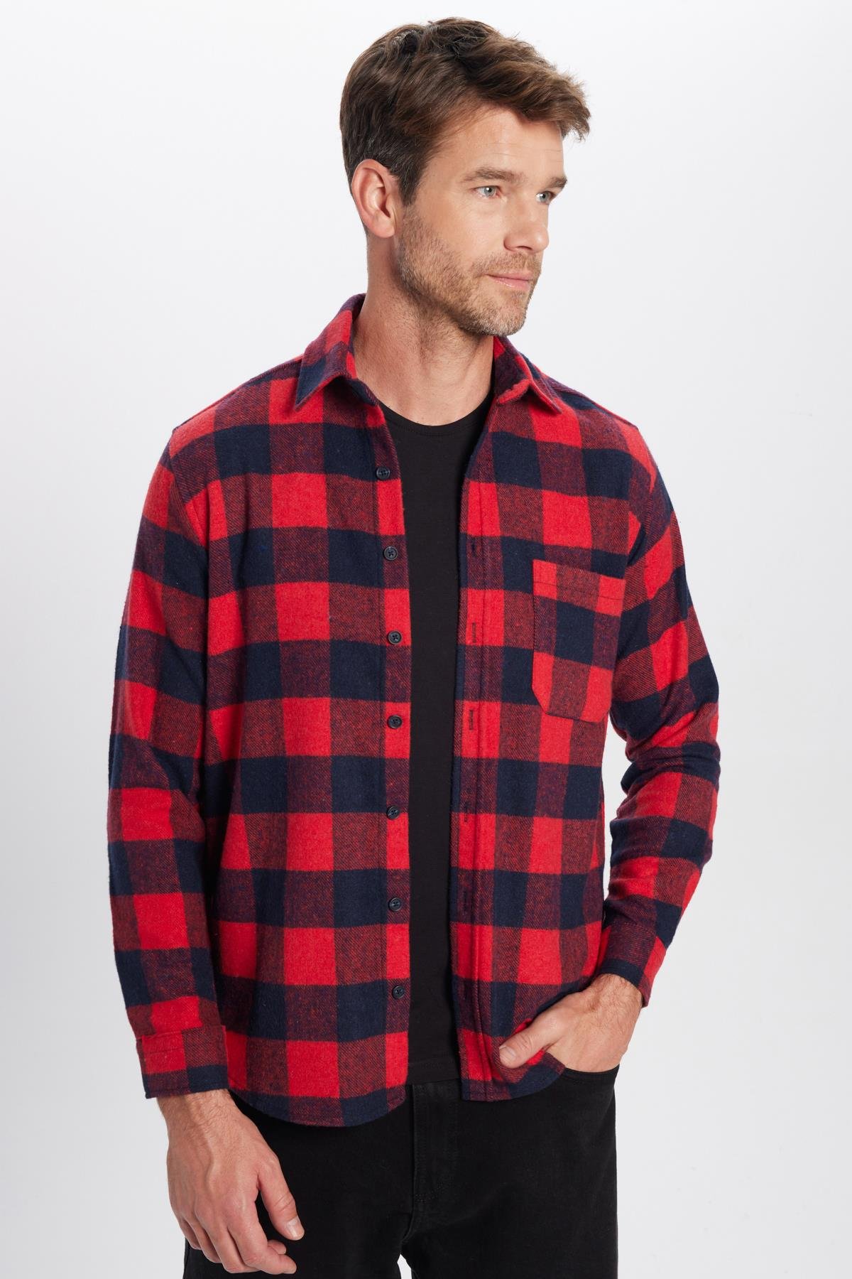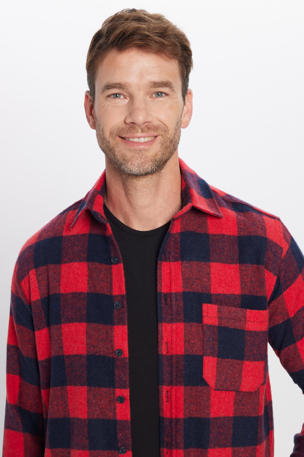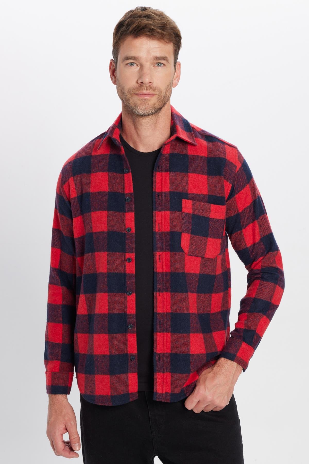 Erkek Regular Fit Klasik Kesim Oduncu Tek Cep Kareli Kışlık Gömlek