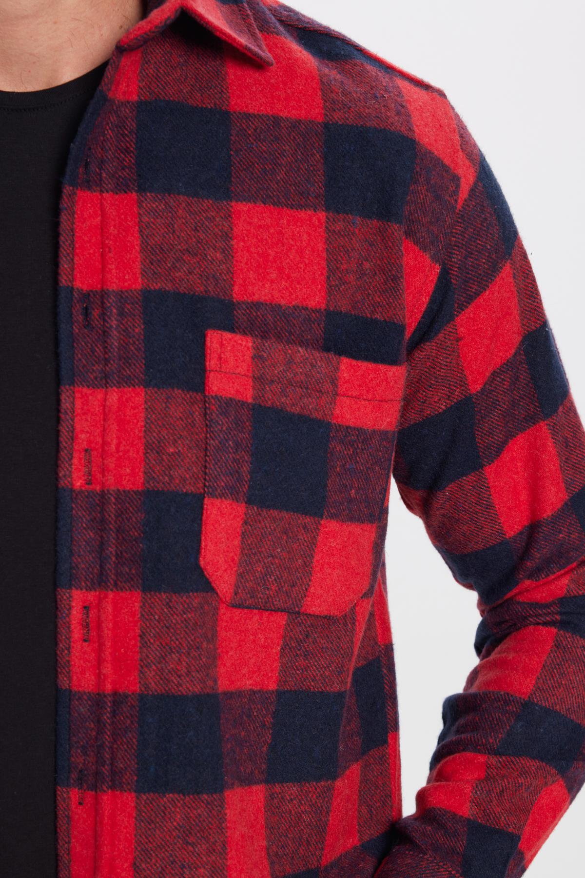 Erkek Regular Fit Klasik Kesim Oduncu Tek Cep Kareli Kışlık Gömlek (KL250003-4501)