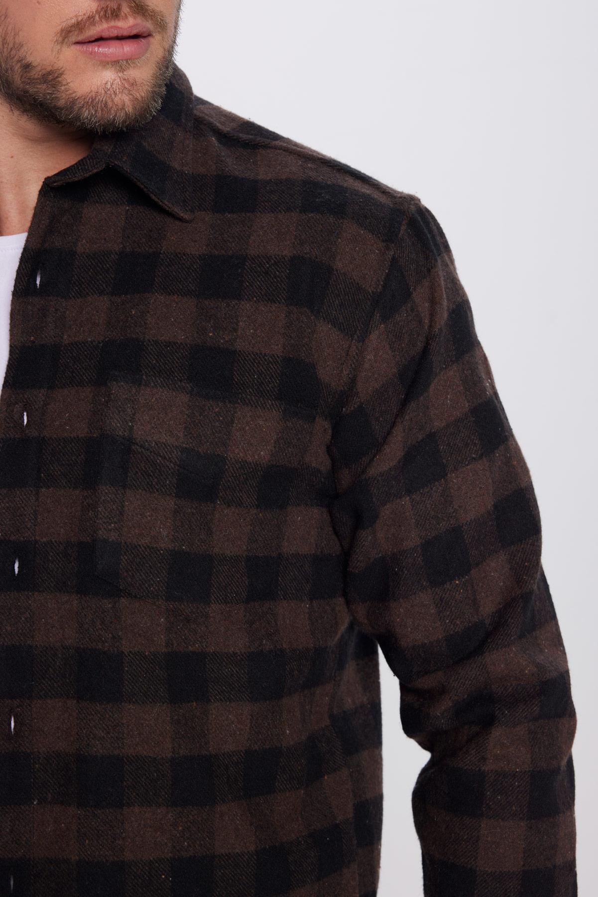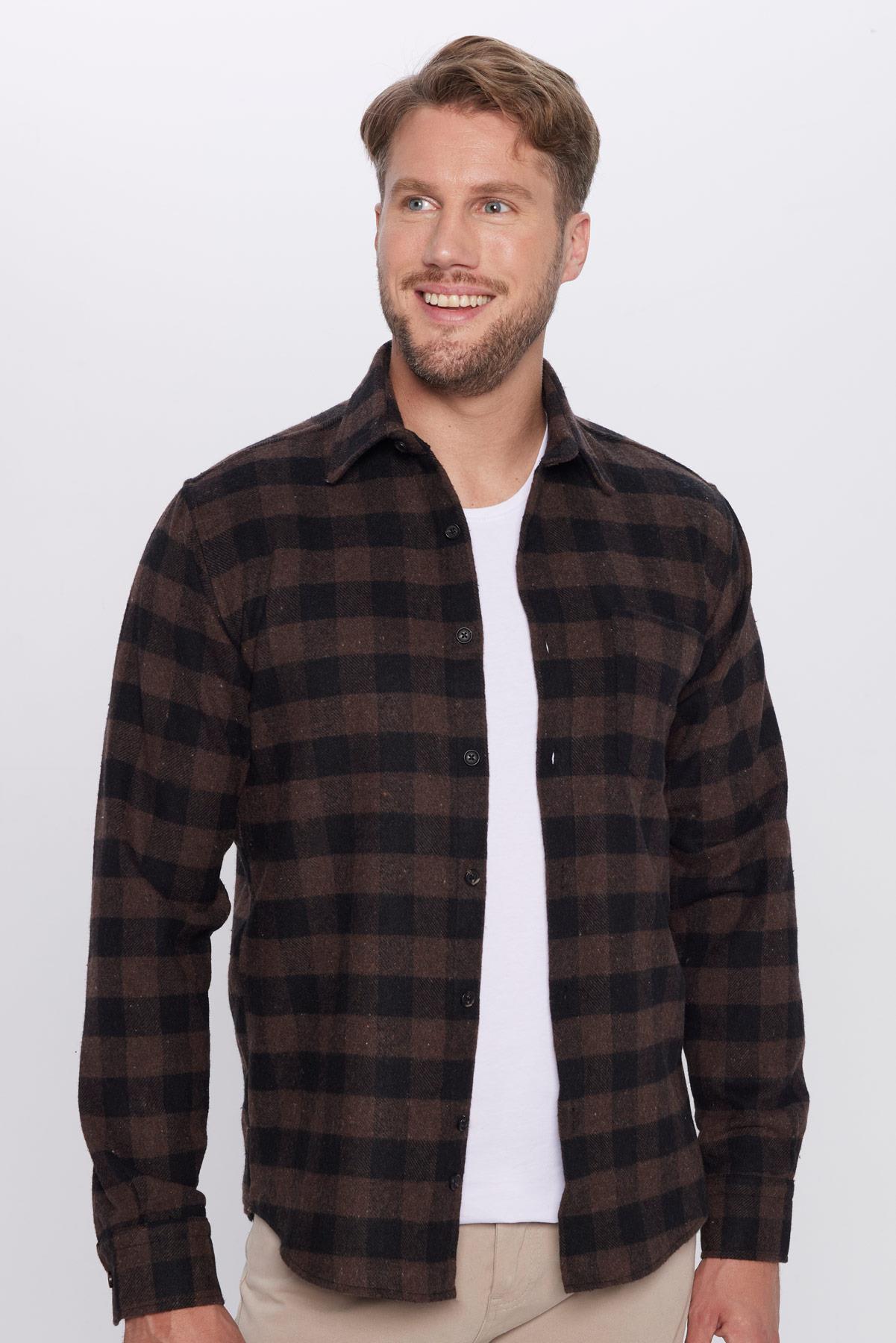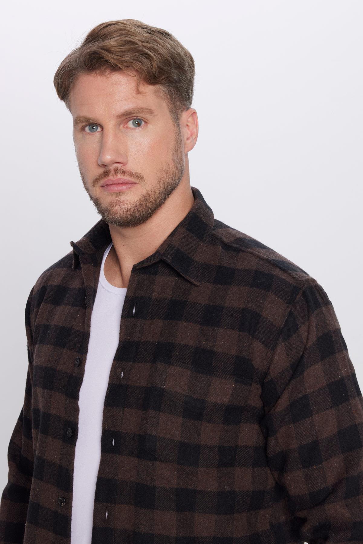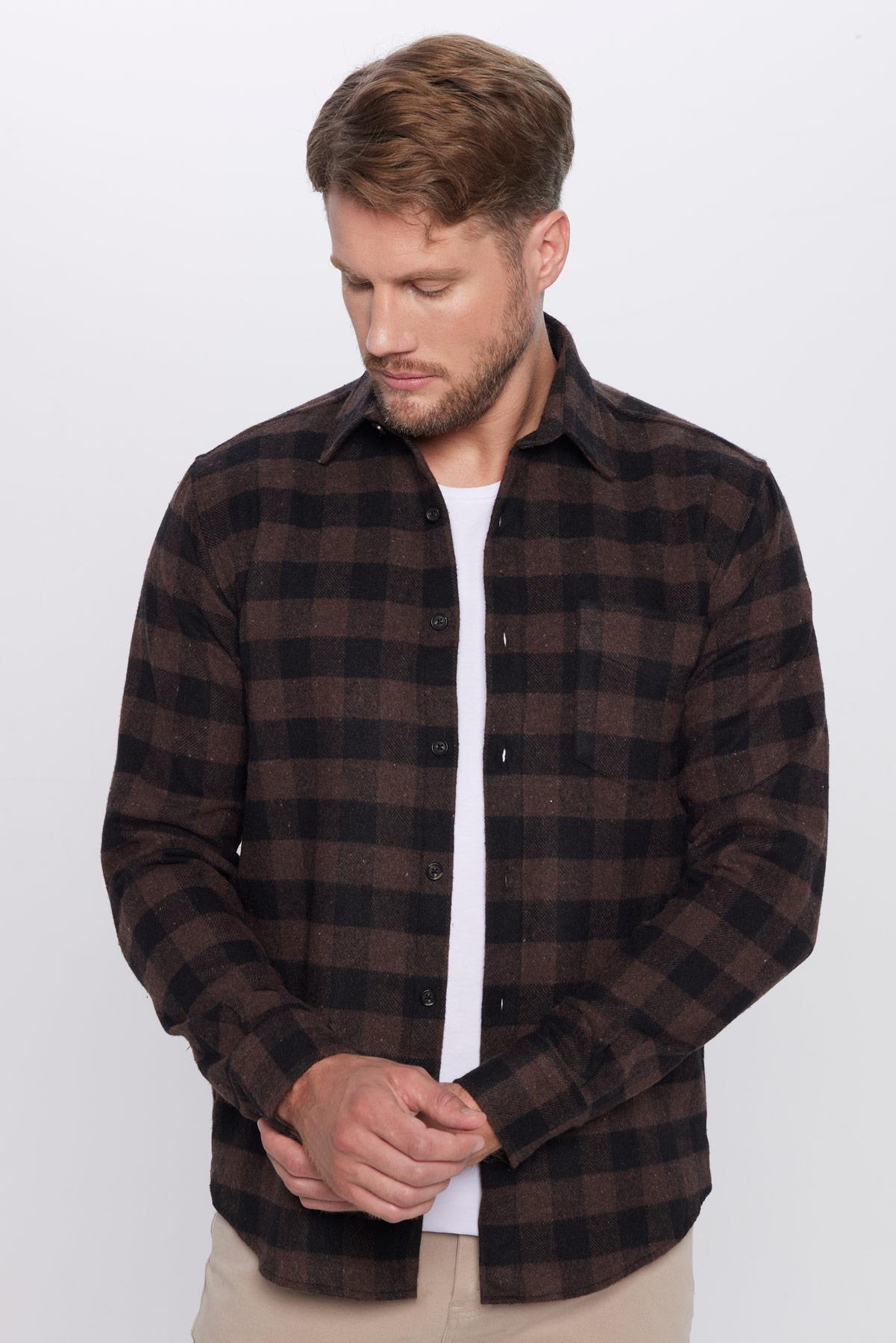 Erkek Regular Fit Klasik Kesim Oduncu Tek Cepli Kareli Kışlık Gömlek (KL250002-1425)