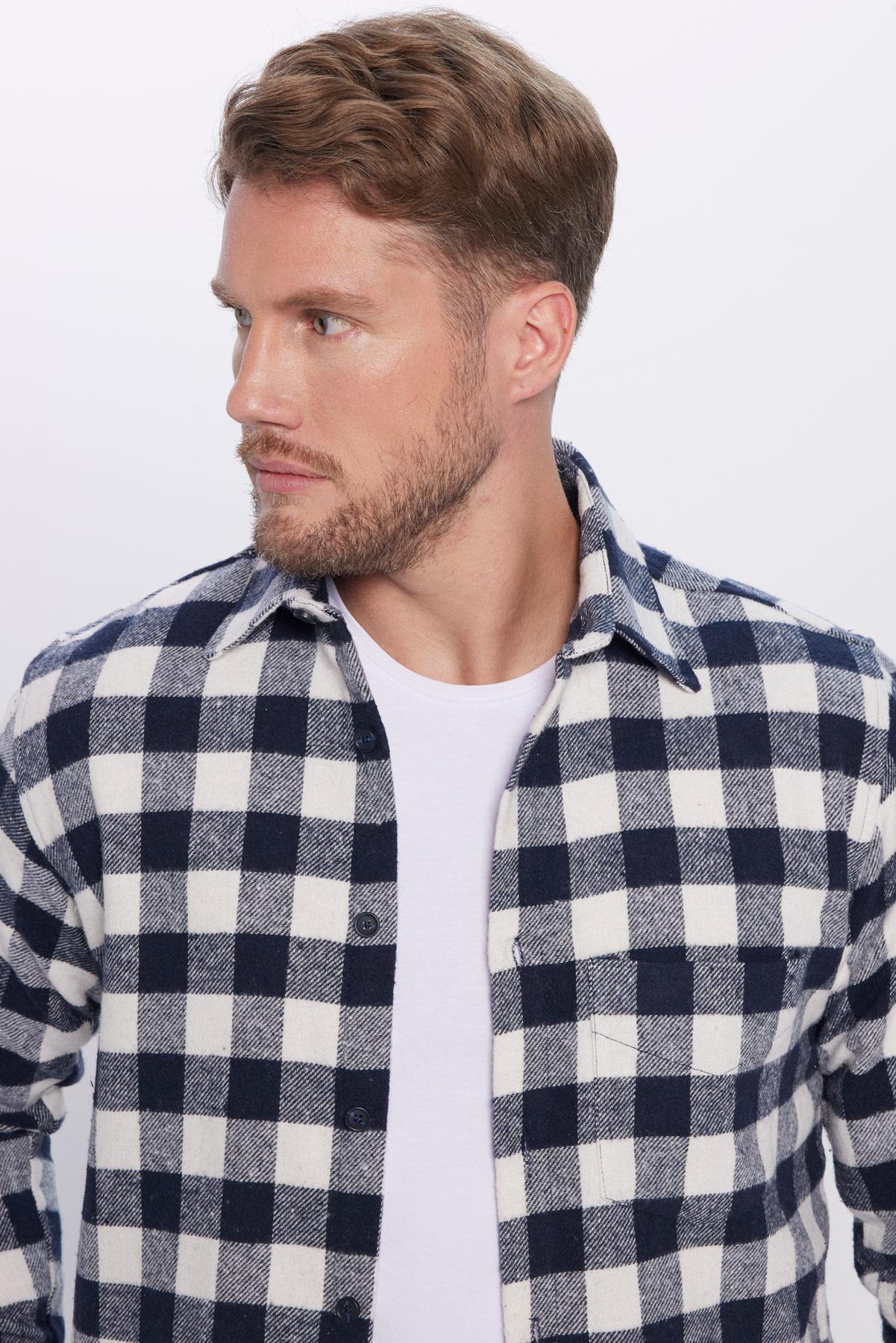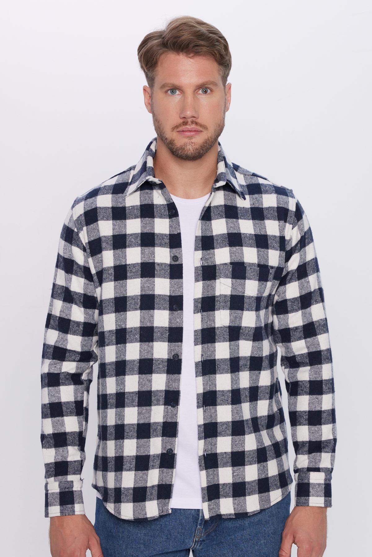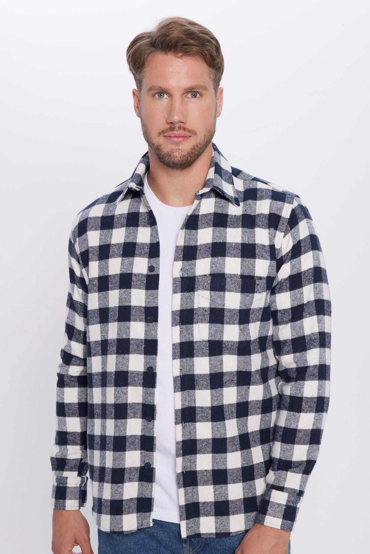 Erkek Regular Fit Klasik Kesim Oduncu Tek Cepli Kareli Kışlık Gömlek (KL250002-1428)