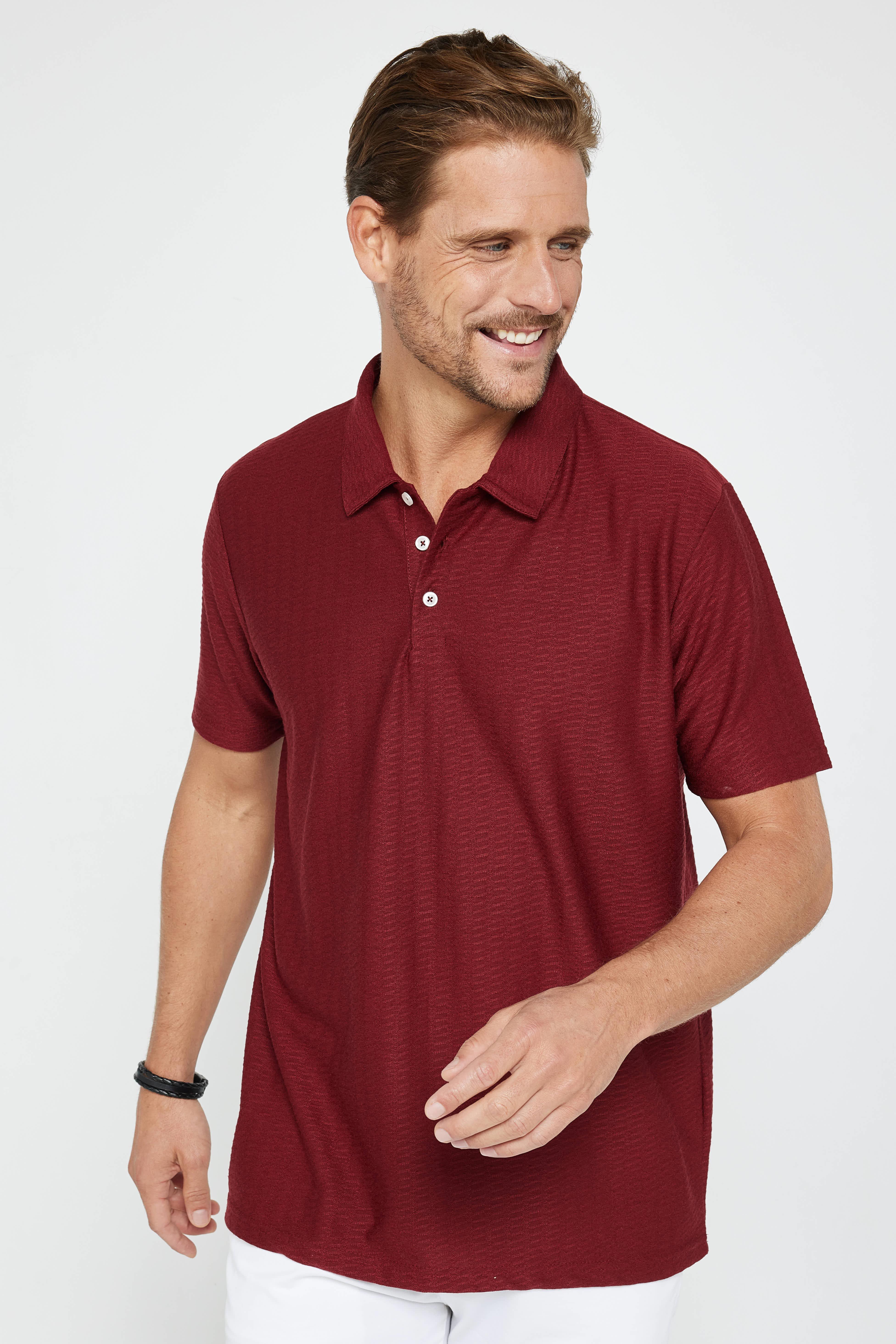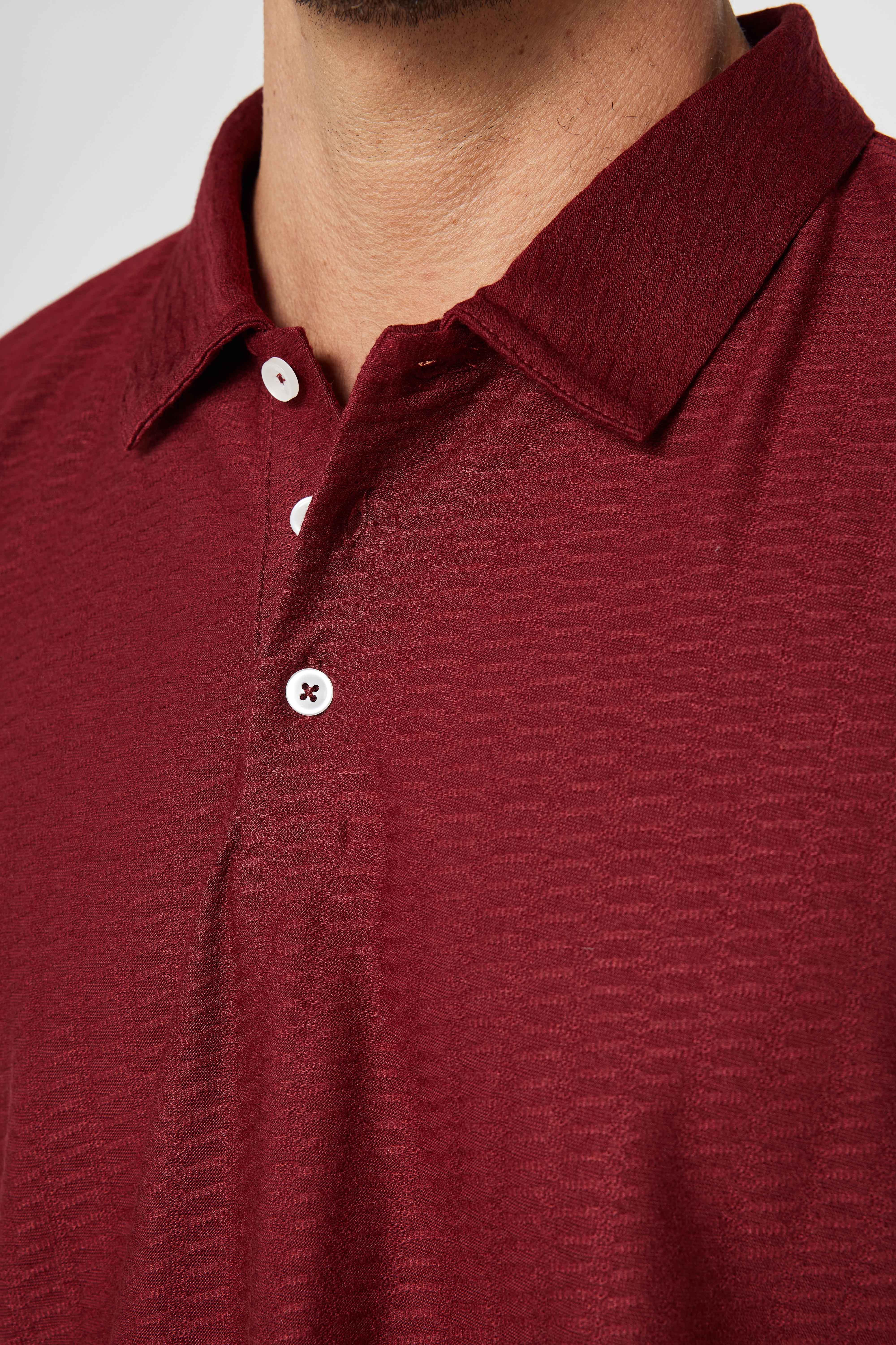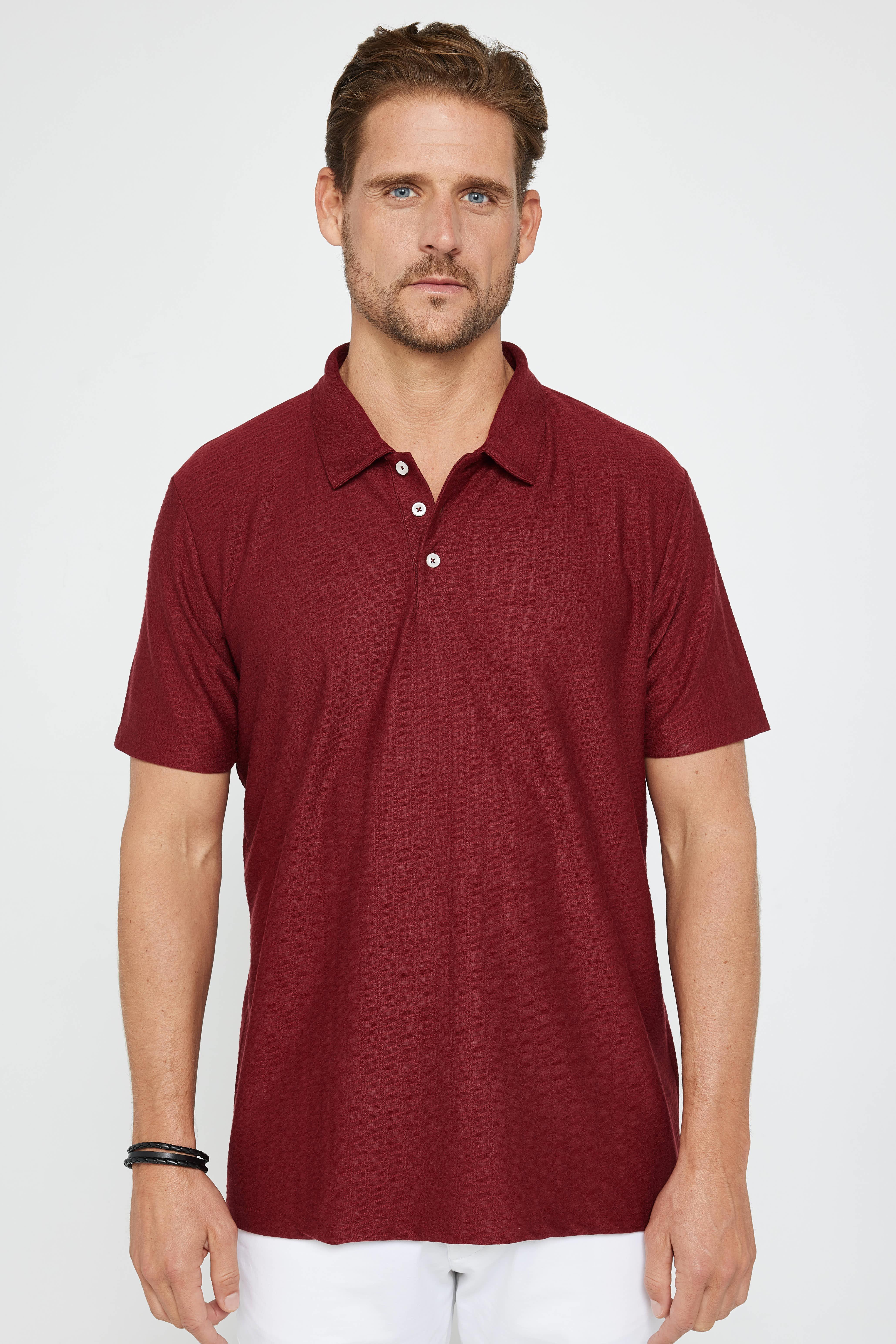 Erkek Regular Fit Klasik Kesim %100 Pamuk Jakarlı Bordo Polo Yaka Tişört