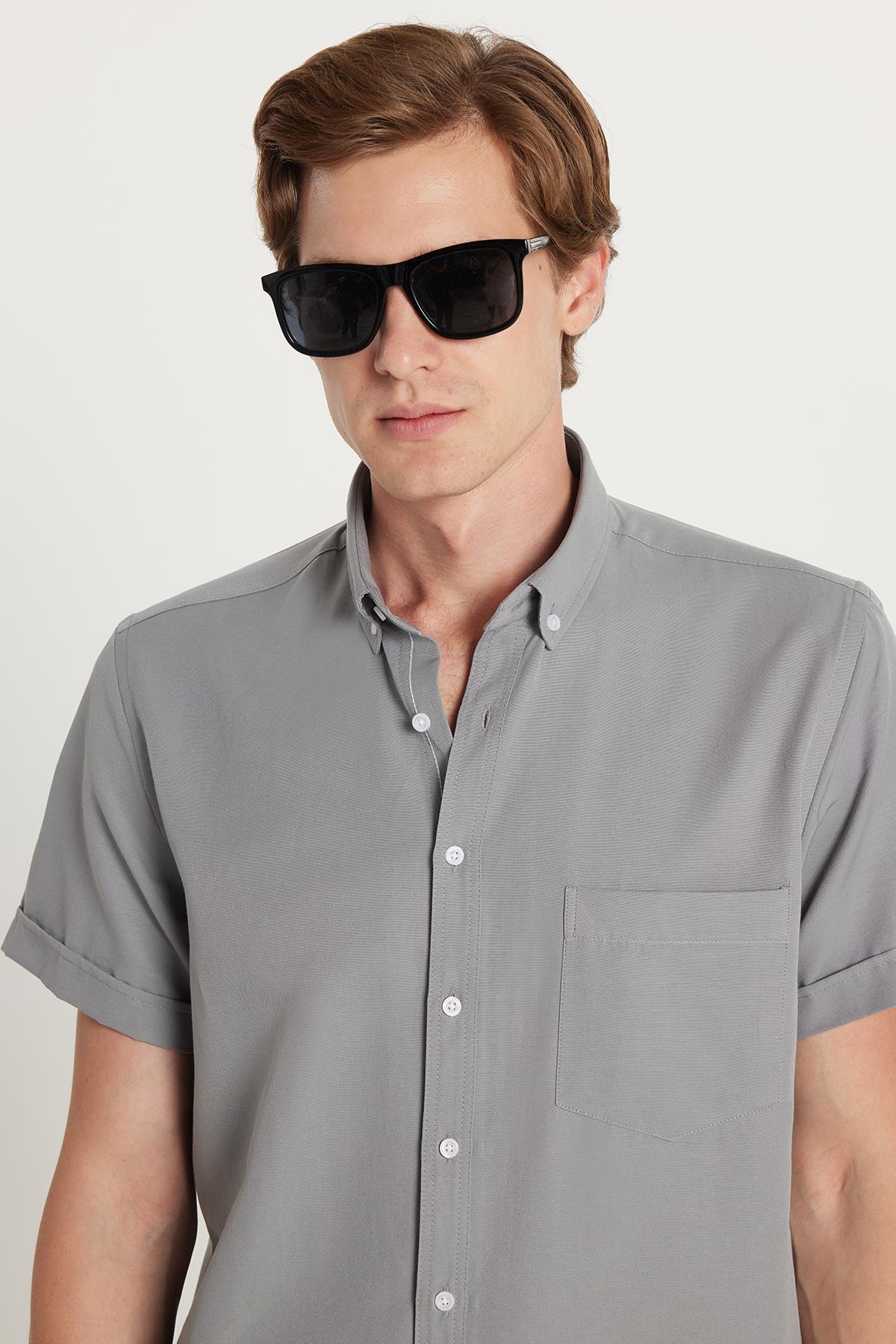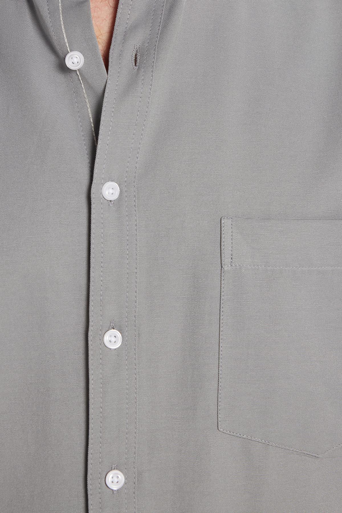 Erkek Klasik Regular Fit Rahat Kesim Düğmeli Spor Yaka Oxford Pamuklu Kısa Kol Gri Gömlek