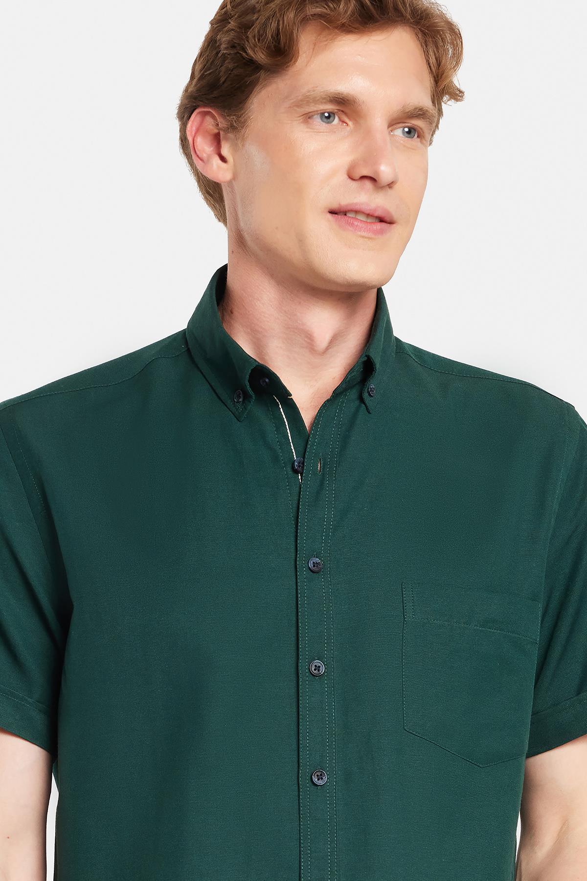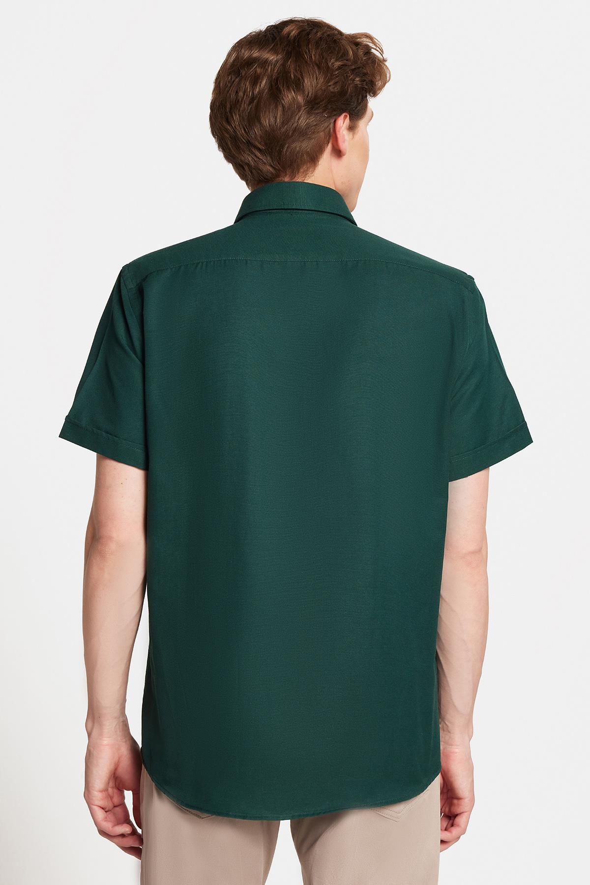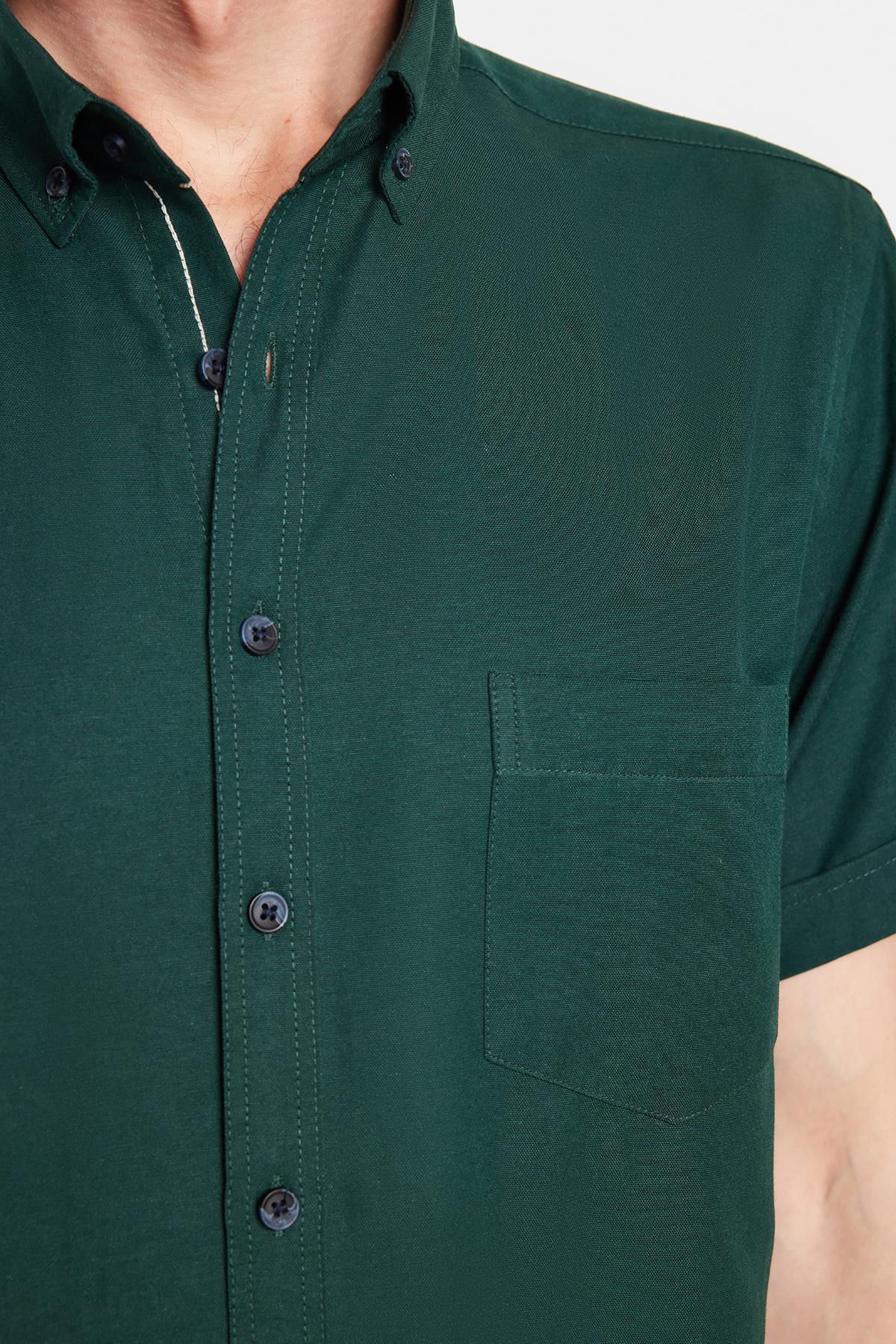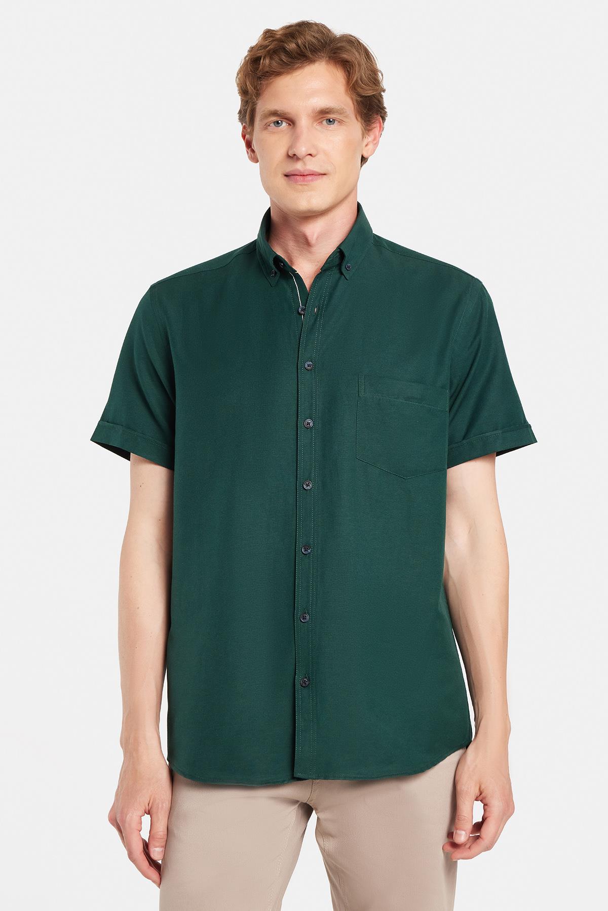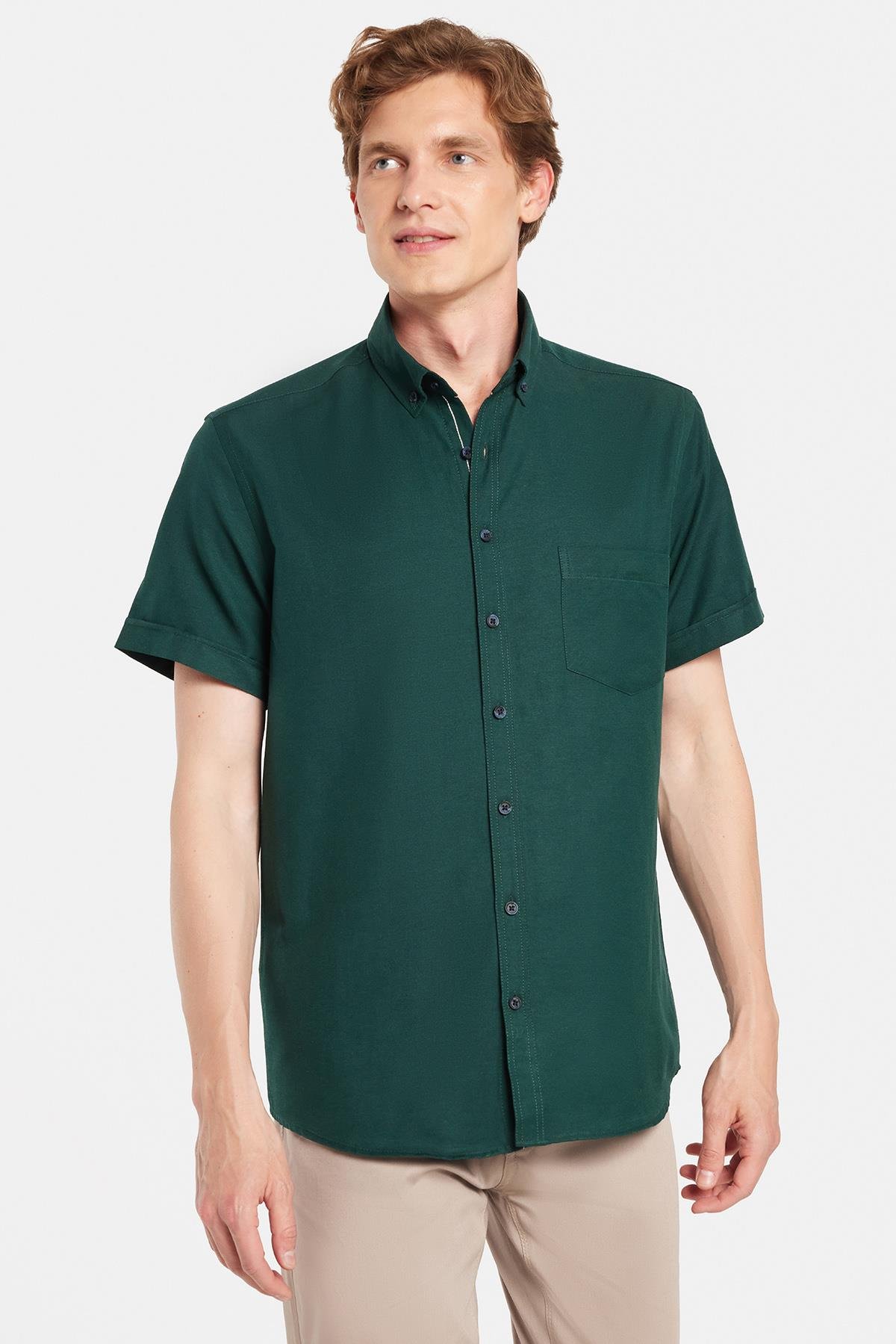Erkek Klasik Regular Fit Rahat Kesim Düğmeli Spor Yaka Oxford Pamuklu Kısa Kol Yeşil Gömlek (KL250009-782)