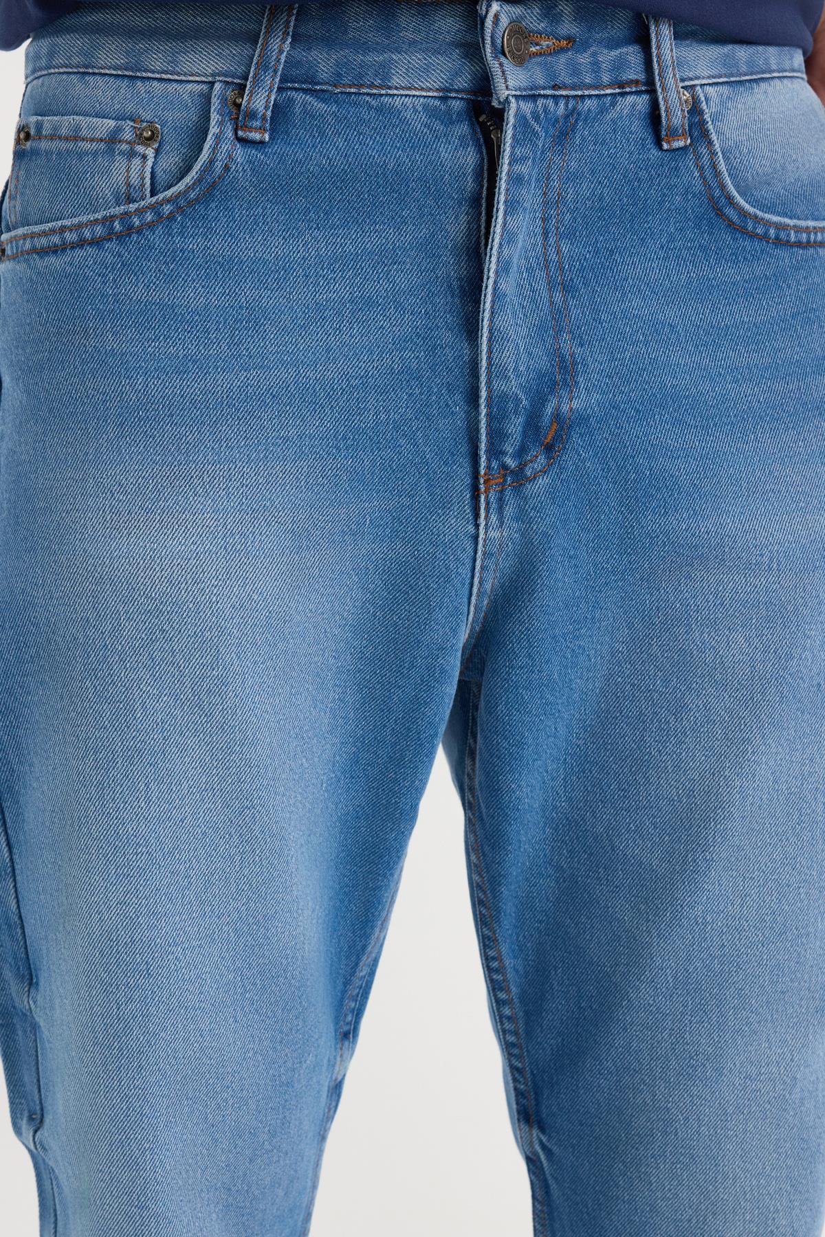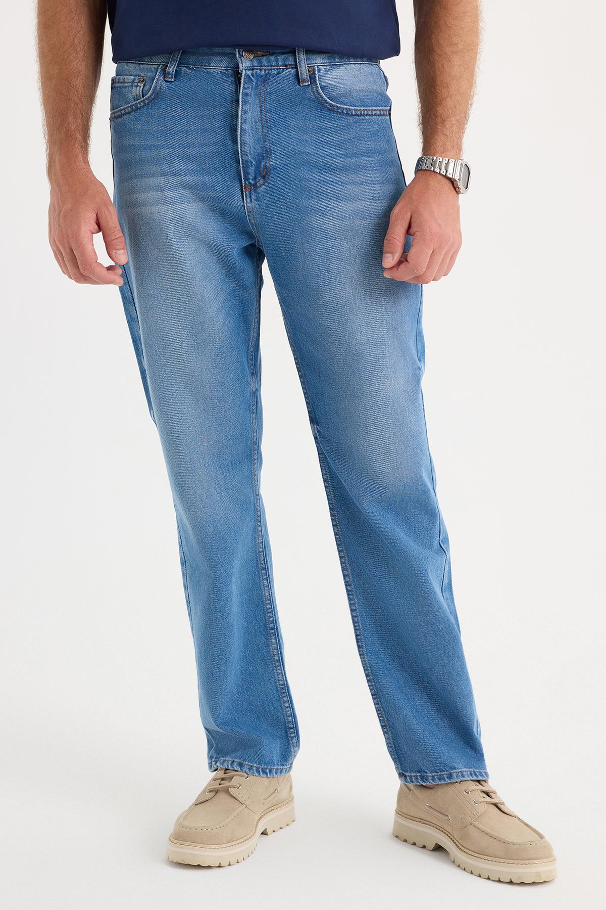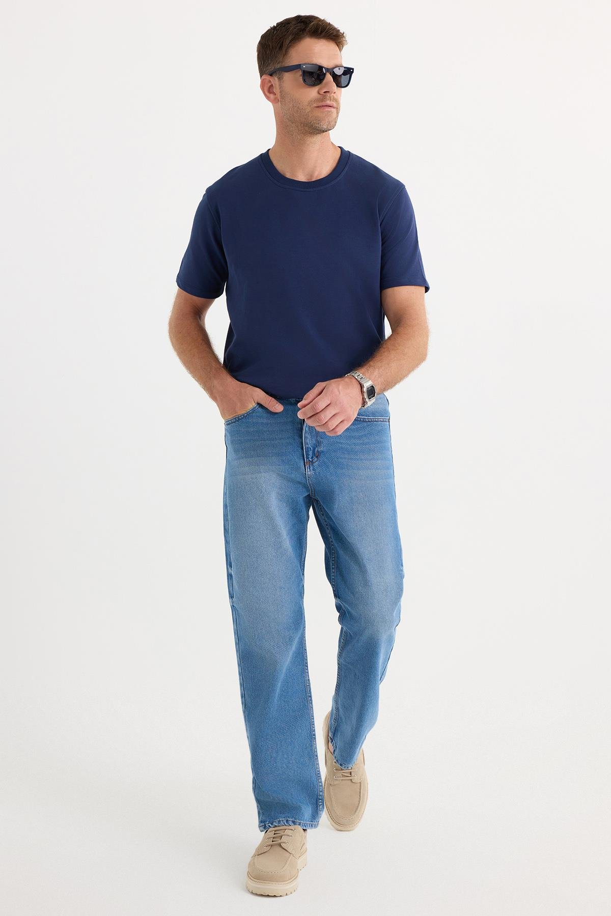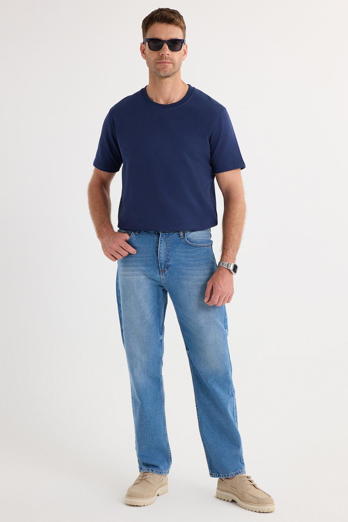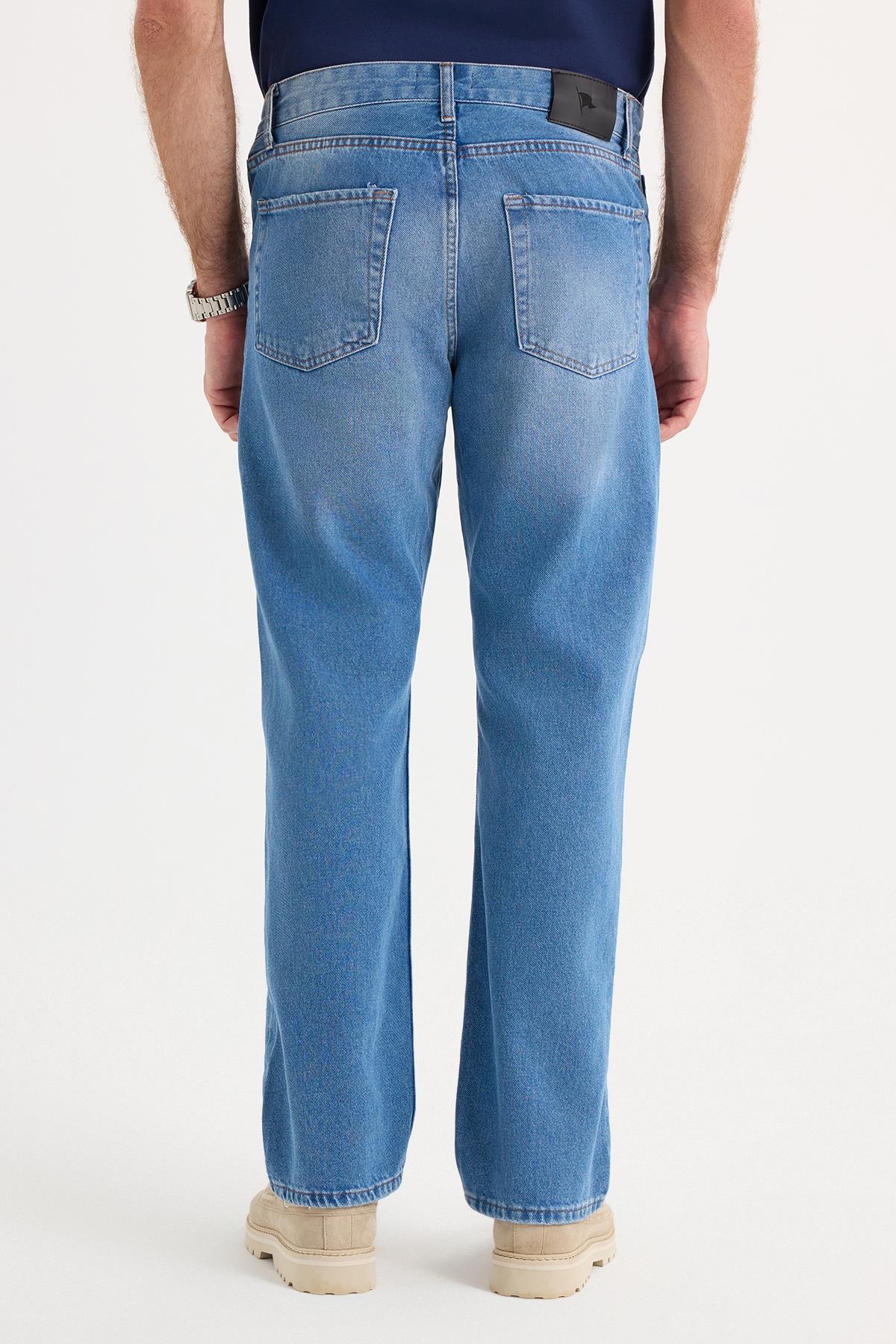 Erkek Regular Fit %100 Pamuk Yan Cepli Baggy Mavi Jean Kot Pantolon (PN250032-22)
