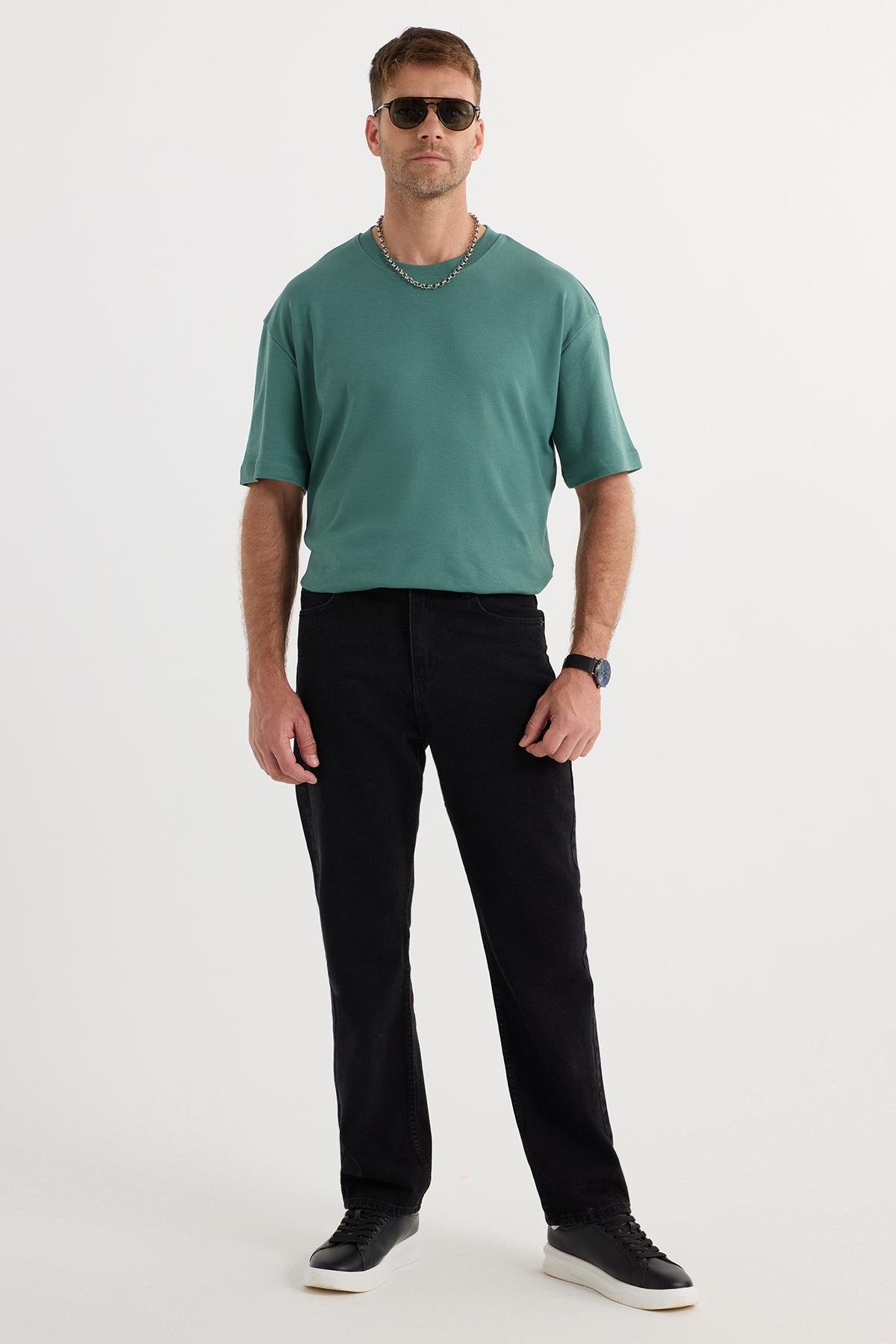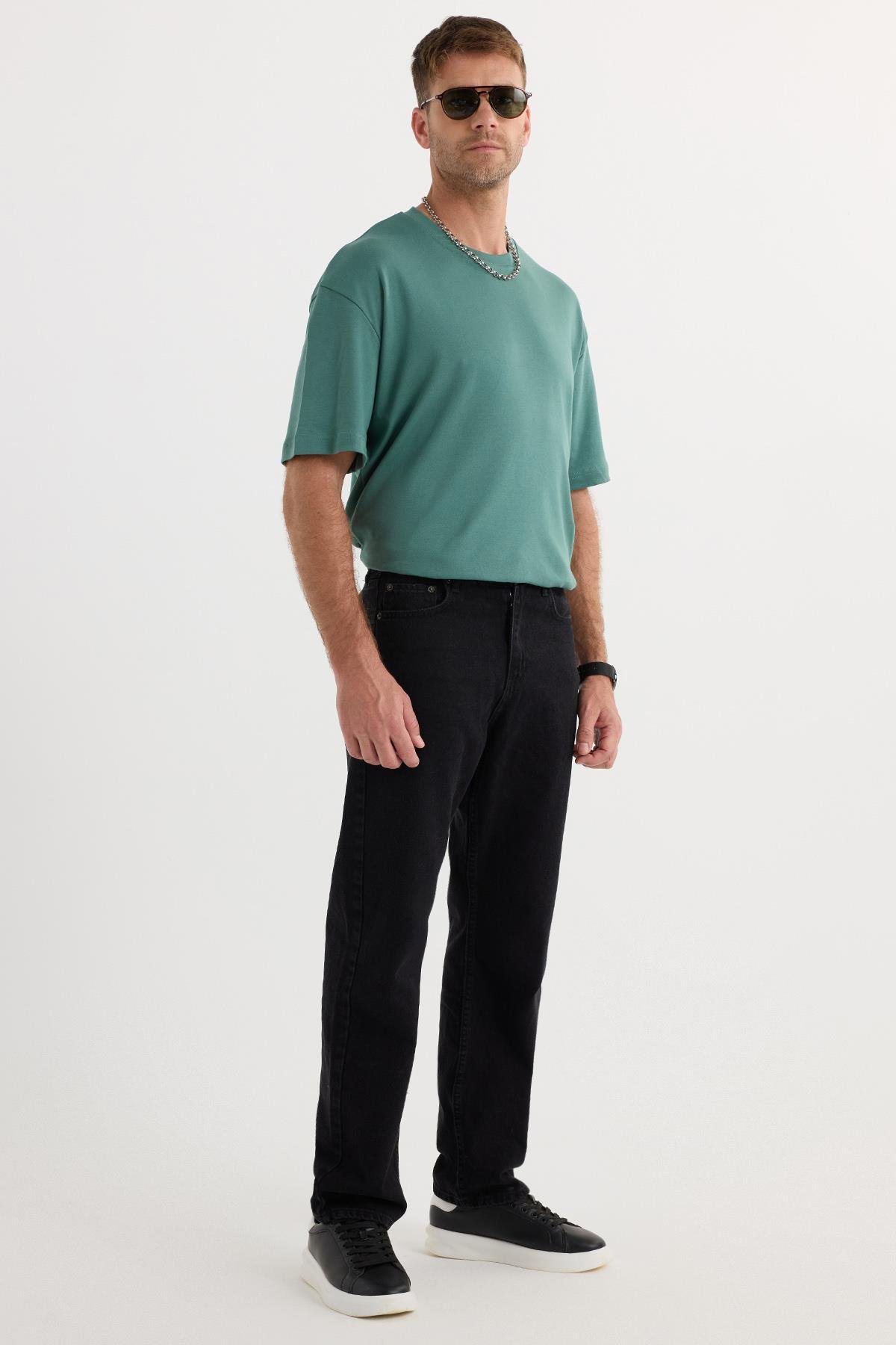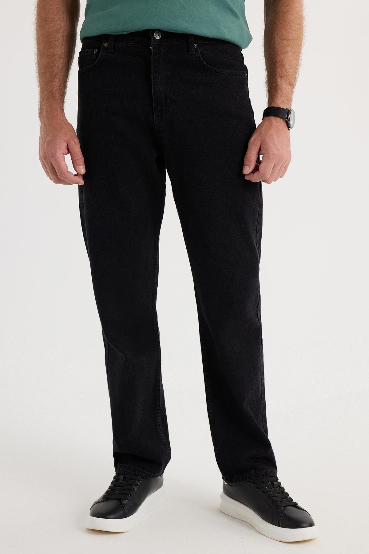 Erkek Regular Fit %100 Pamuk Yan Cepli Baggy Siyah Jean Kot Pantolon (PN250032-02)