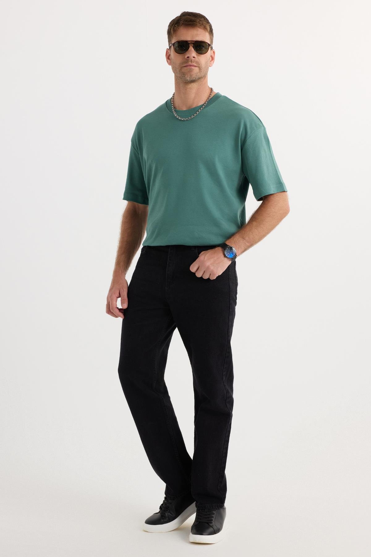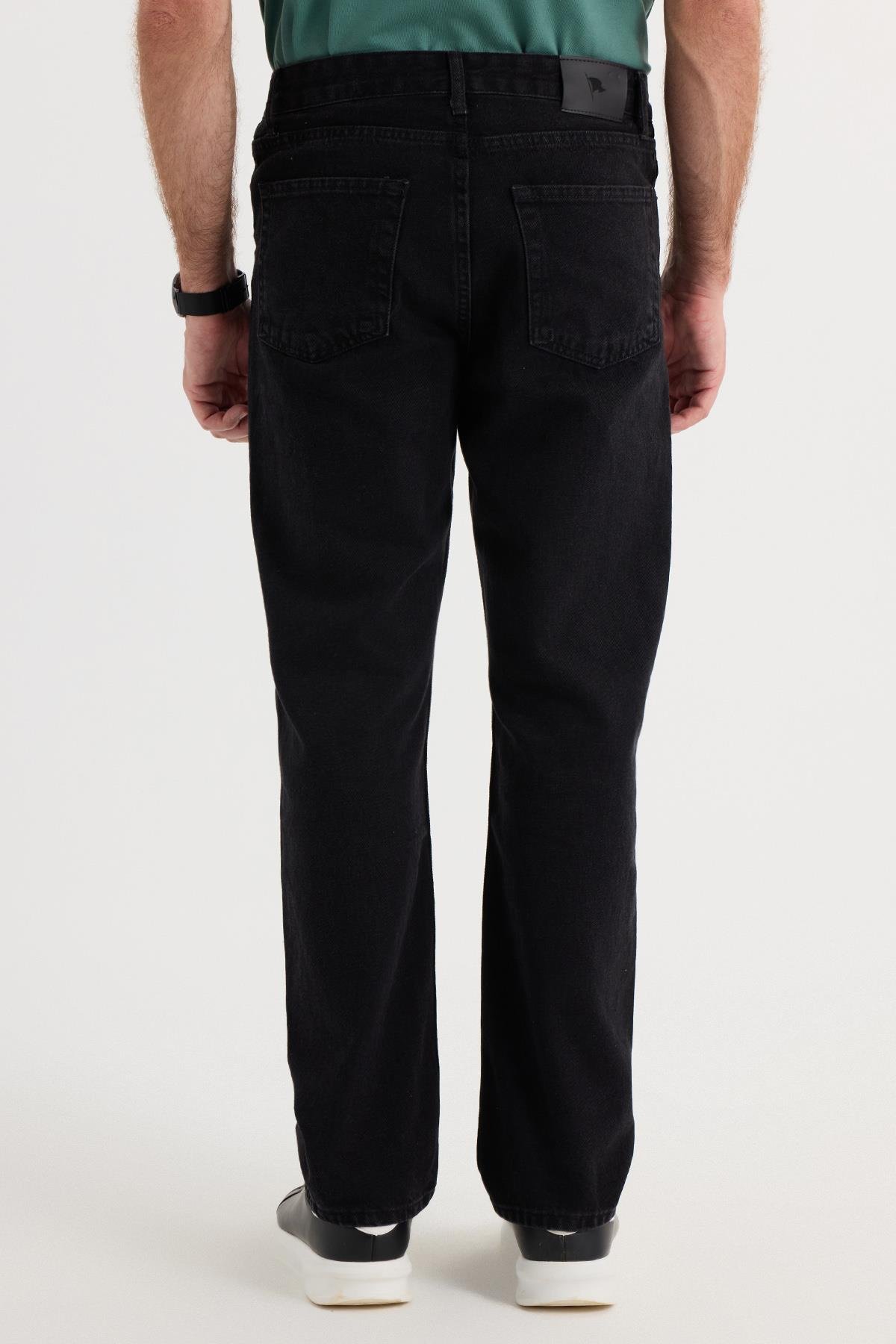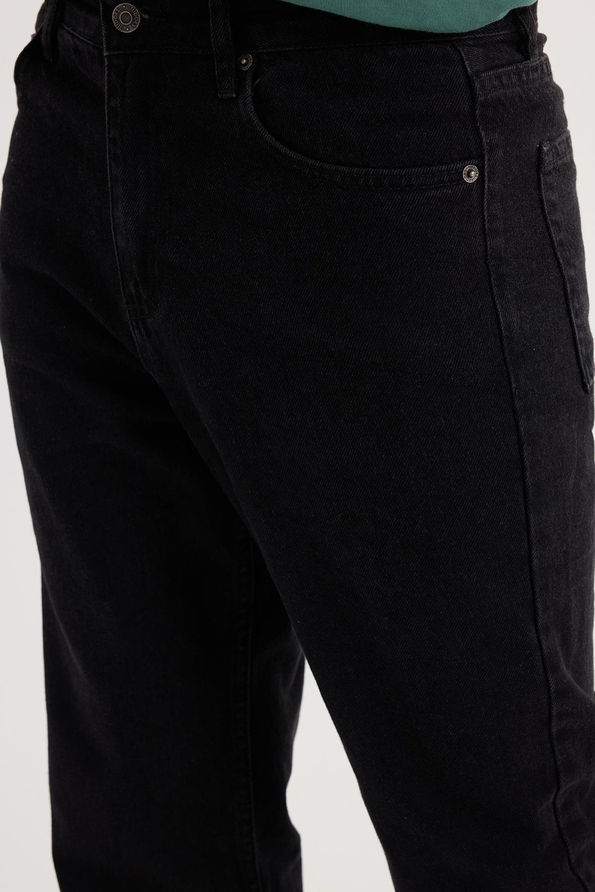 Erkek Regular Fit %100 Pamuk Yan Cepli Baggy Siyah Jean Kot Pantolon (PN250032-02)