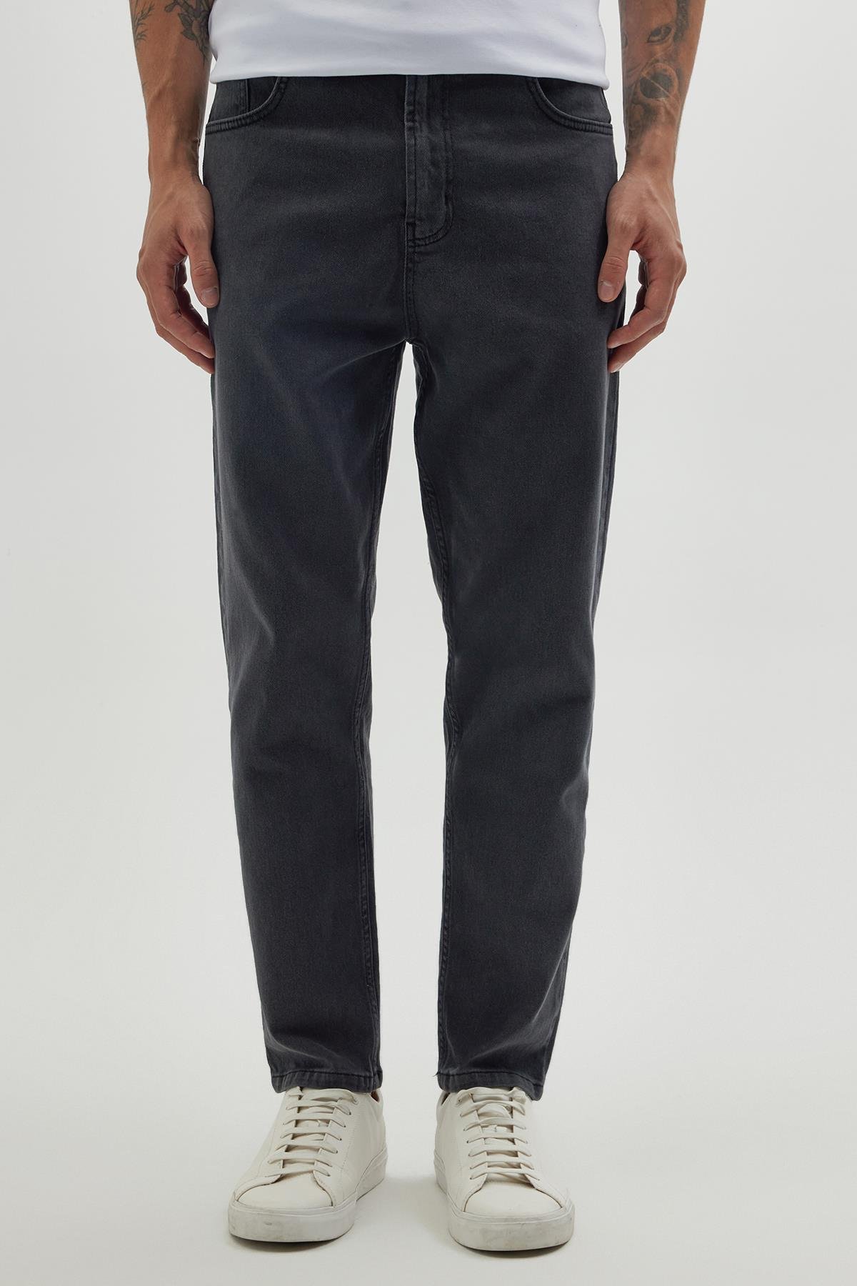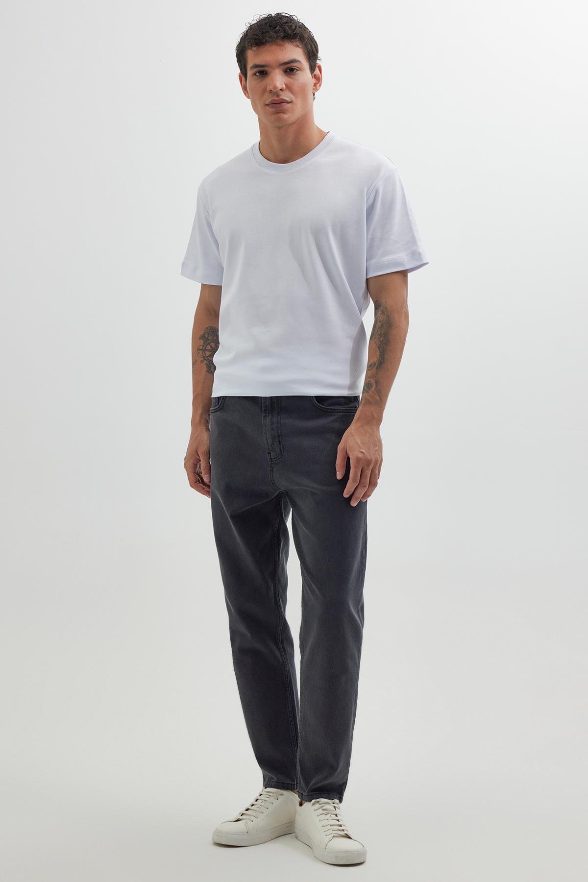 Erkek Regular Fit Bol Kesim Denim Yıkamalı Efektli Esnek Gri Jean Kot Pantolon (PN250010-SMKGR)