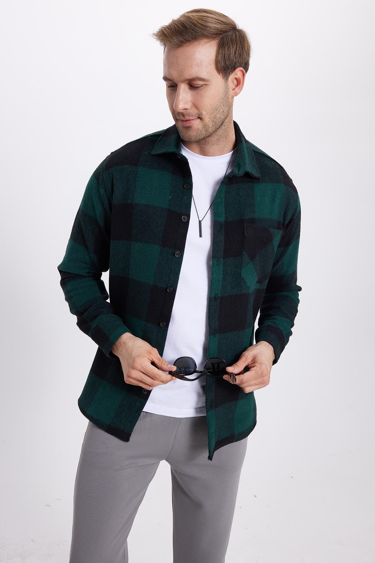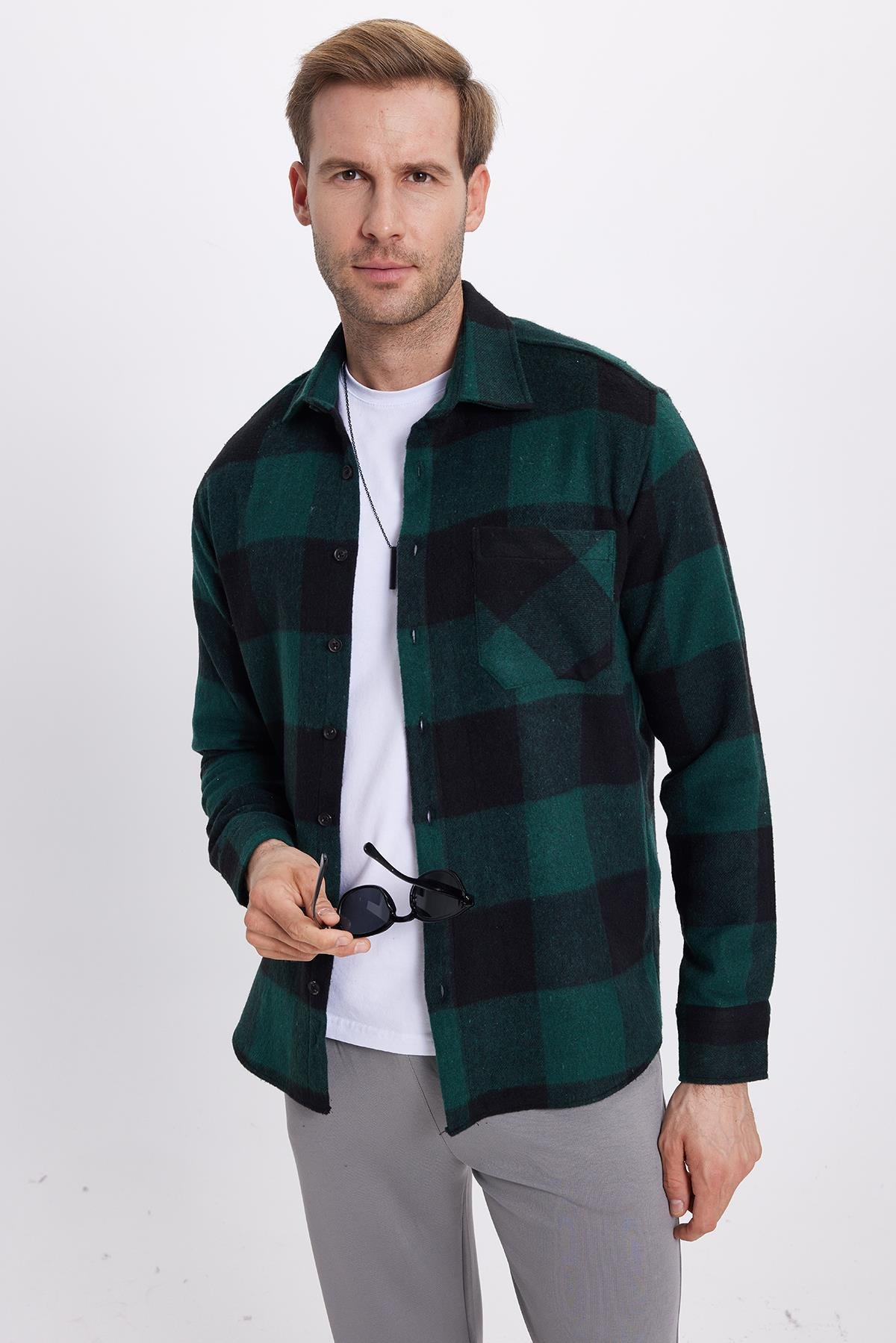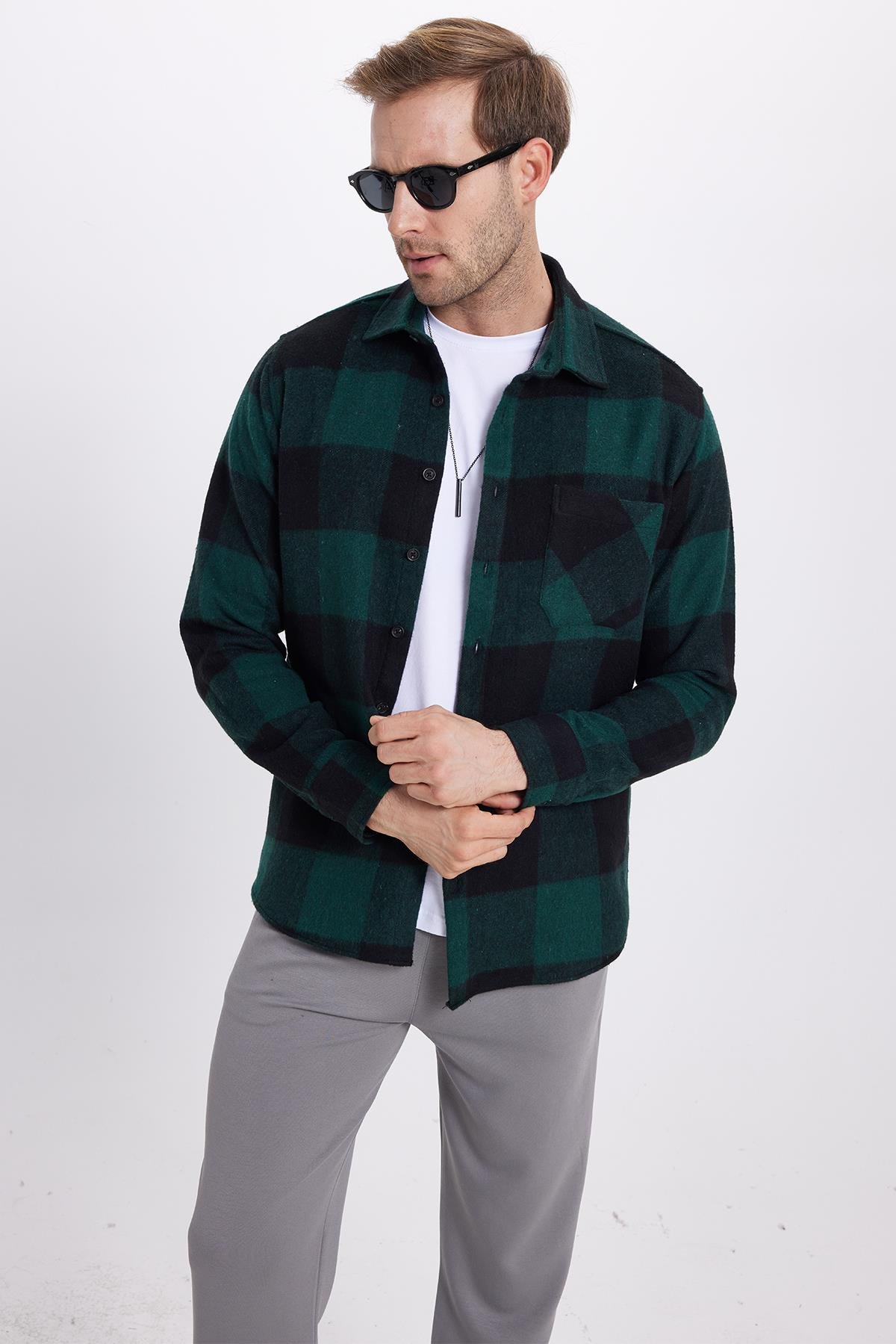 Erkek Regular Fit Klasik Fit Kareli Cepli Oduncu Gömlek (KL250017-2401)