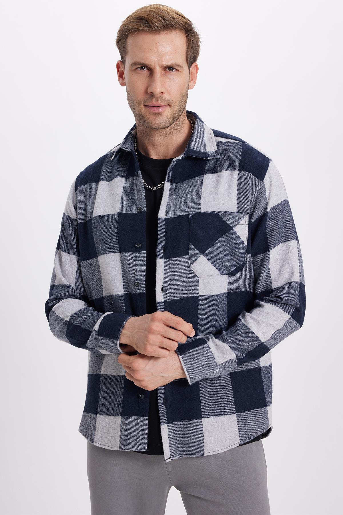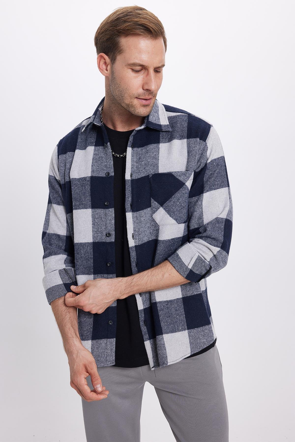 Erkek Regular Fit Klasik Fit Kareli Cepli Oduncu Gömlek (KL250017-2406)