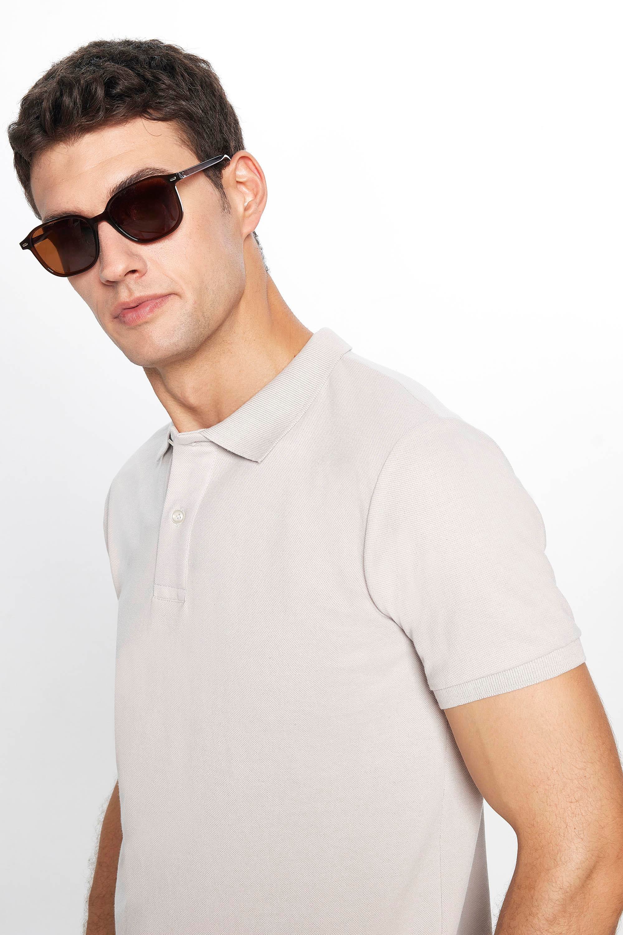 Erkek Regular Fit Klasik Kesim %100 Pamuk Düz Pike Gri Polo Yaka Tişört