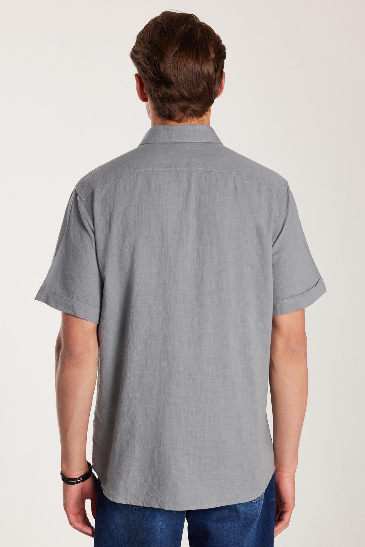 Erkek Regular Fit Klasik Kesim %100 Pamuk Keten Doku Cepli Gri Gömlek (KL230018-920)