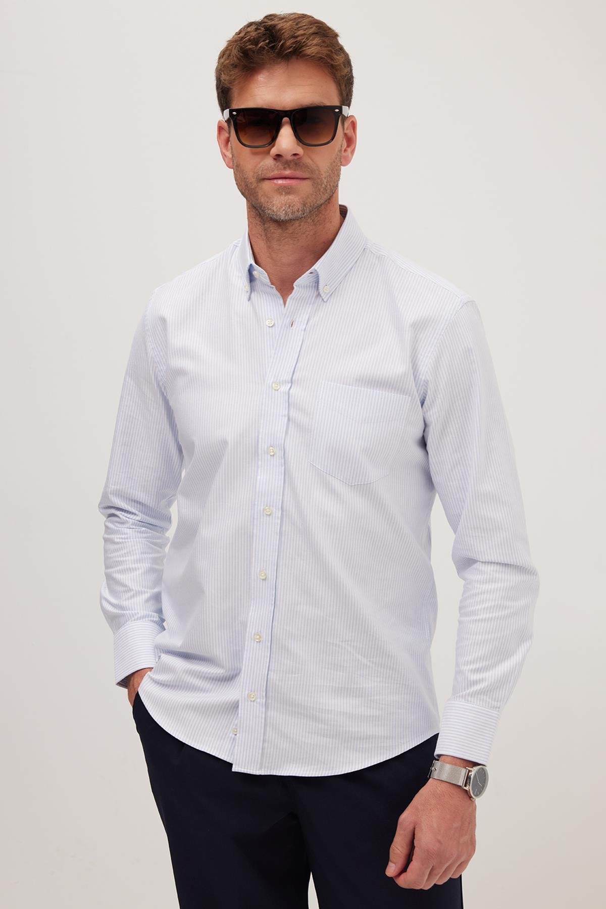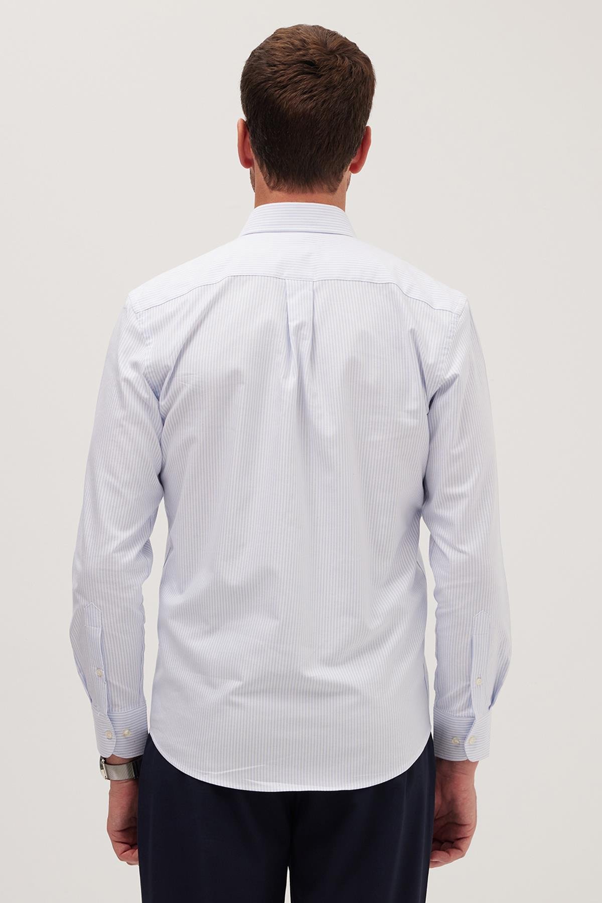 Erkek Regular Fit Klasik Kesim %100 Pamuk Mavi Çizgili Gömlek (RG250015-1001)