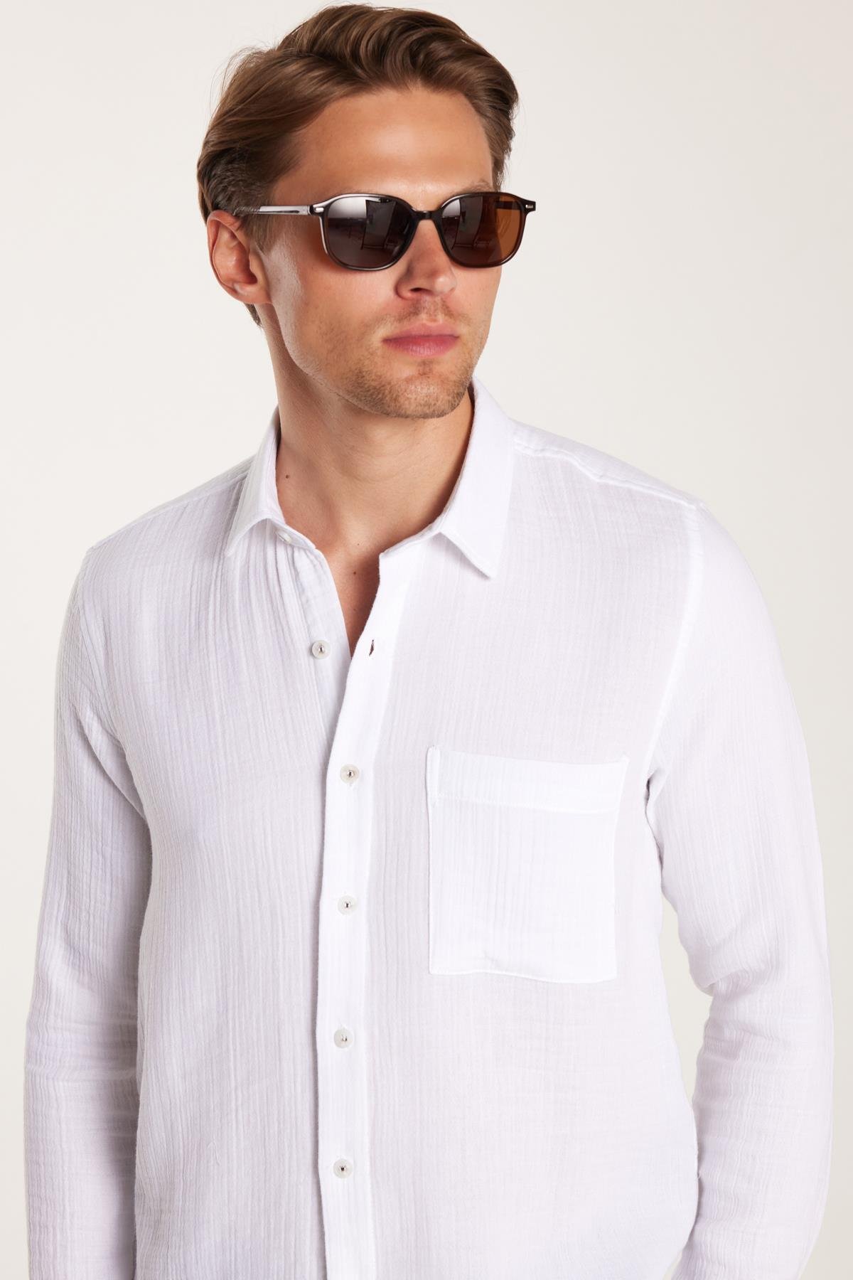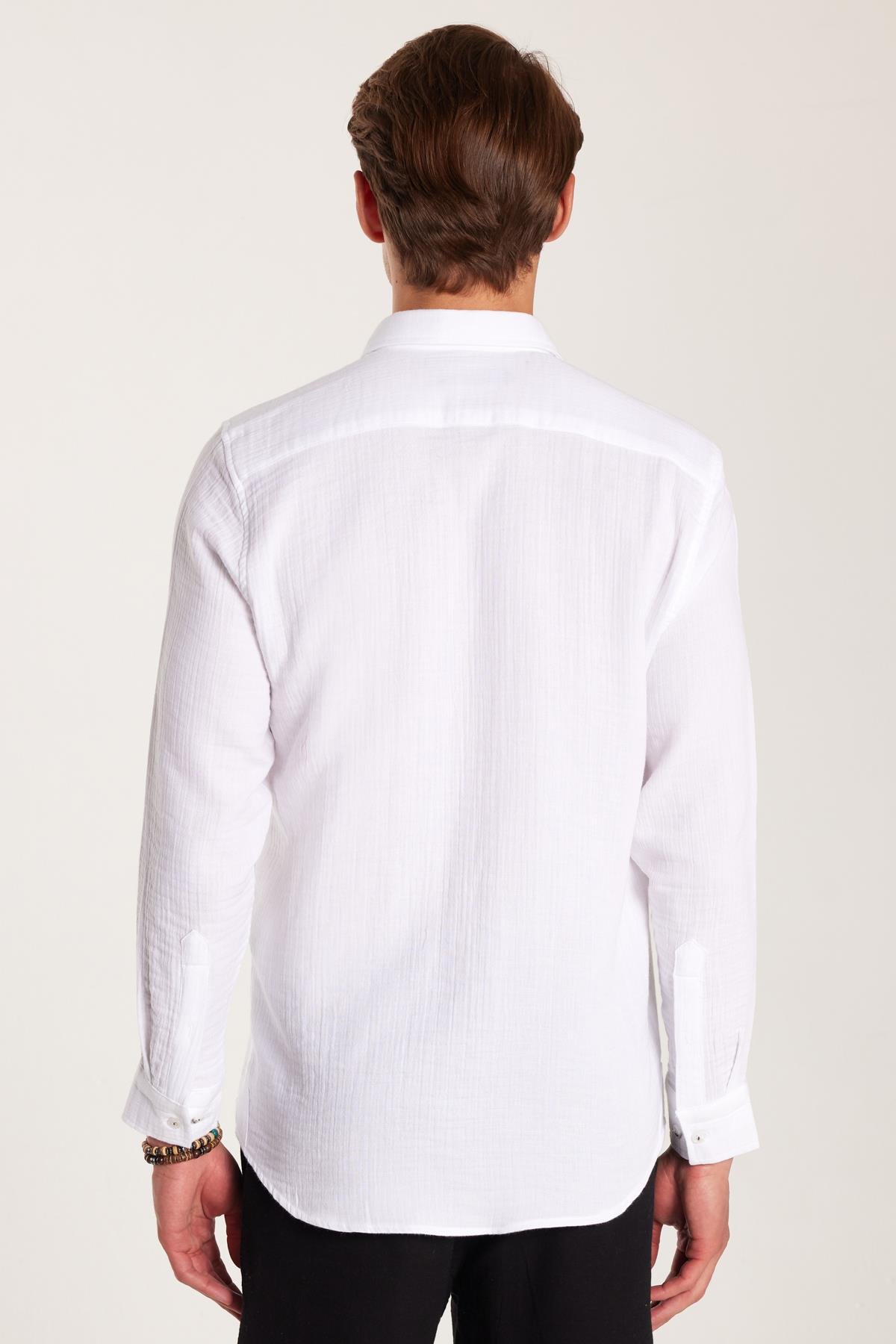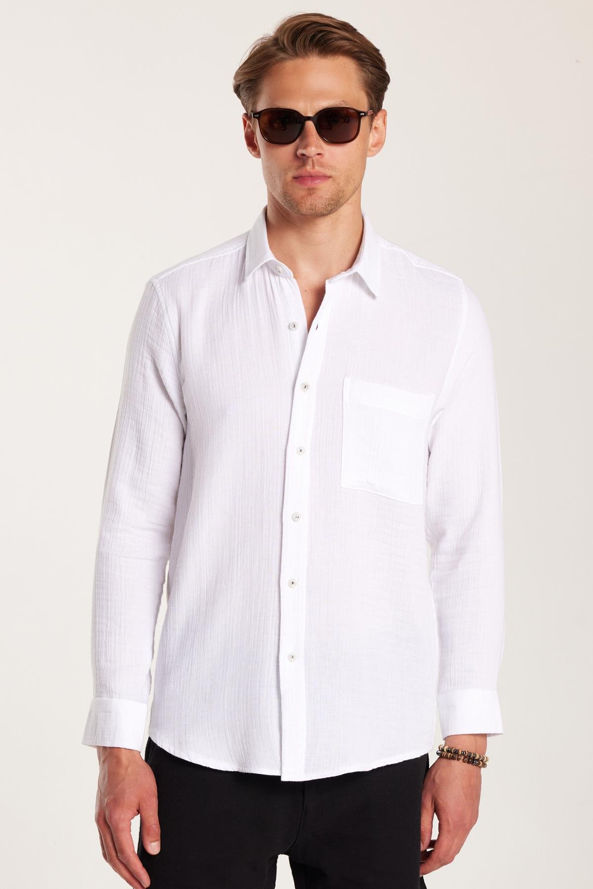 Erkek Regular Fit Klasik Kesim %100 Pamuk Müslin Kumaş Dökümlü Düz Beyaz Gömlek
