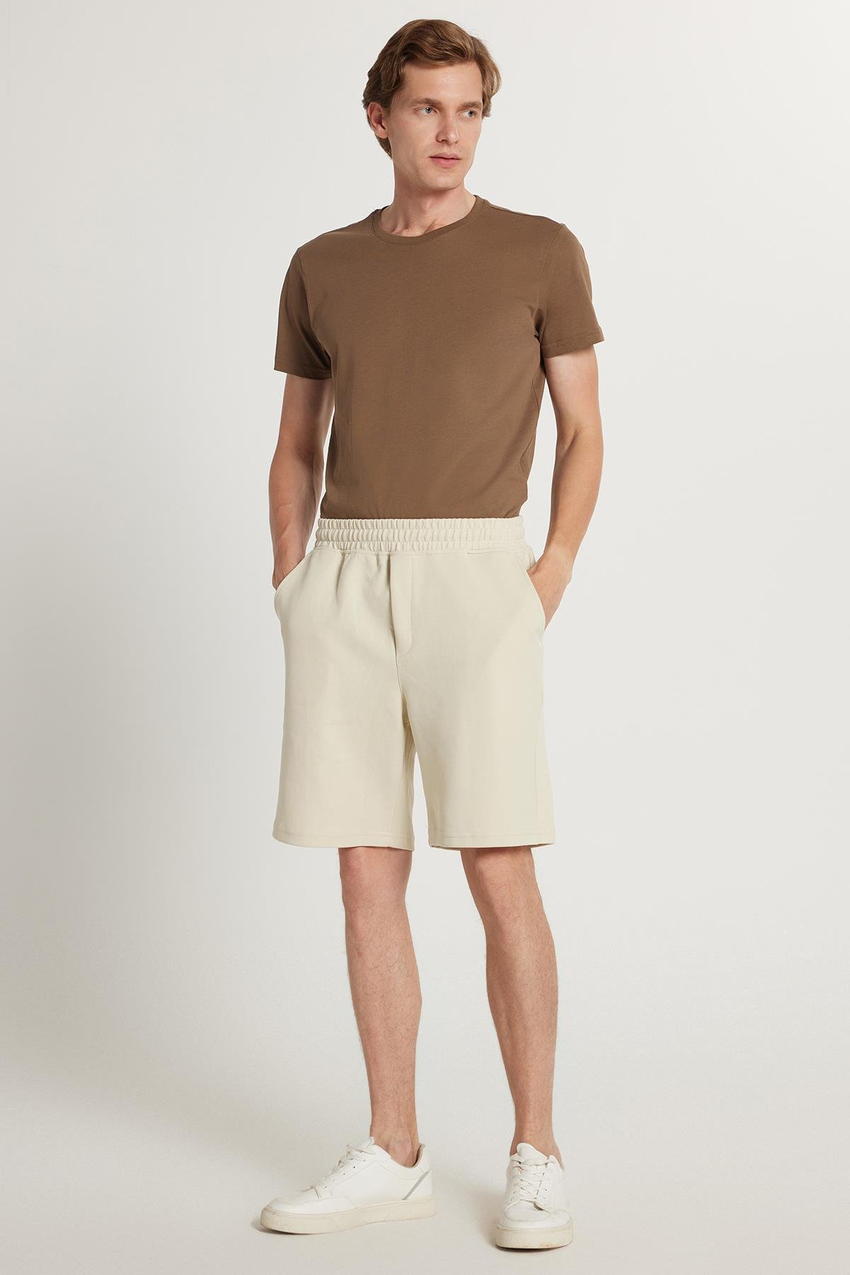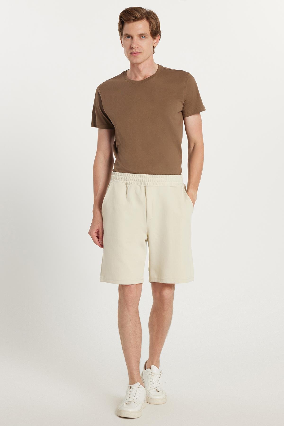 Erkek Regular Fit Klasik Kesim 3 cepli Beli Lastikli Ekru Şort (SRT25009-84)