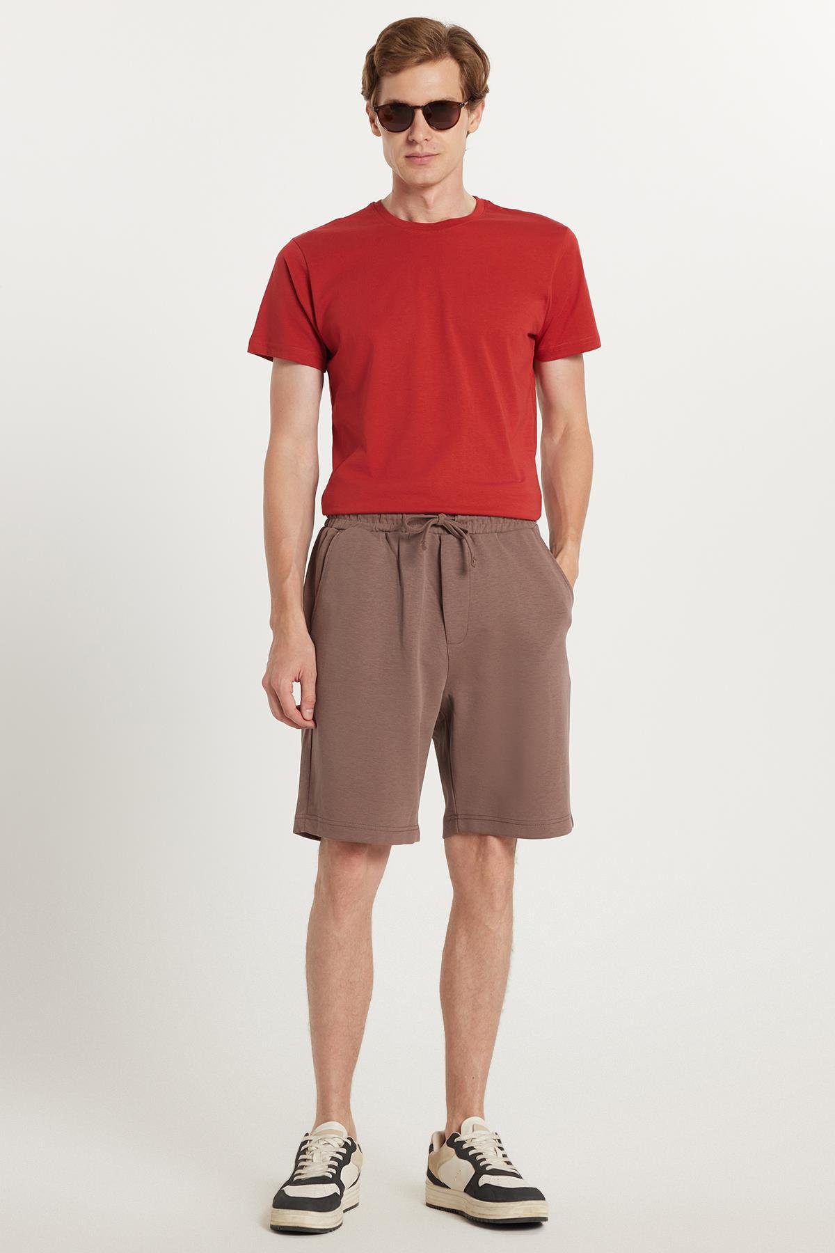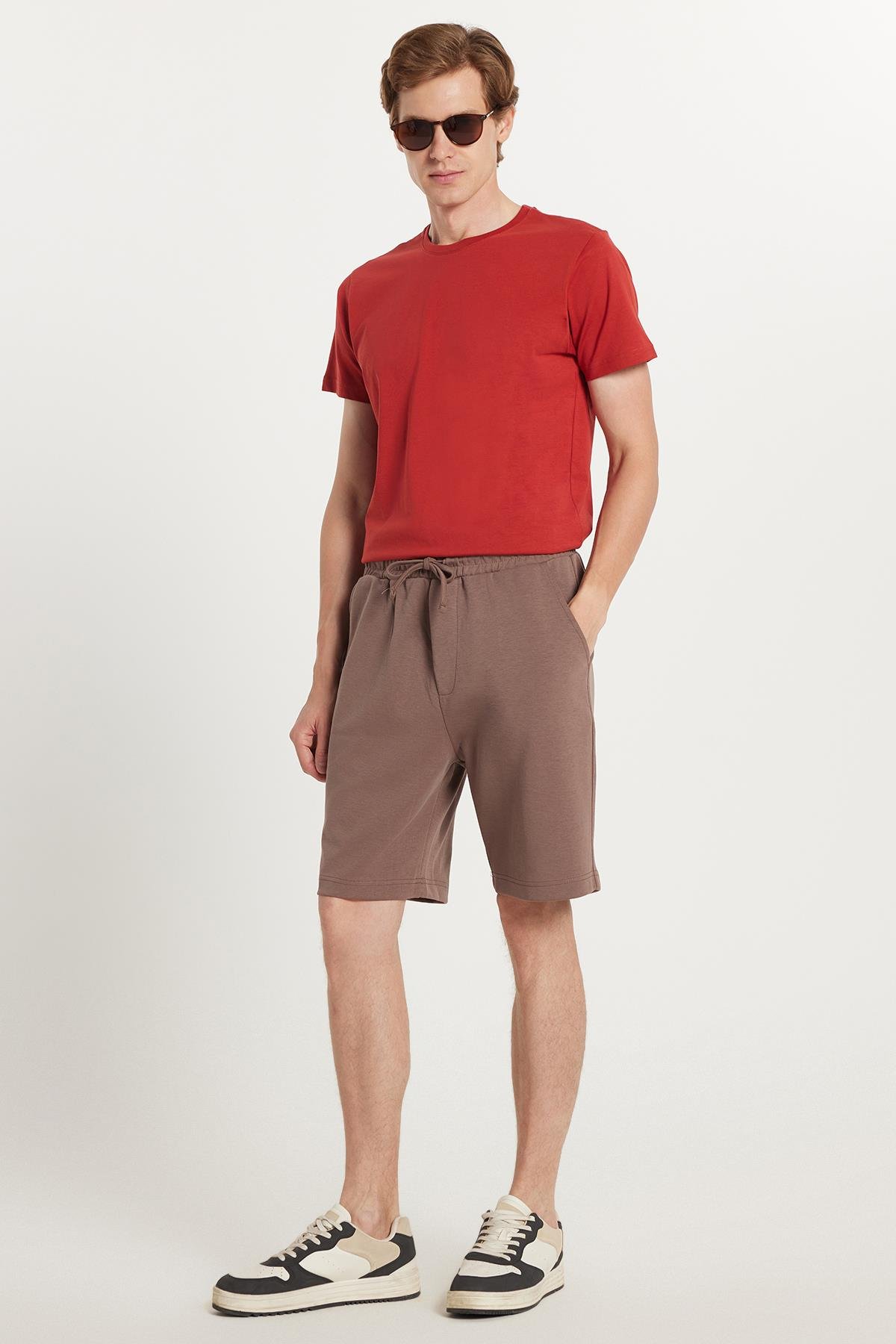Erkek Regular Fit Klasik Kesim 3 cepli Beli Lastikli Kahverengi Şort (SRT25009-07)