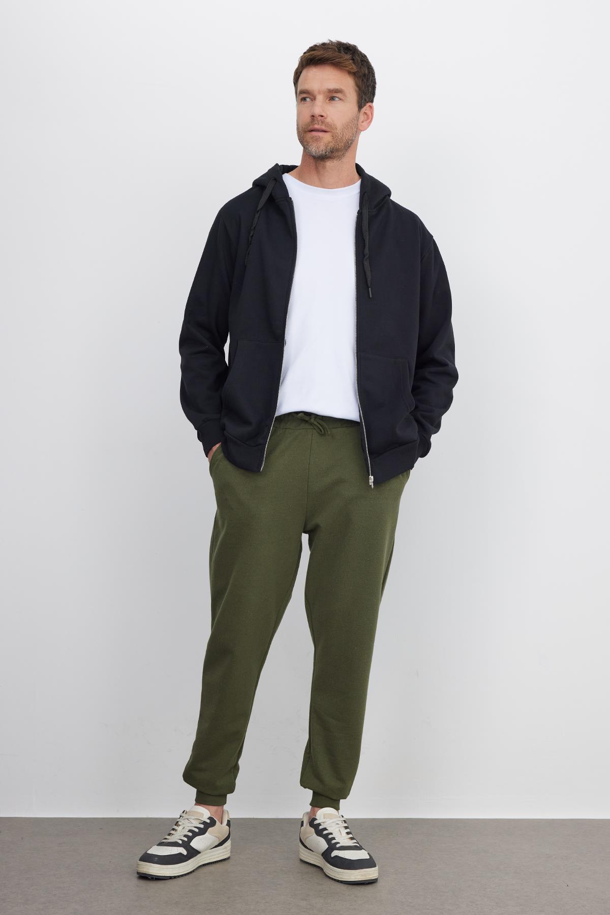 Erkek Regular Fit Klasik Kesim Beli Bağcıklı Jogger Cepli Lastikli Paça Haki Eşofman Altı (SP250004-48)