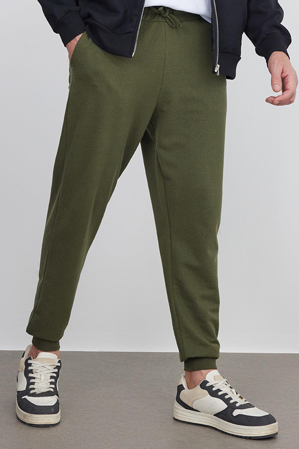 Erkek Regular Fit Klasik Kesim Beli Bağcıklı Jogger Cepli Lastikli Paça Haki Eşofman Altı