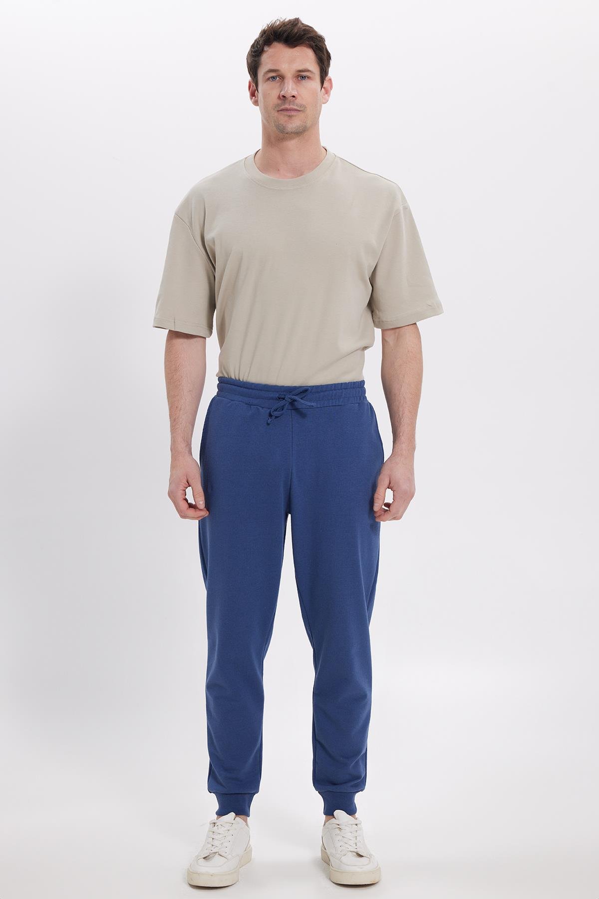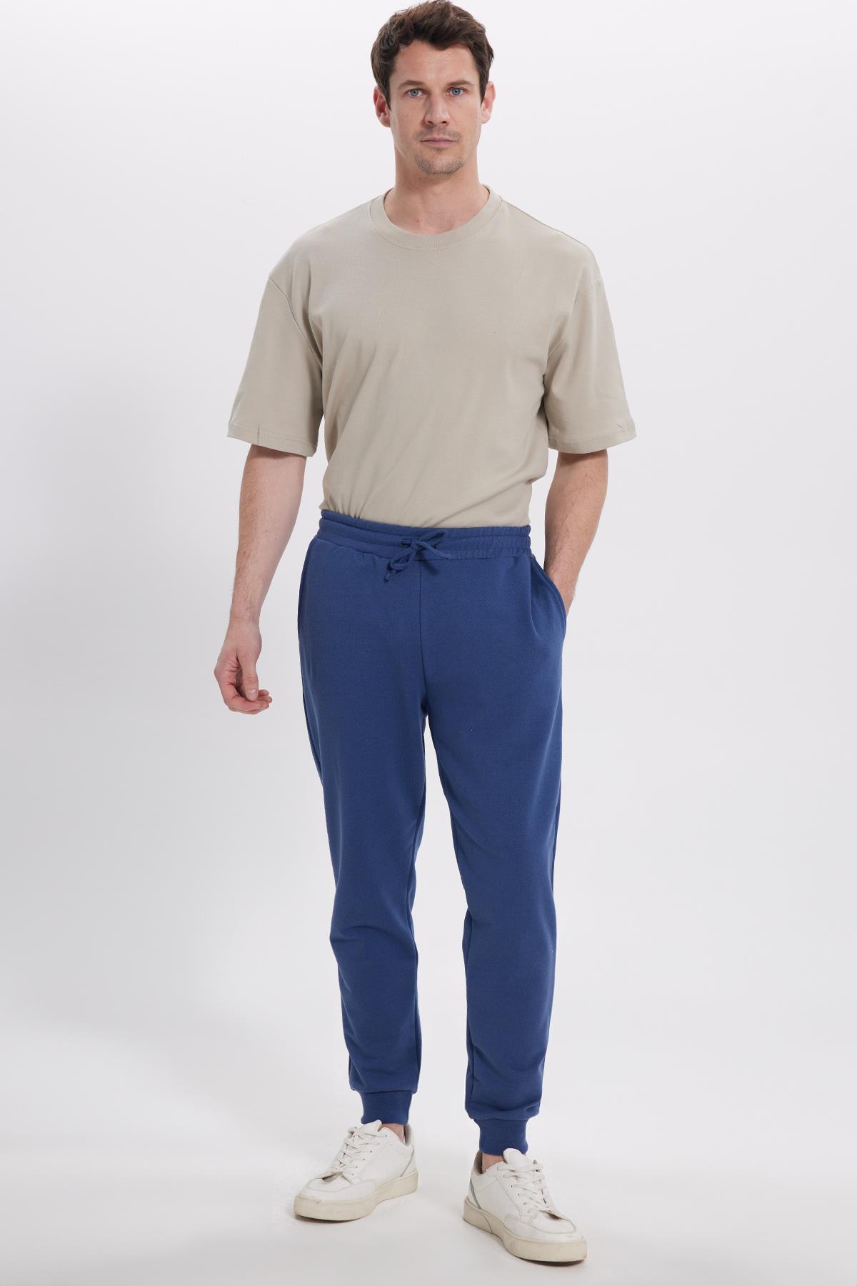Erkek Regular Fit Klasik Kesim Beli Bağcıklı Jogger Cepli Lastikli Paça İndigo Eşofman Altı (SP250004-000)