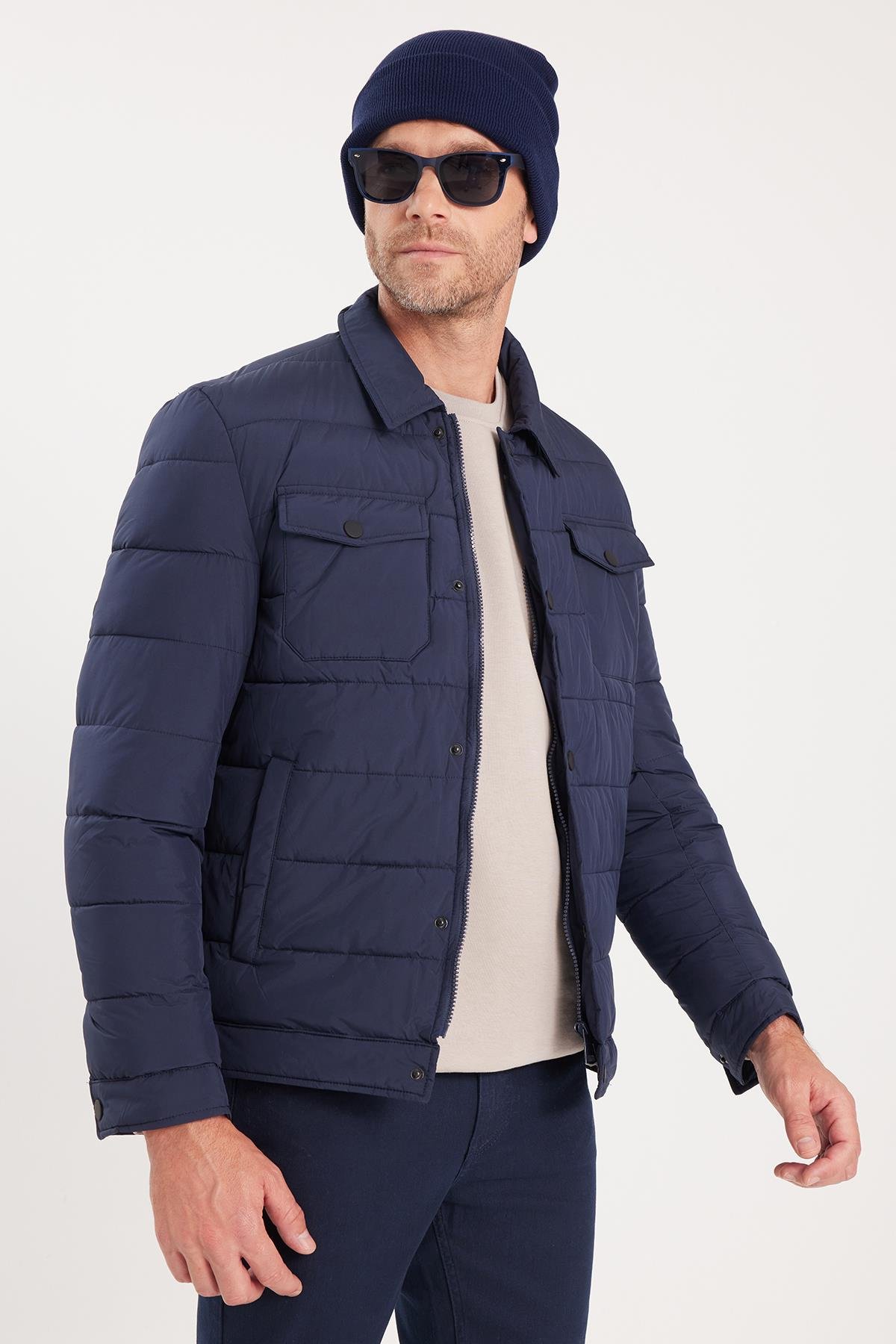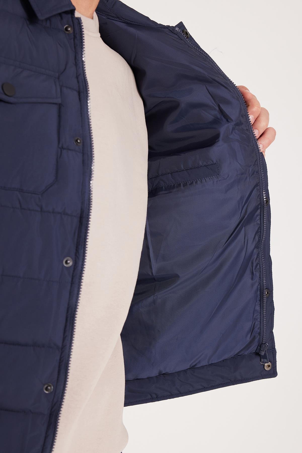 Erkek Regular Fit Klasik Kesim Çift Cepli Çıtçıt Kapamalı Sıcak Tutan Koyu Mavi Mont (MT250013-DEB)
