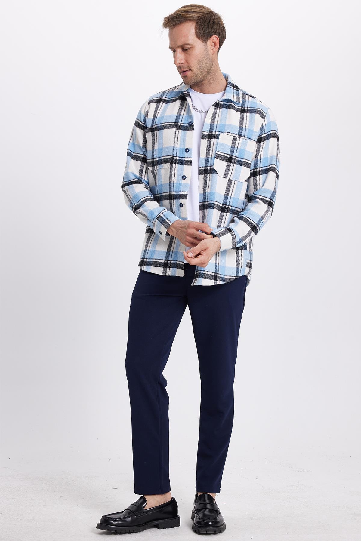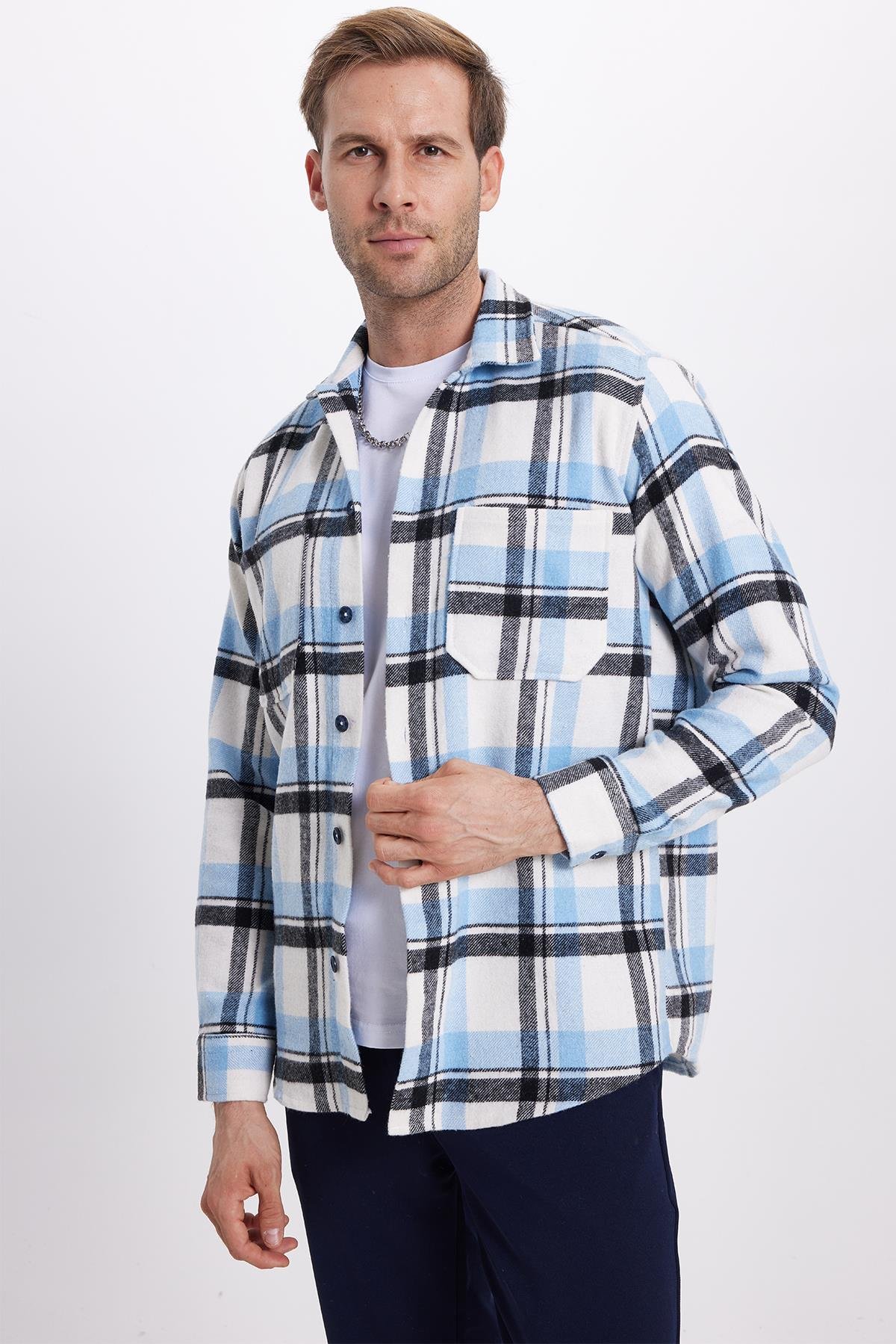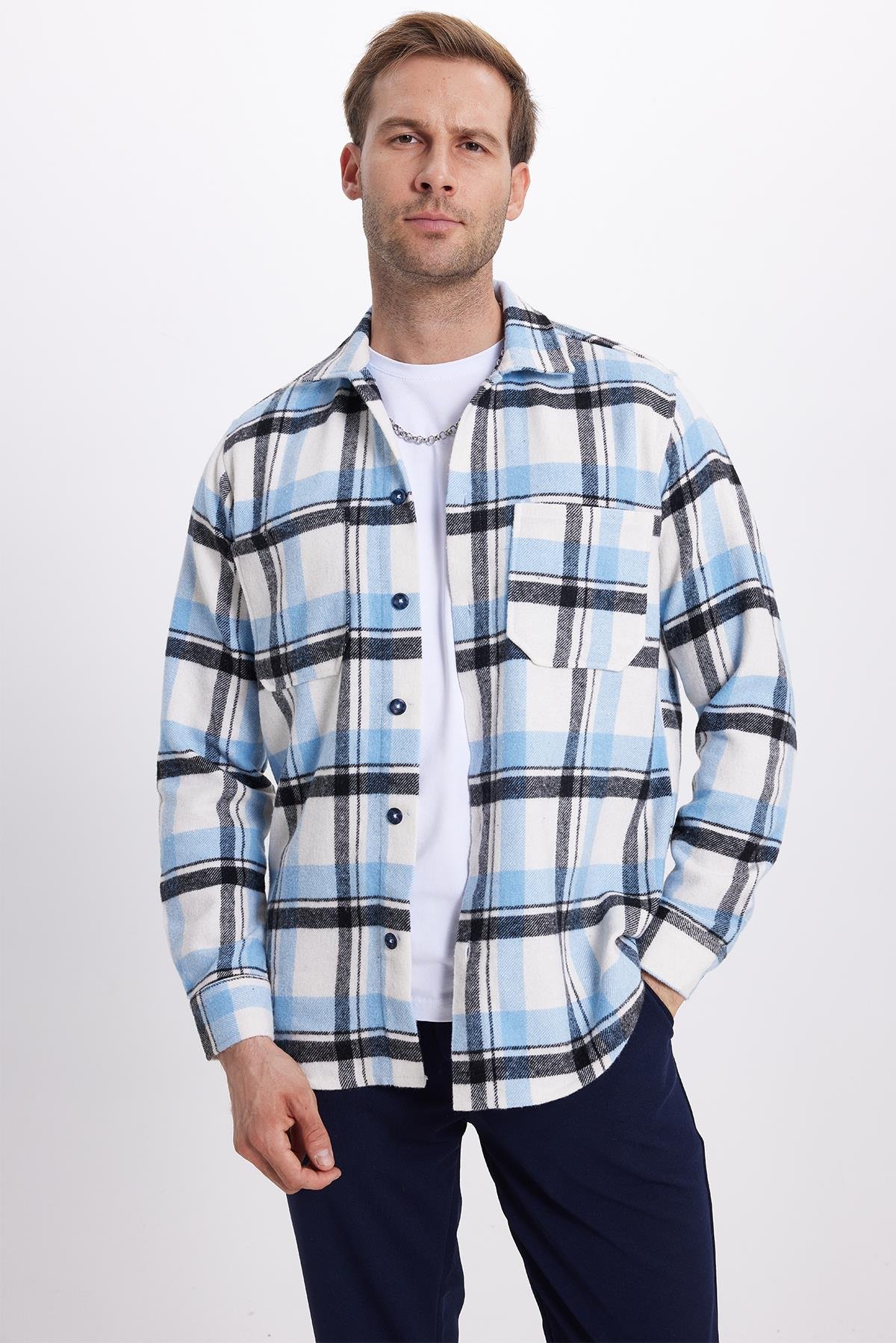 Erkek Regular Fit Klasik Kesim Çift Cepli Kışlık Oduncu Kareli Gömlek (KL250015-2370)