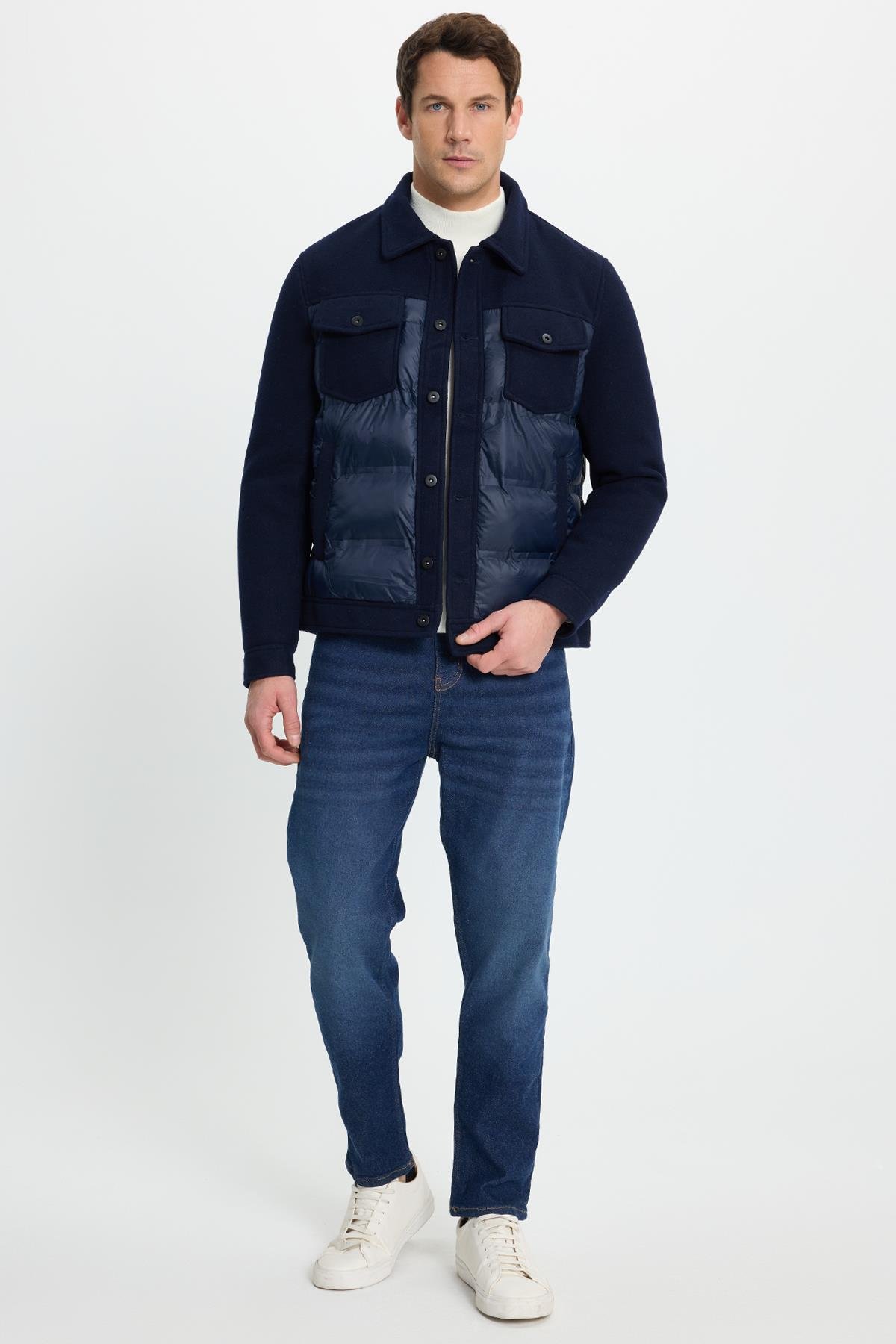 Erkek Regular Fit Klasik Kesim Çift Cepli Klasik Yaka Sıcak Tutan Lacivert Kaşe Mont