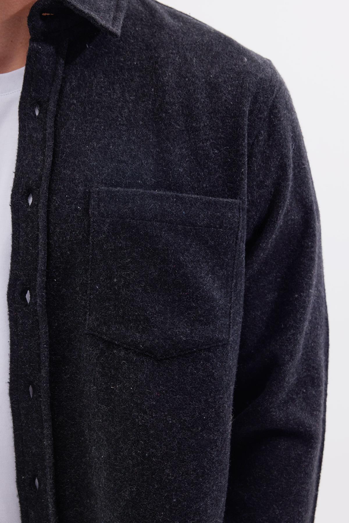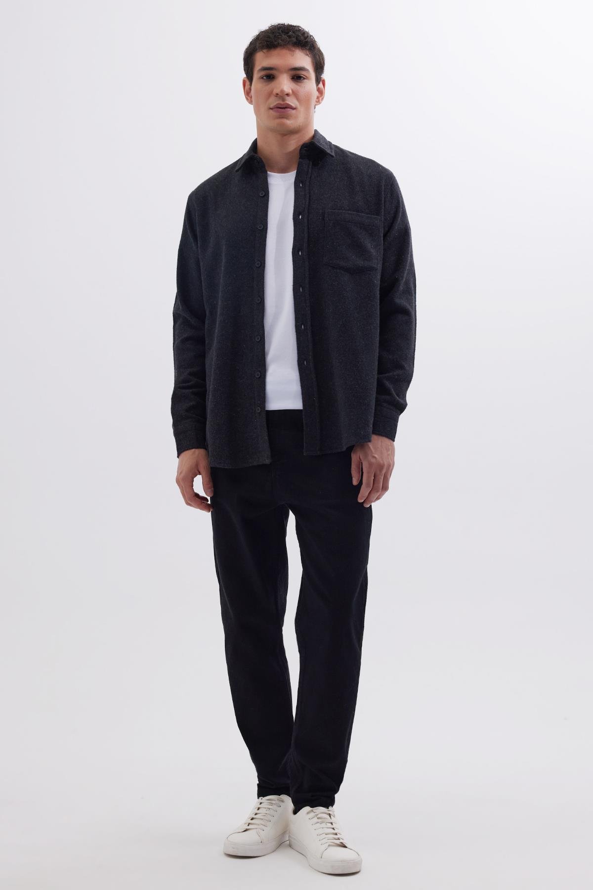 Erkek Regular Fit Klasik Kesim Düz Cepli Koyu Antrasit Oduncu Gömlek