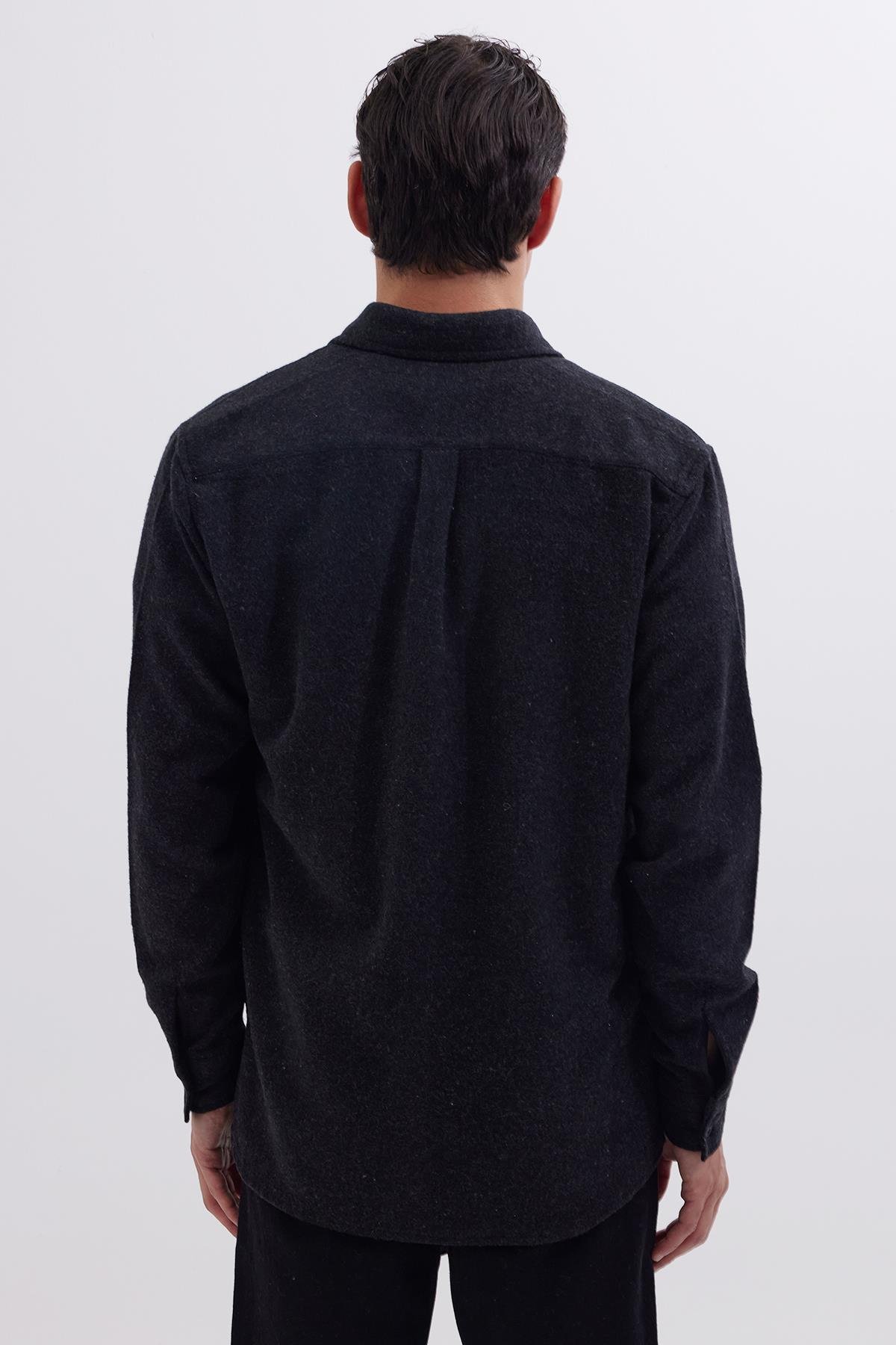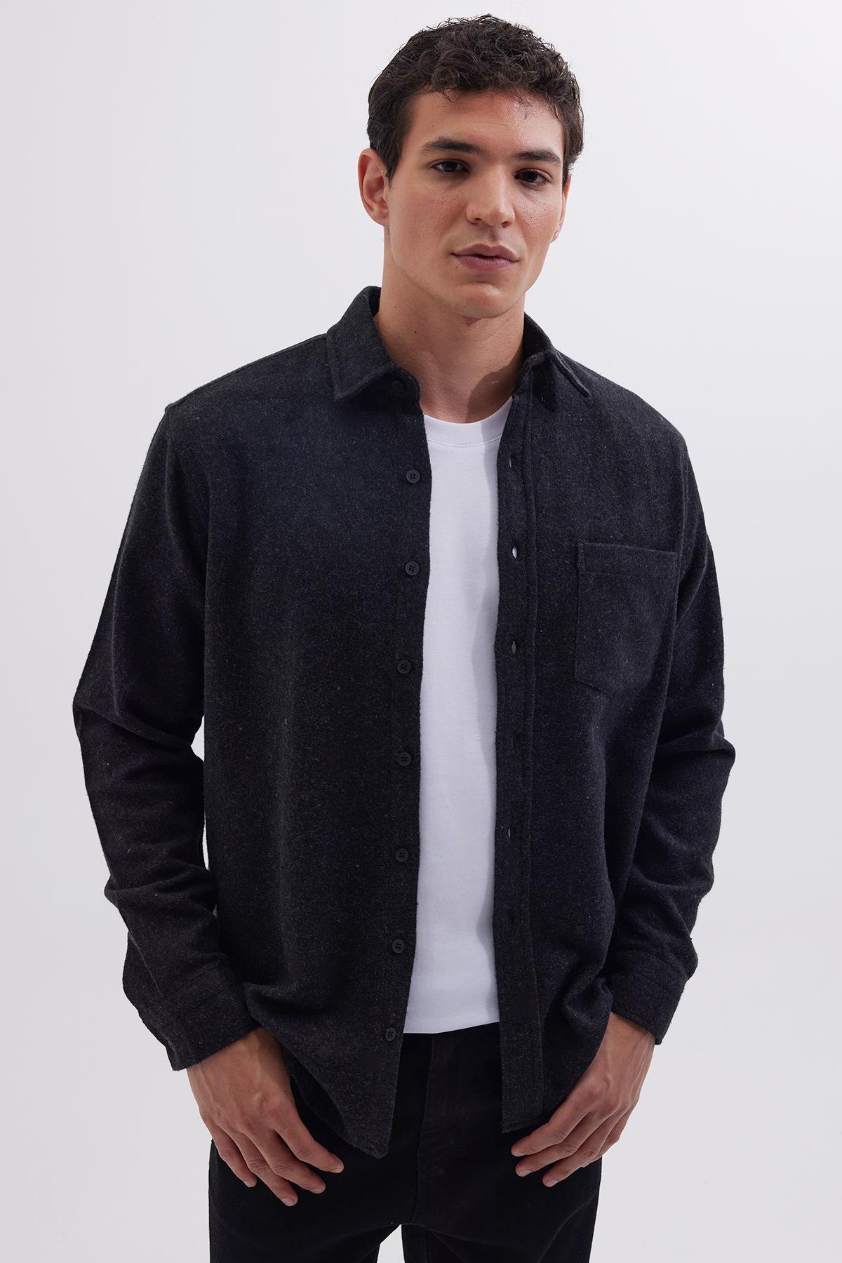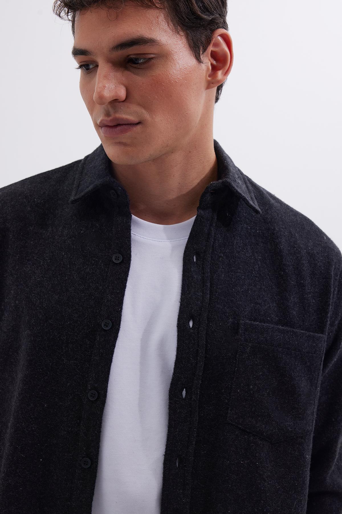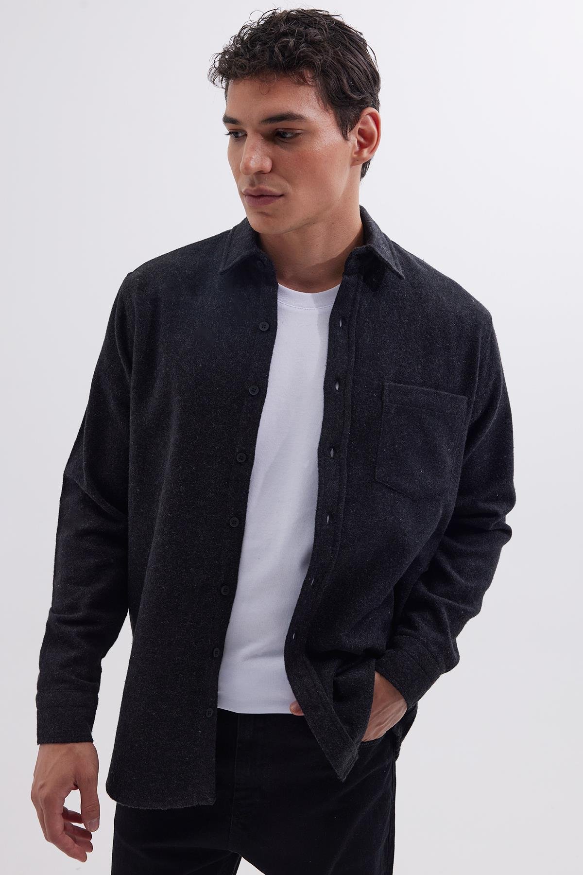 Erkek Regular Fit Klasik Kesim Düz Cepli Koyu Antrasit Oduncu Gömlek (KL250019-4044)