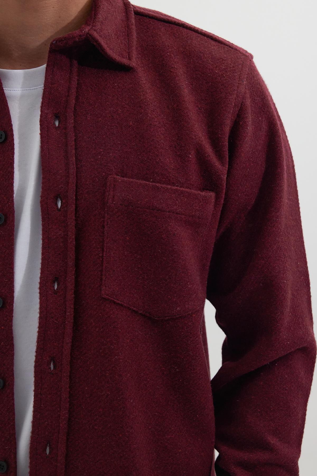 Erkek Regular Fit Klasik Kesim Düz Cepli Koyu Bordo Oduncu Gömlek
